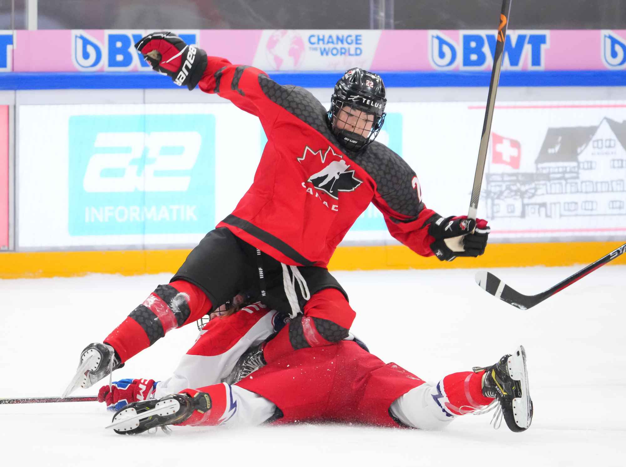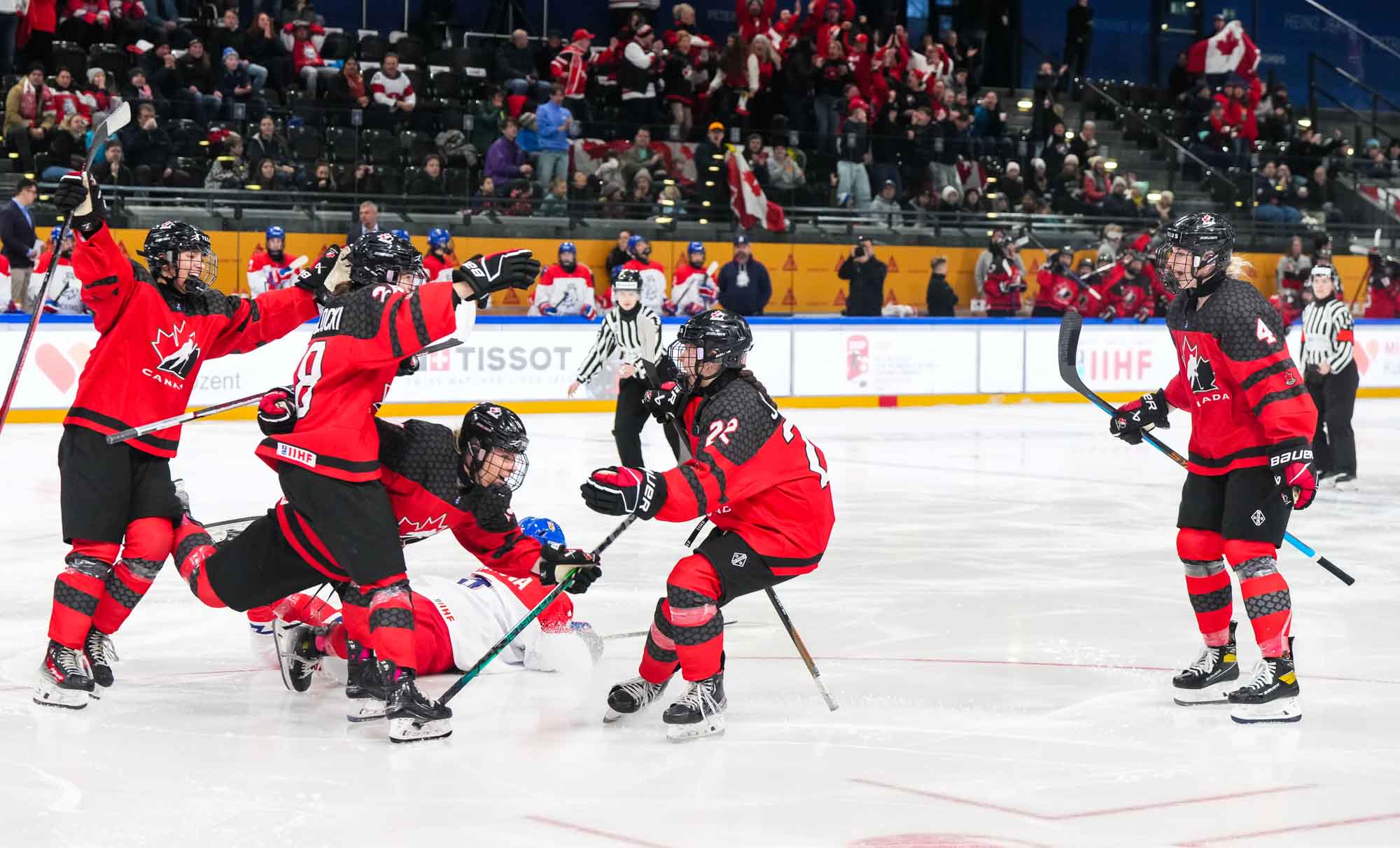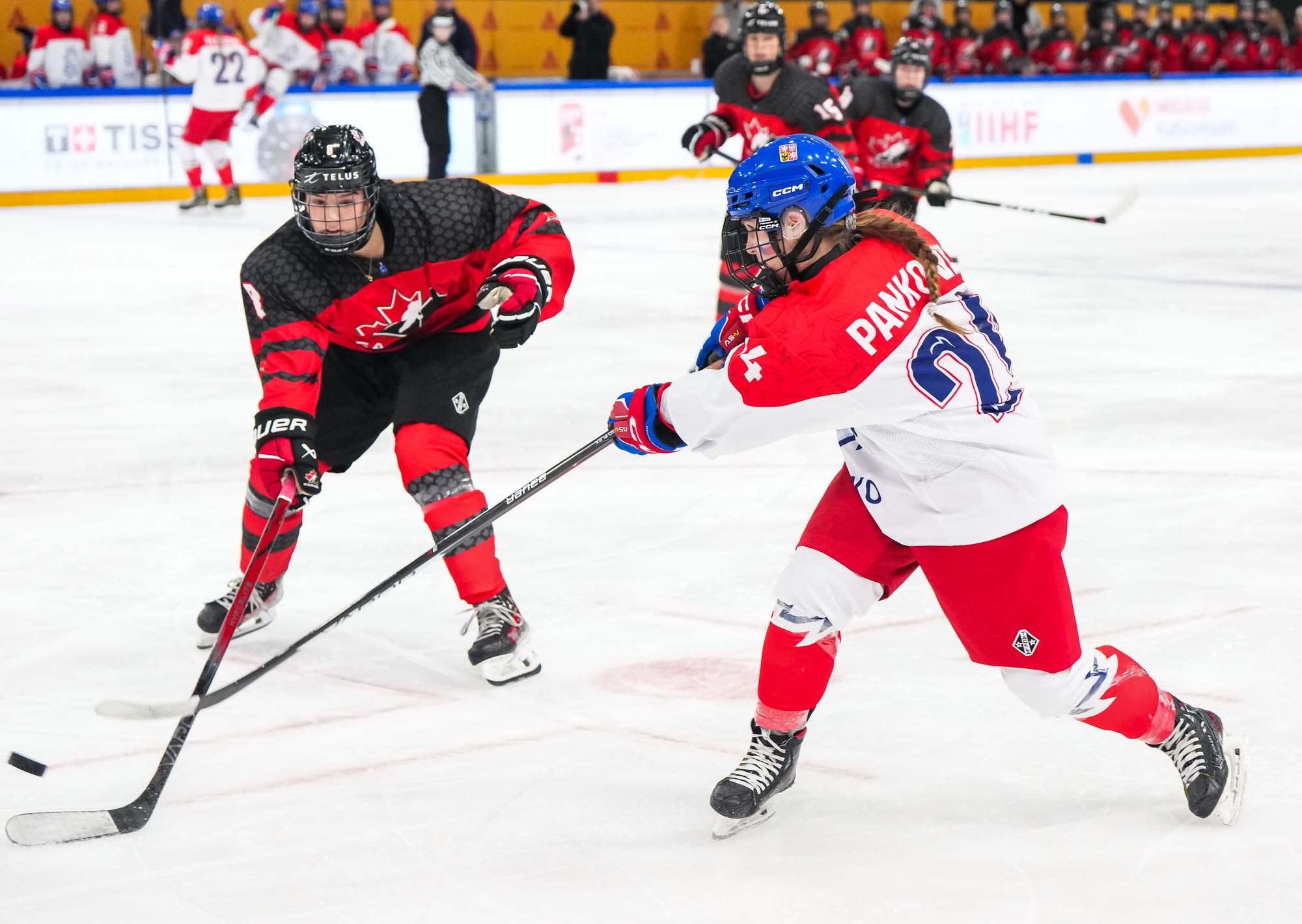 In the biggest upset in tournament history, the Czechs dethroned Canada with an historic 4-2 semi-final win. Klaudie Slavickova scored the go-ahead goal in the third period, lifting her team into the 2024 IIHF Ice Hockey U18 Women's World Championship gold medal game.