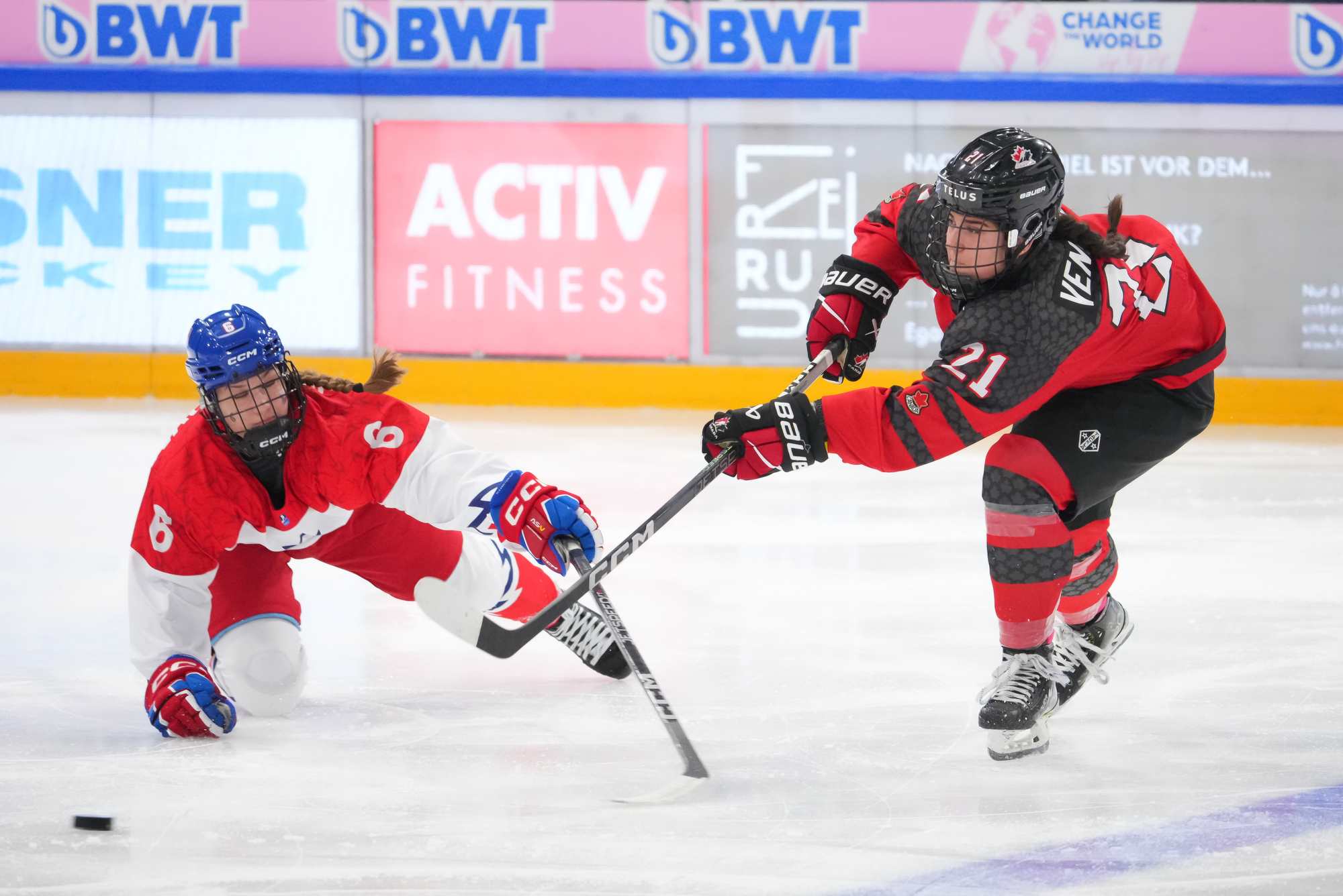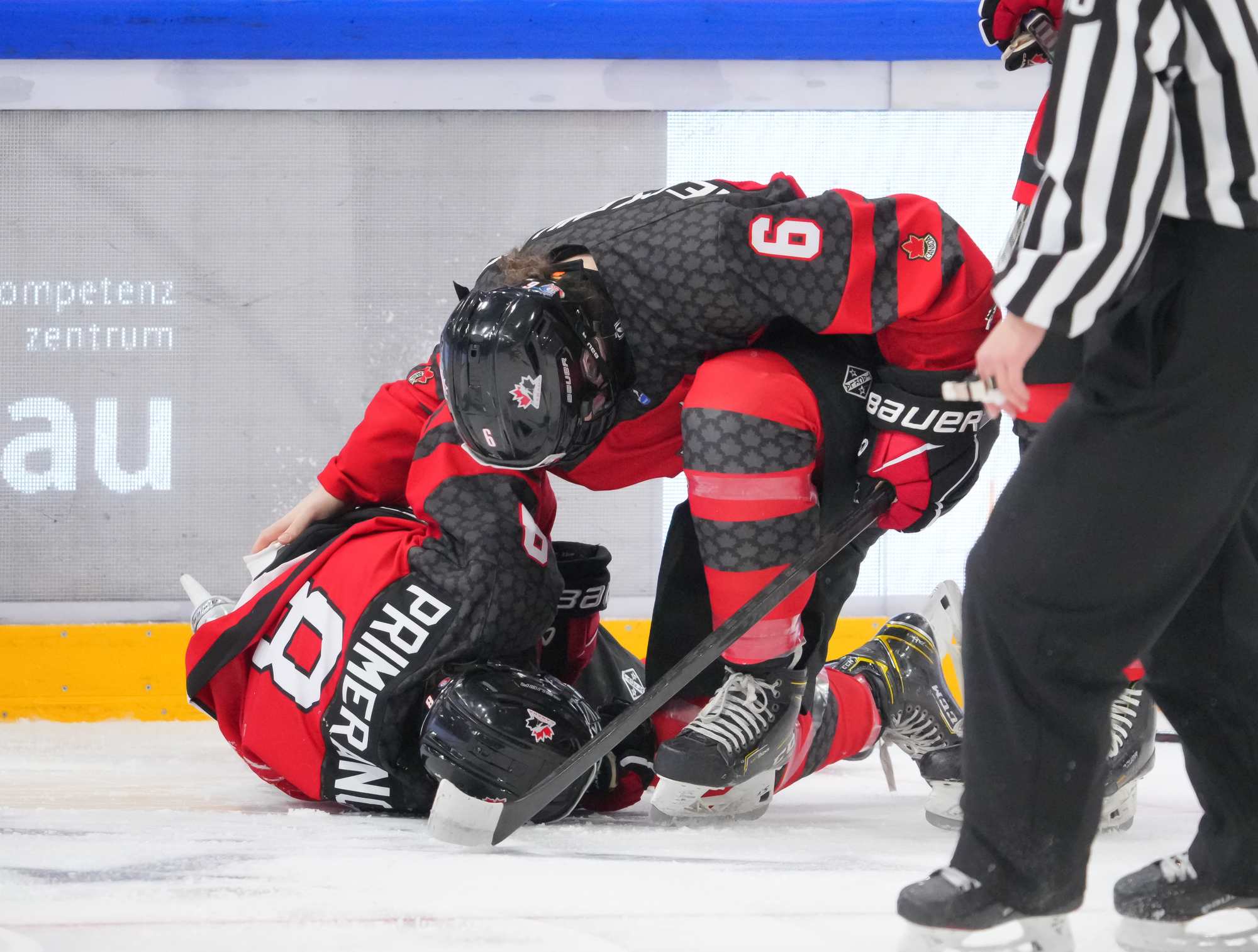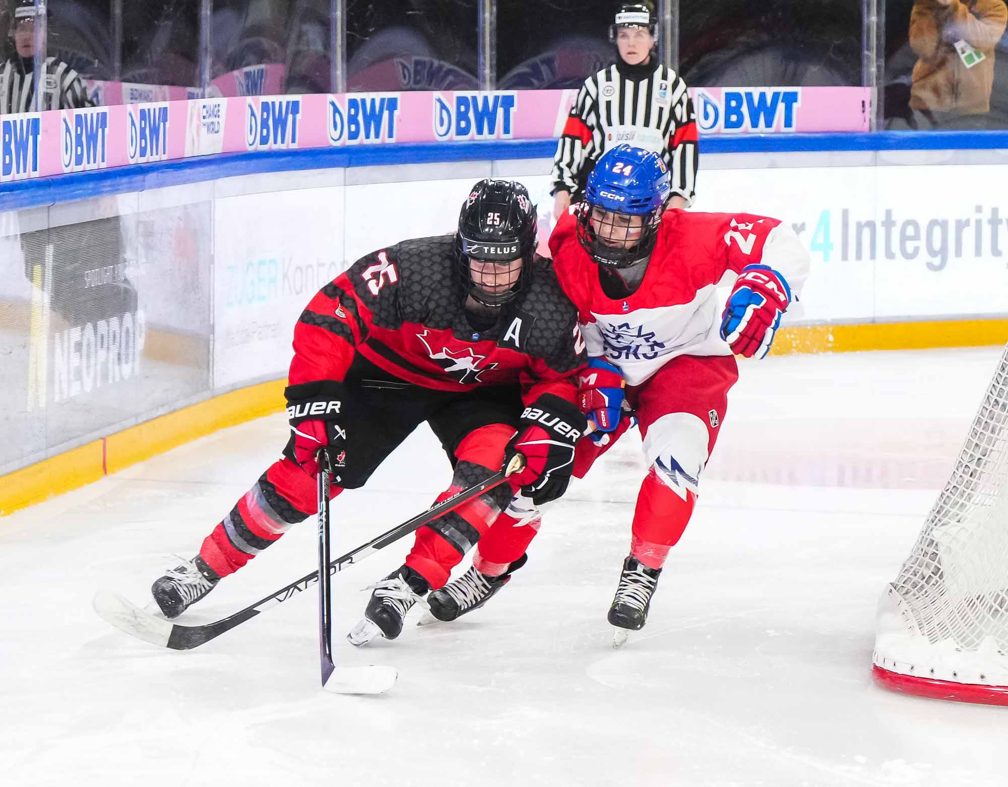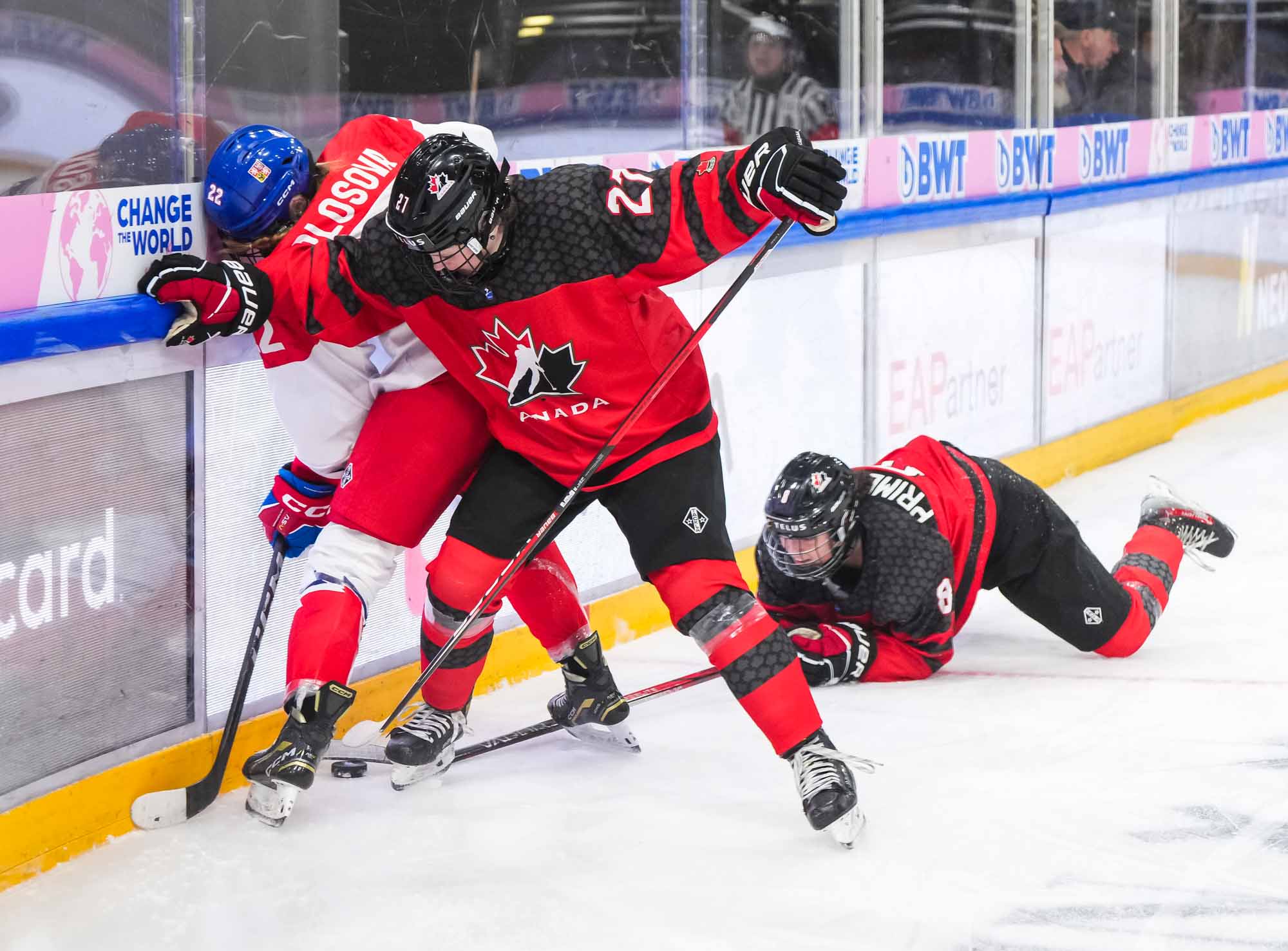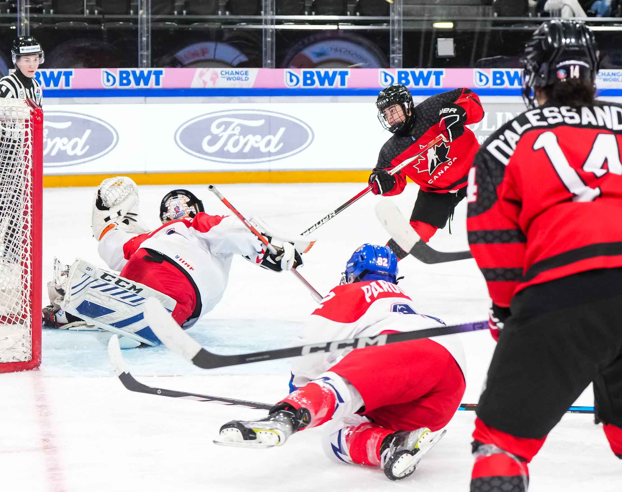 The Canadians started to press. Maxine Cimoroni stickhandled into the Czech zone and set up a pinching Rosalie Breton, who had a wide-open net but was blocked by defender Adela Fromova. Primerano raced down left wing, got tripped up and slid heavily into the end boards.