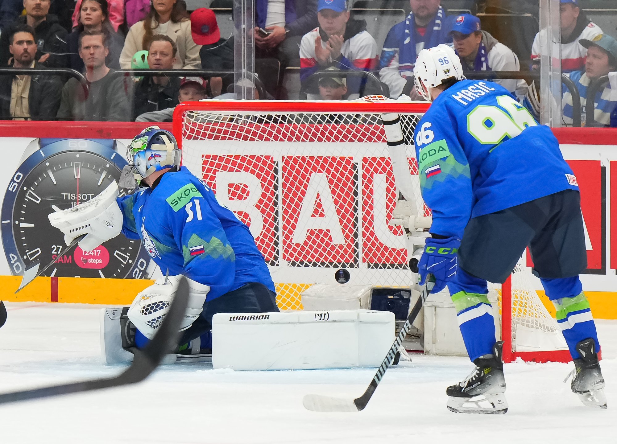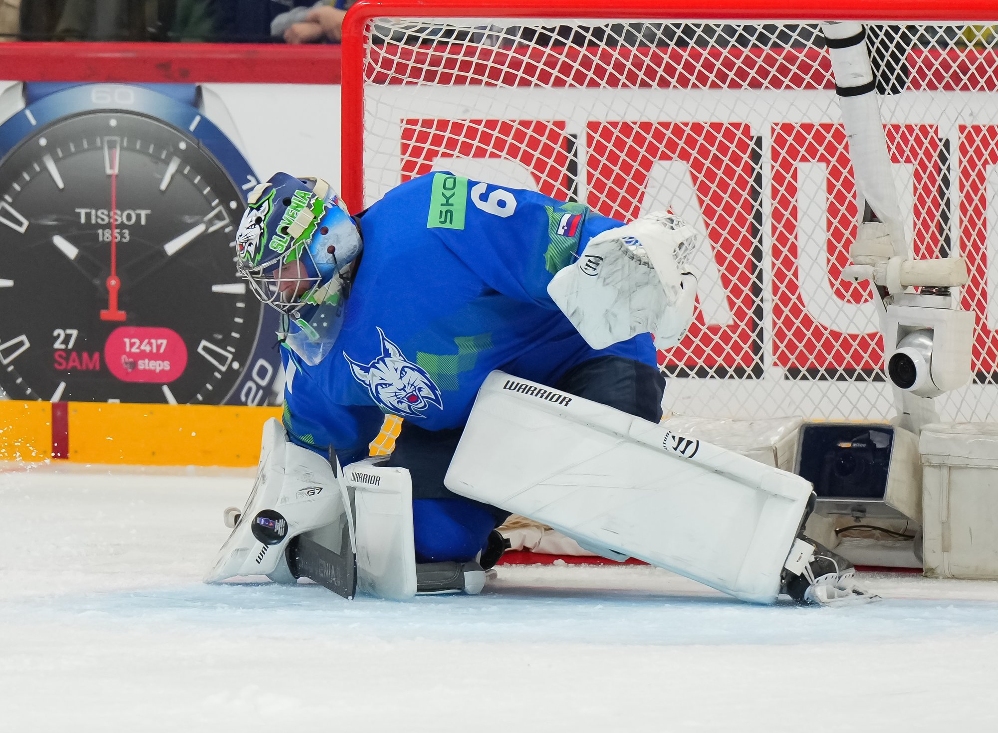 Garand made his best save midway through the third period. Rok Macuh got the puck to Nik Simsic in front, and his quick shot was kicked out by the goalie with cat-like speed.