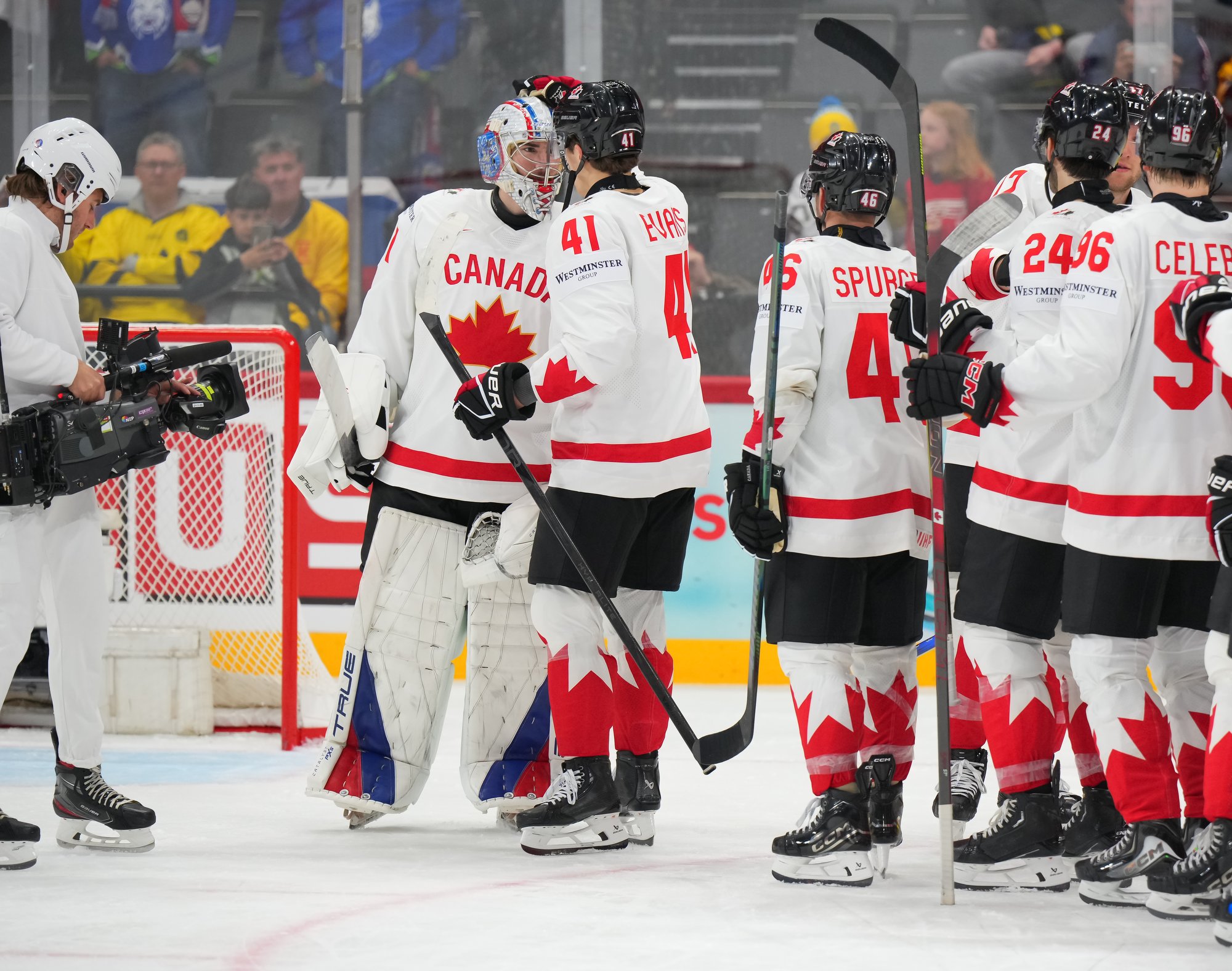Canada scored three power-play goals over the first two periods to charge to a 4-0 win over Slovenia in the first game of the 2025 IIHF World Championship for both teams.