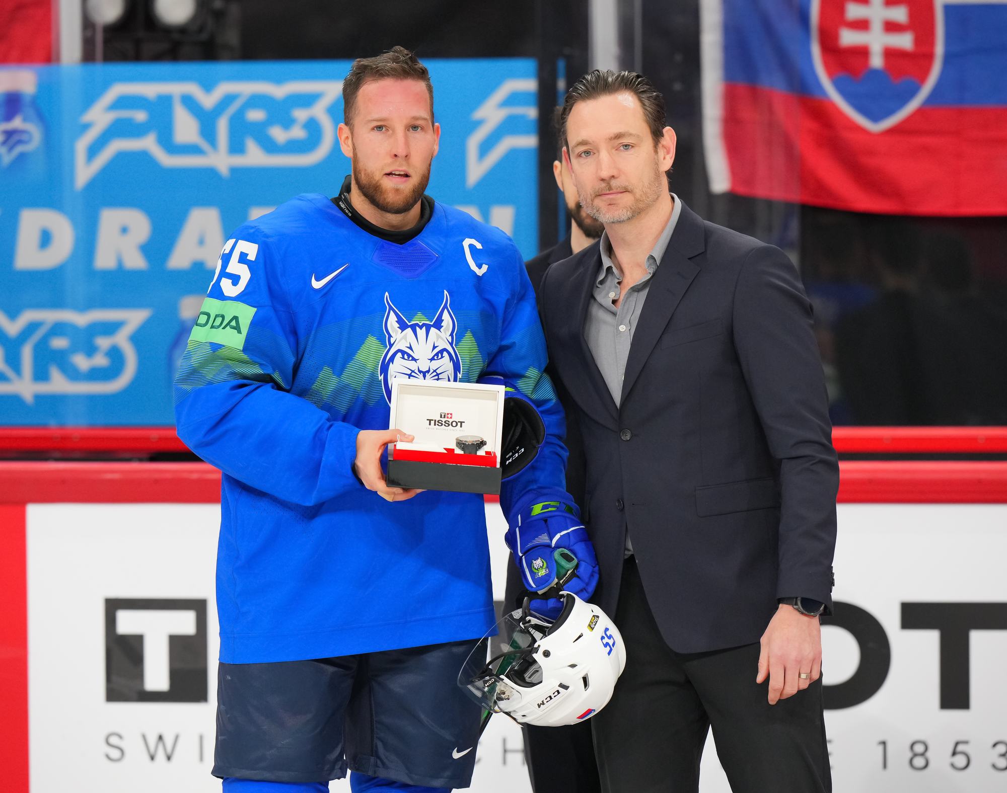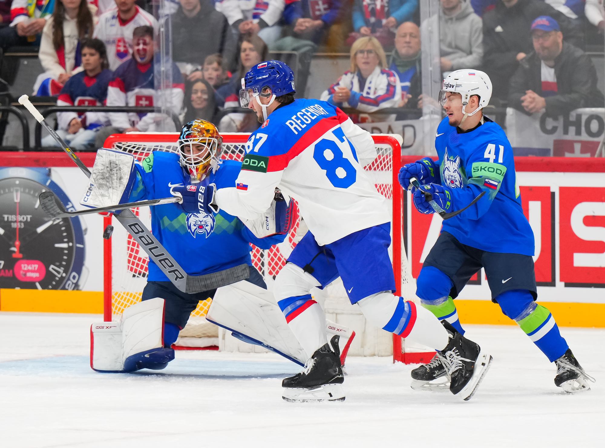 Sixty-six seconds later Pavol Regenda skillfully deflected Samuel Knazko’s point shot into the Slovenian net to double the Slovak lead.