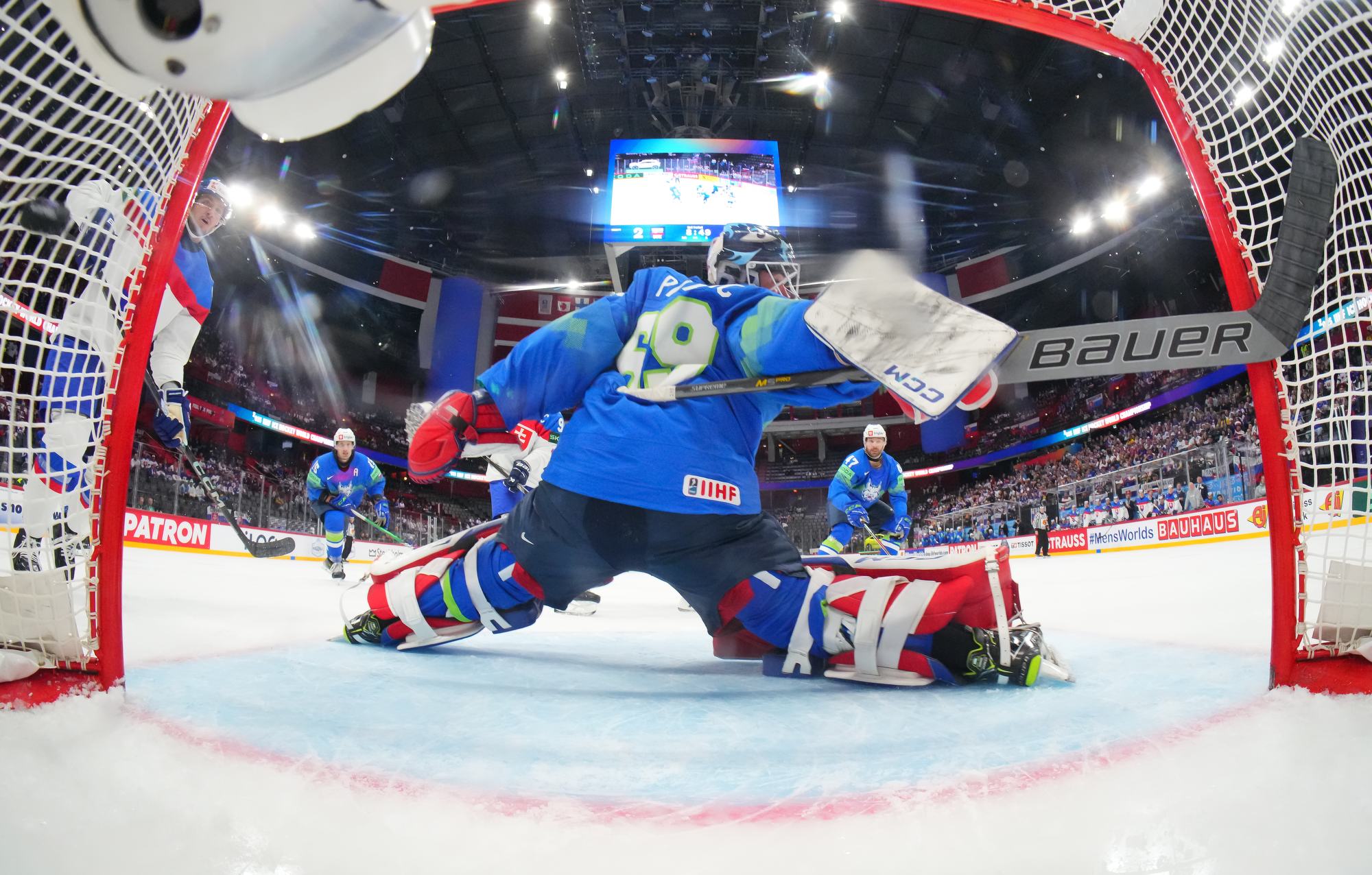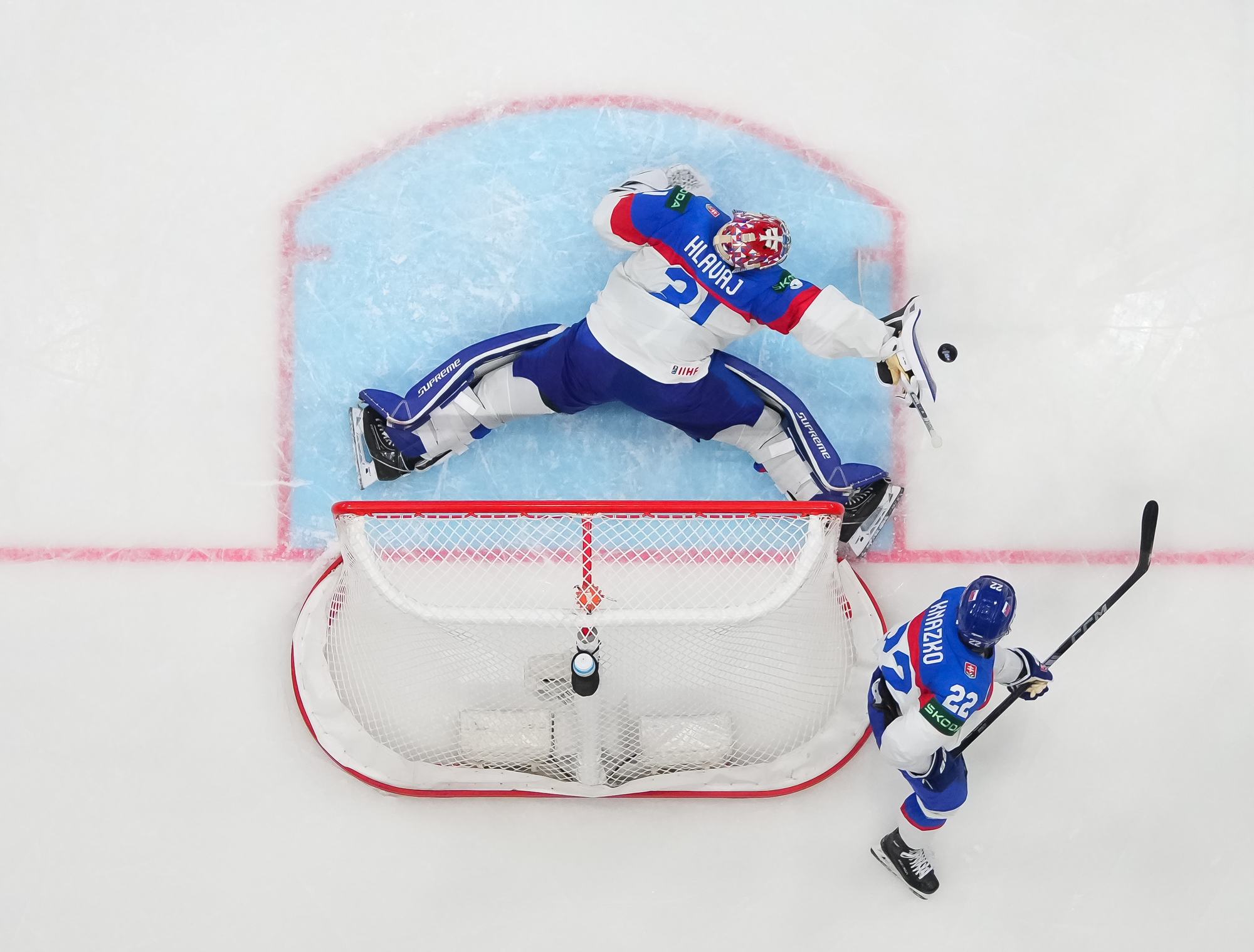 With 90 seconds remaining in the period, Slovenia’s Jan Drozg went coast to coast and beat Hlavaj with a wrister from high slot, but a video review showed the situation had been an offside.