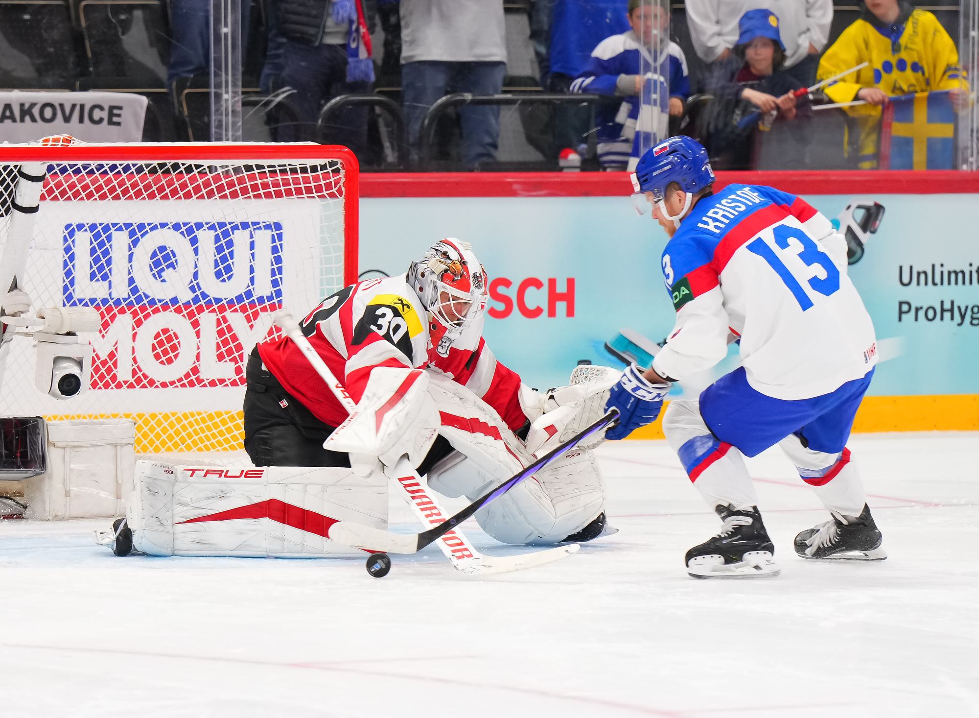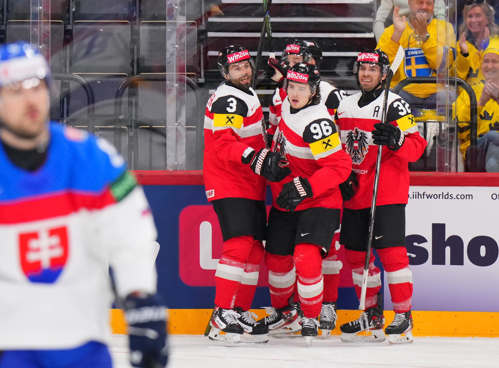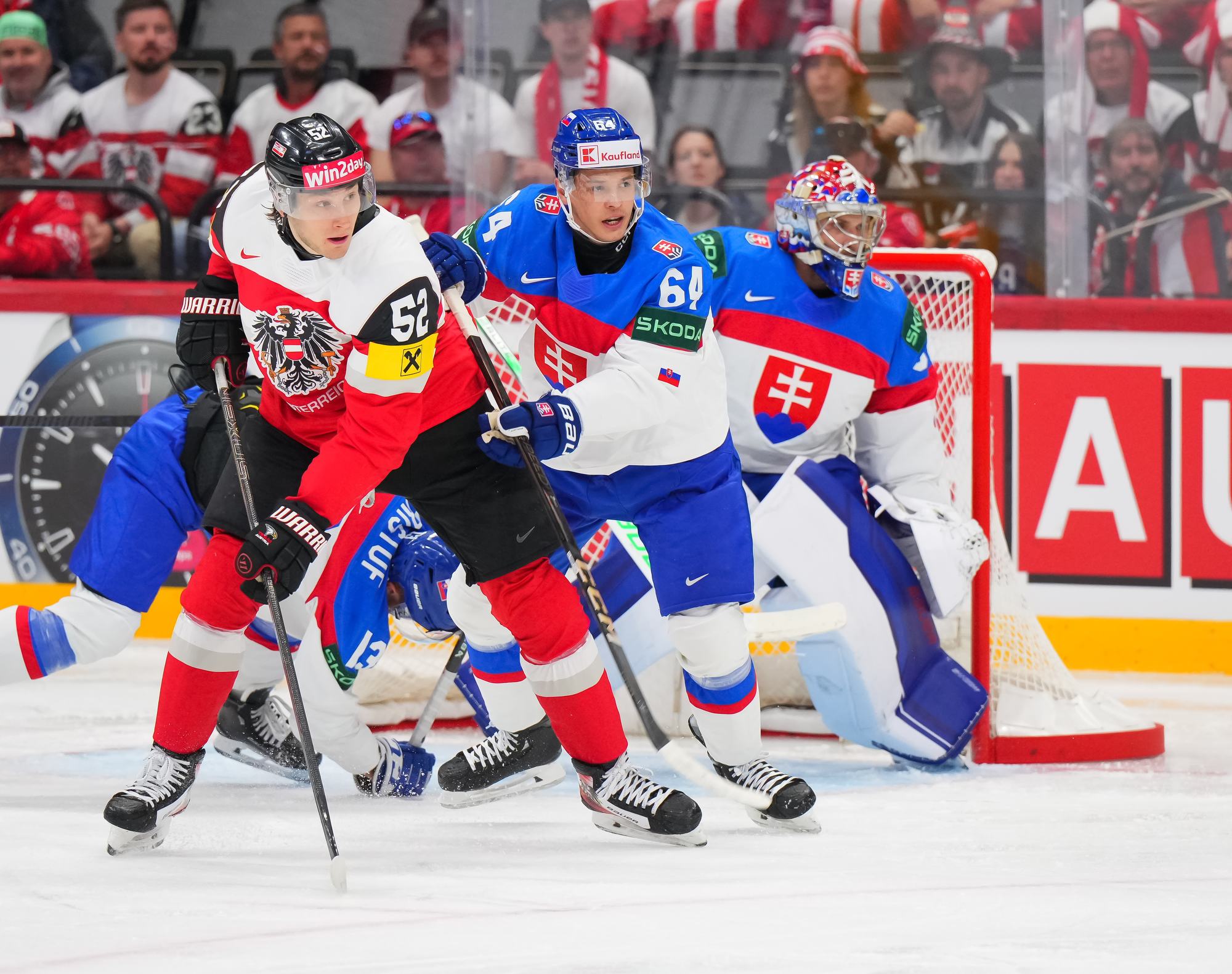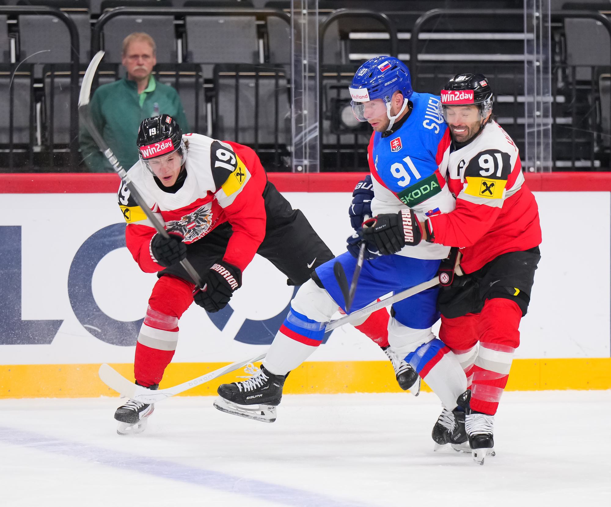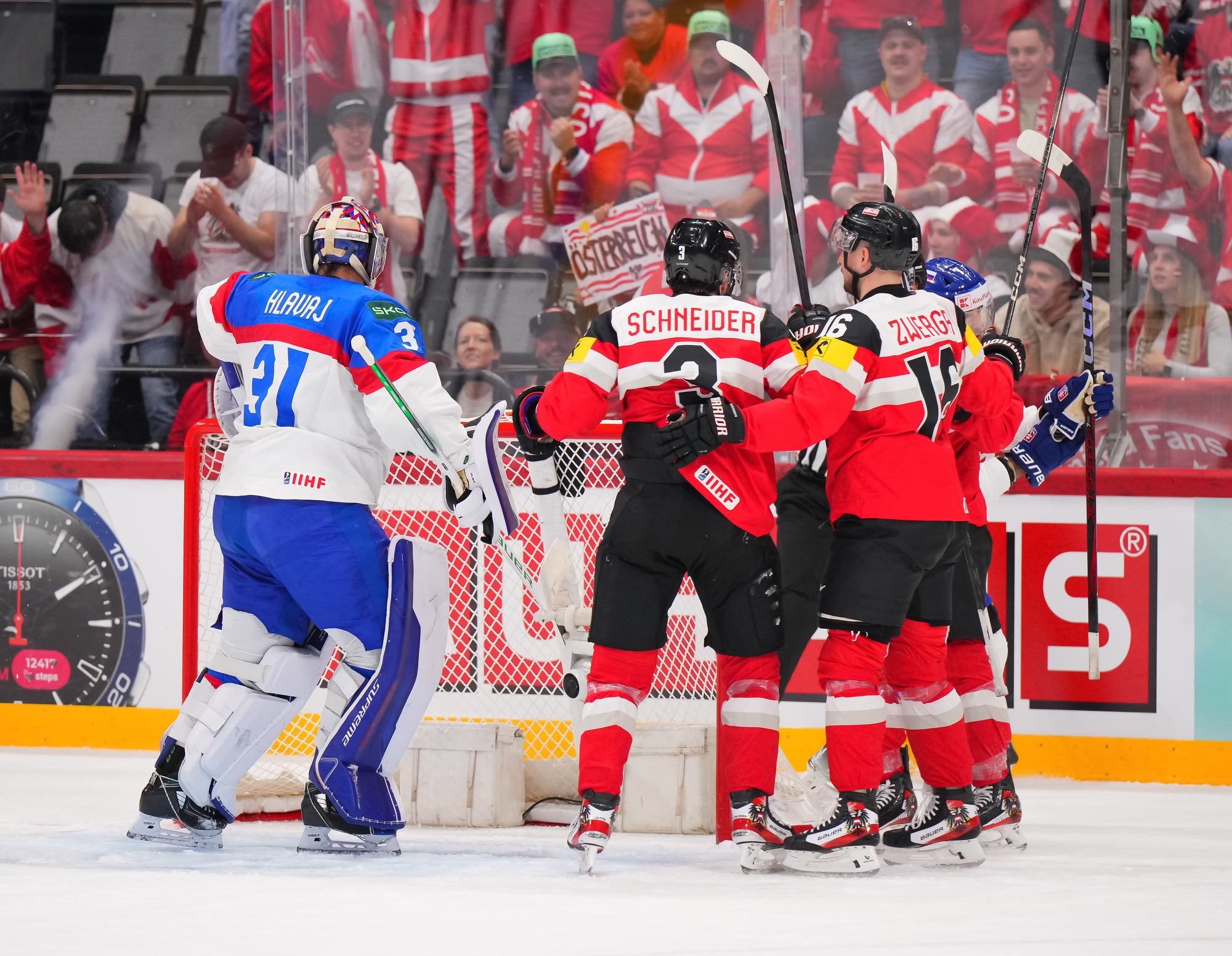 Marco Kasper scored one and added an assist, and David Kickert made 30 saves for Austria. Peter Schneider scored the game-winner in the shootout. Samuel Honzek and Matus Sukel scored for Slovakia in regulation time.