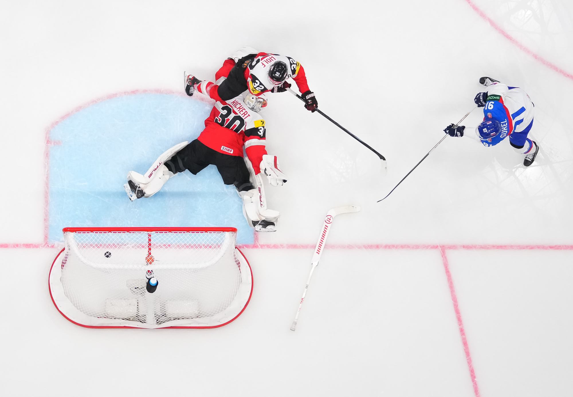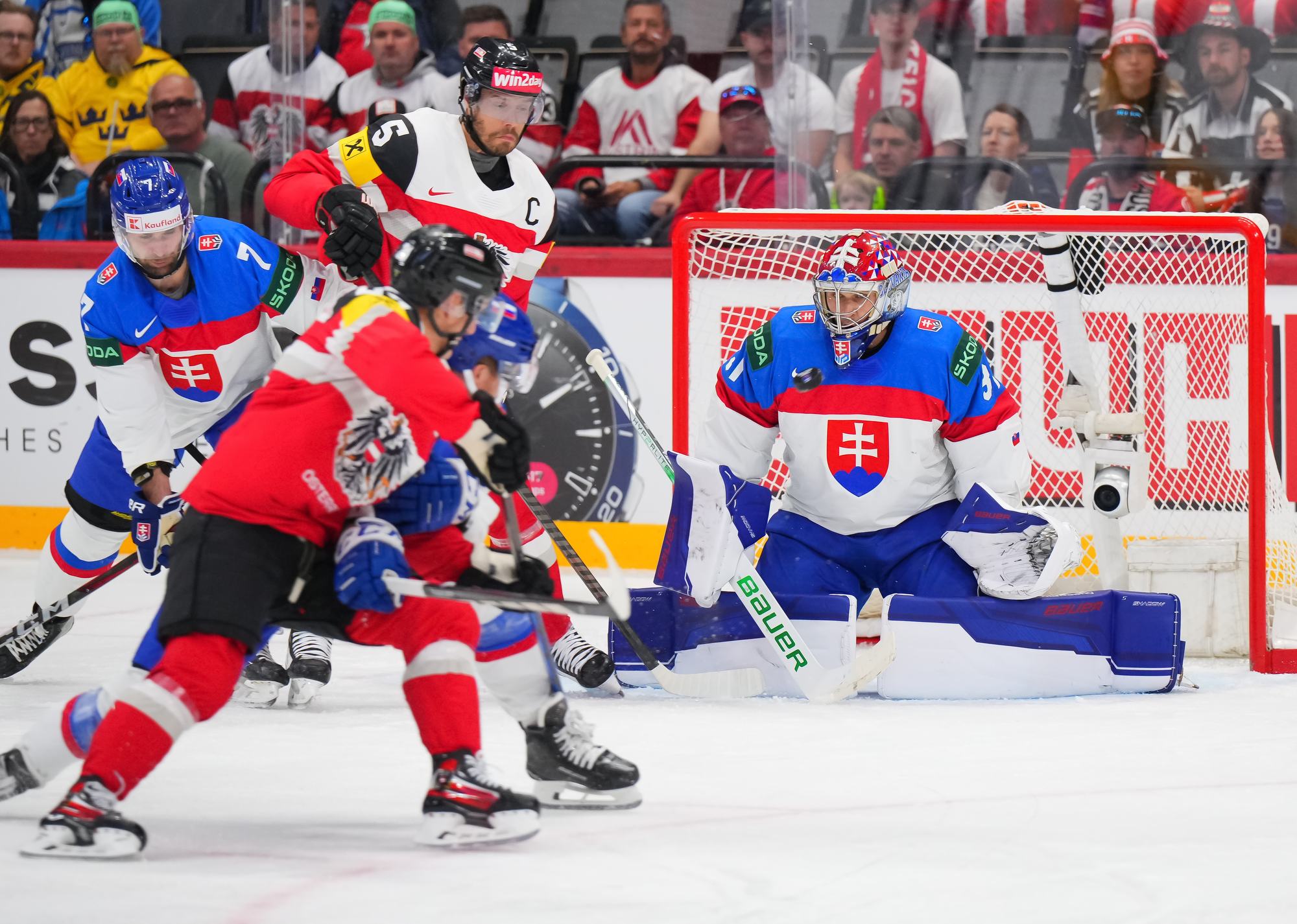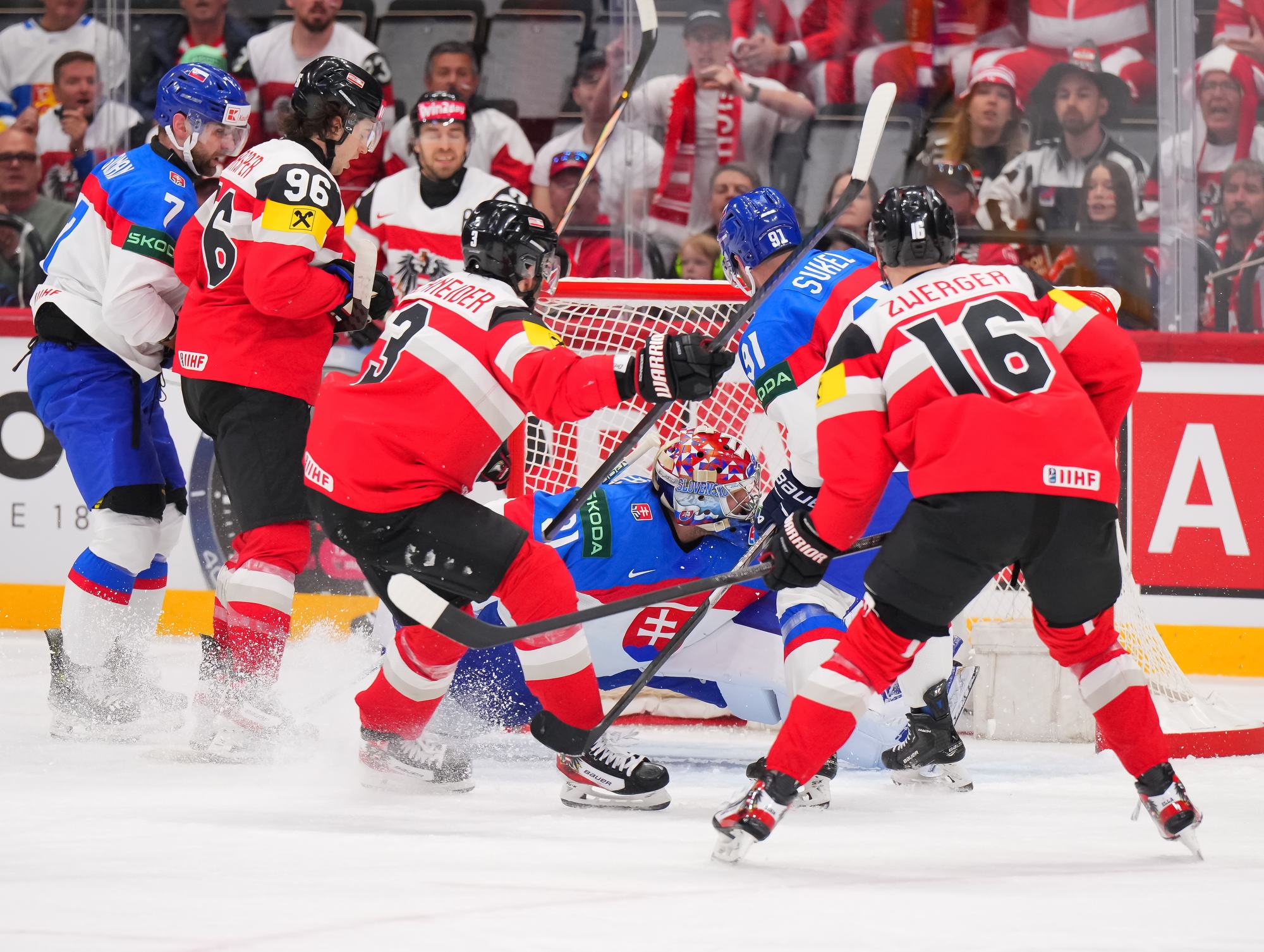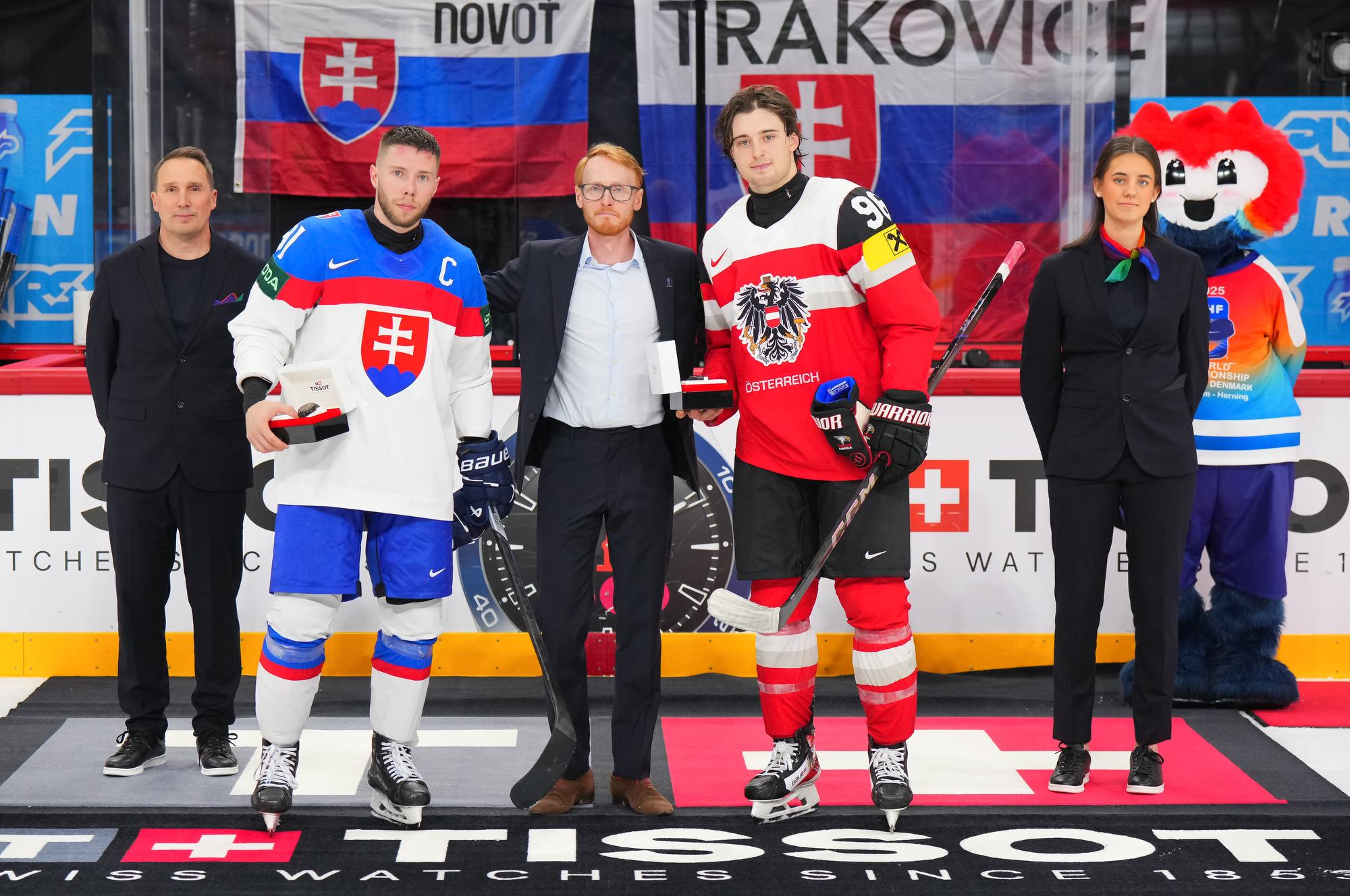 Marco Kasper scored one and added an assist, and David Kickert made 30 saves for Austria. Peter Schneider scored the game-winner in the shootout. Samuel Honzek and Matus Sukel scored for Slovakia in regulation time.