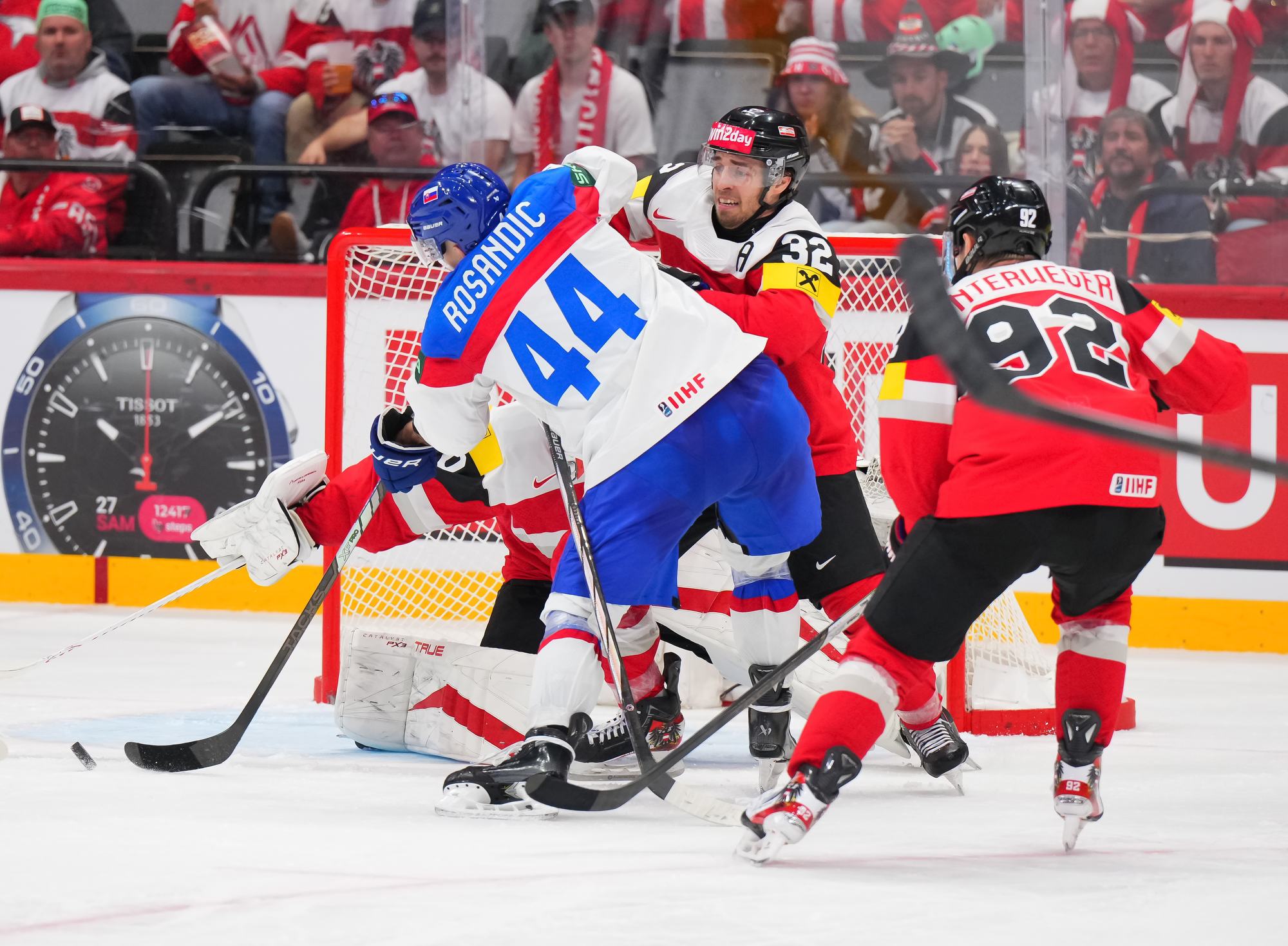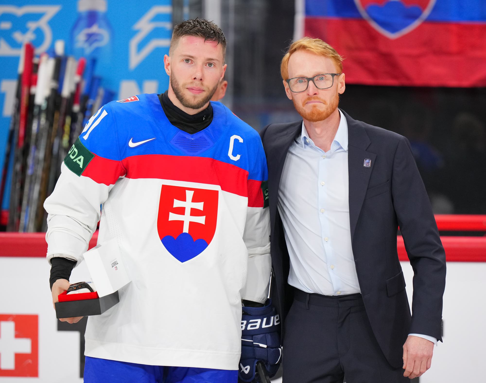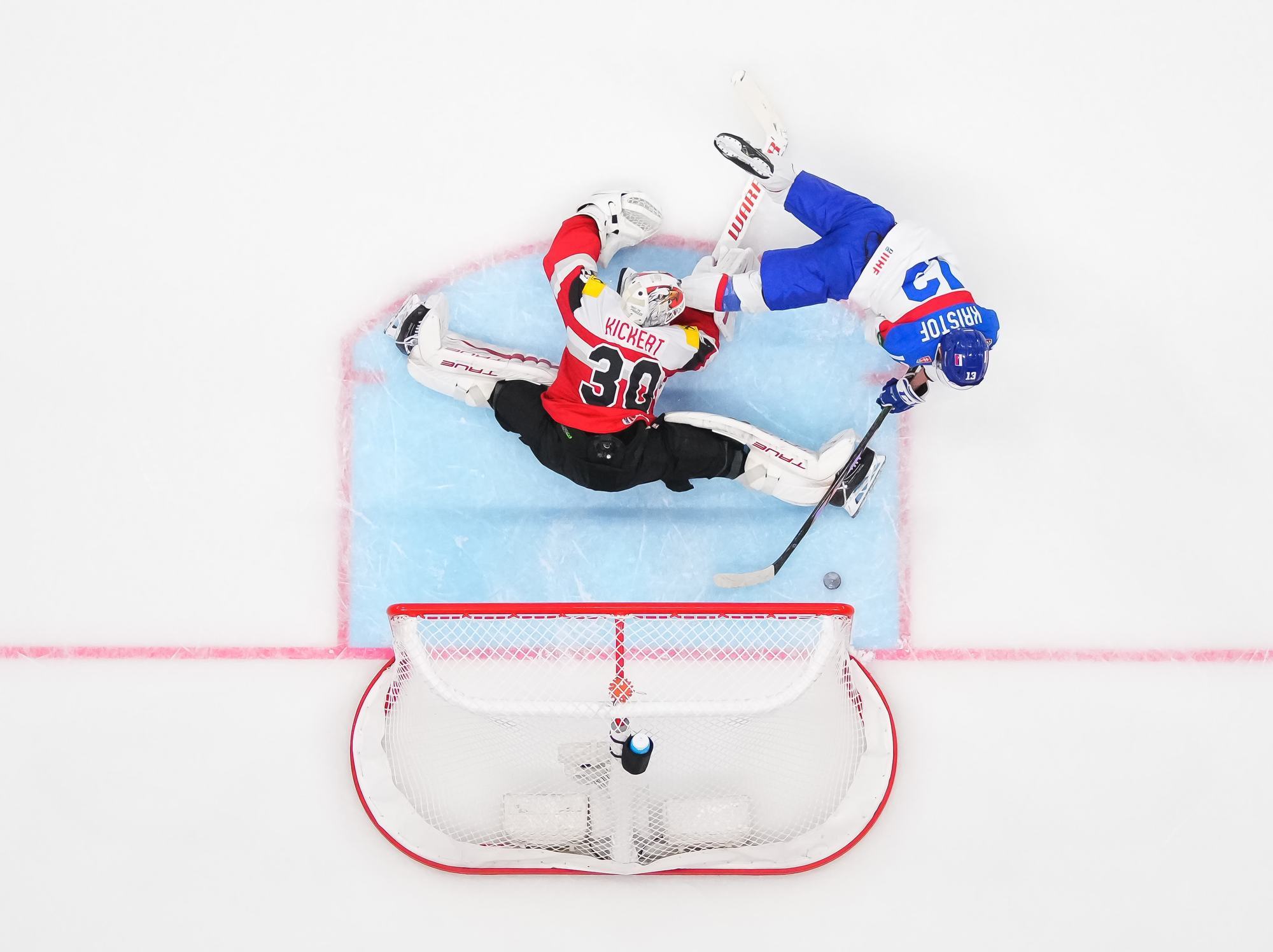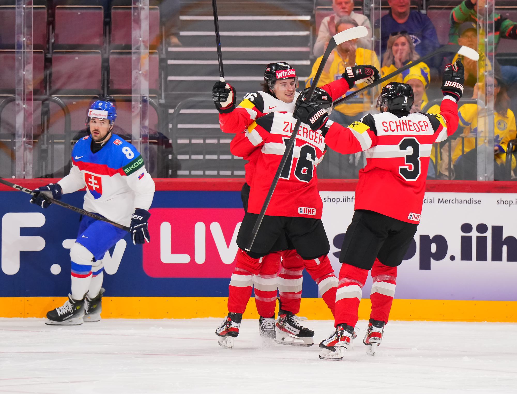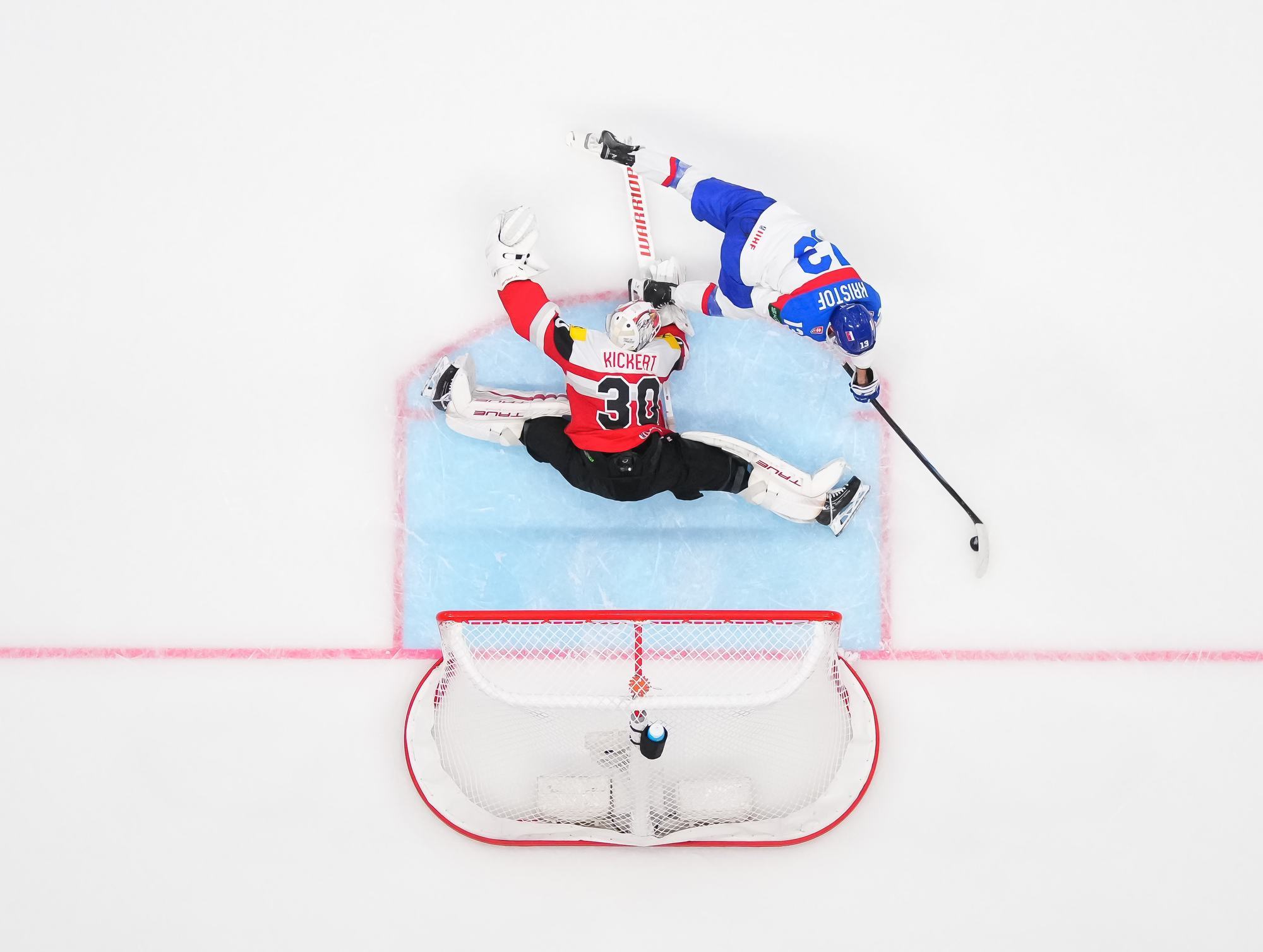 Marco Kasper scored one and added an assist, and David Kickert made 30 saves for Austria. Peter Schneider scored the game-winner in the shootout. Samuel Honzek and Matus Sukel scored for Slovakia in regulation time.