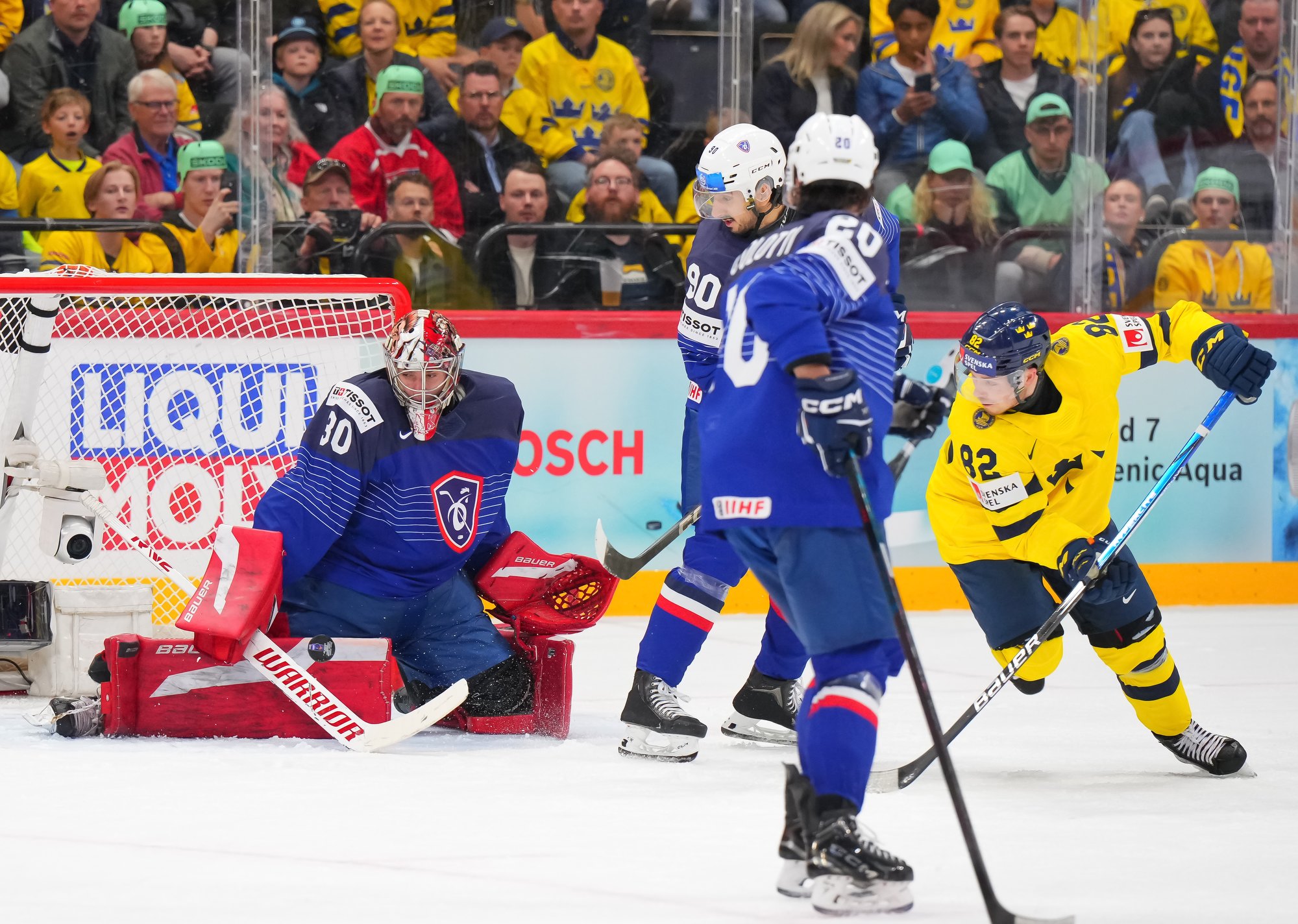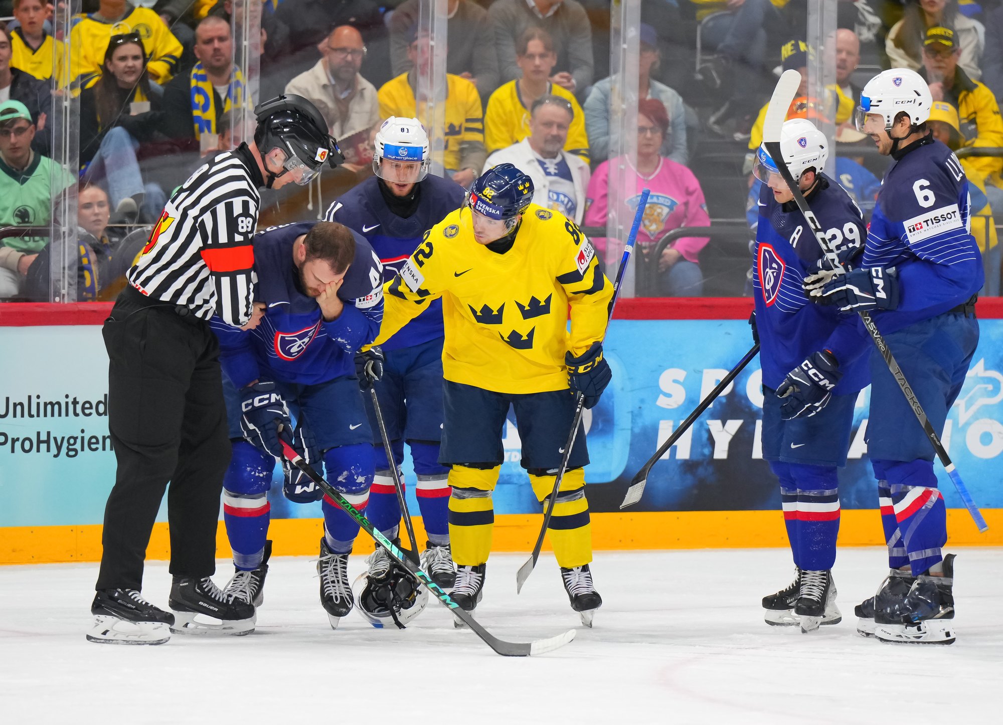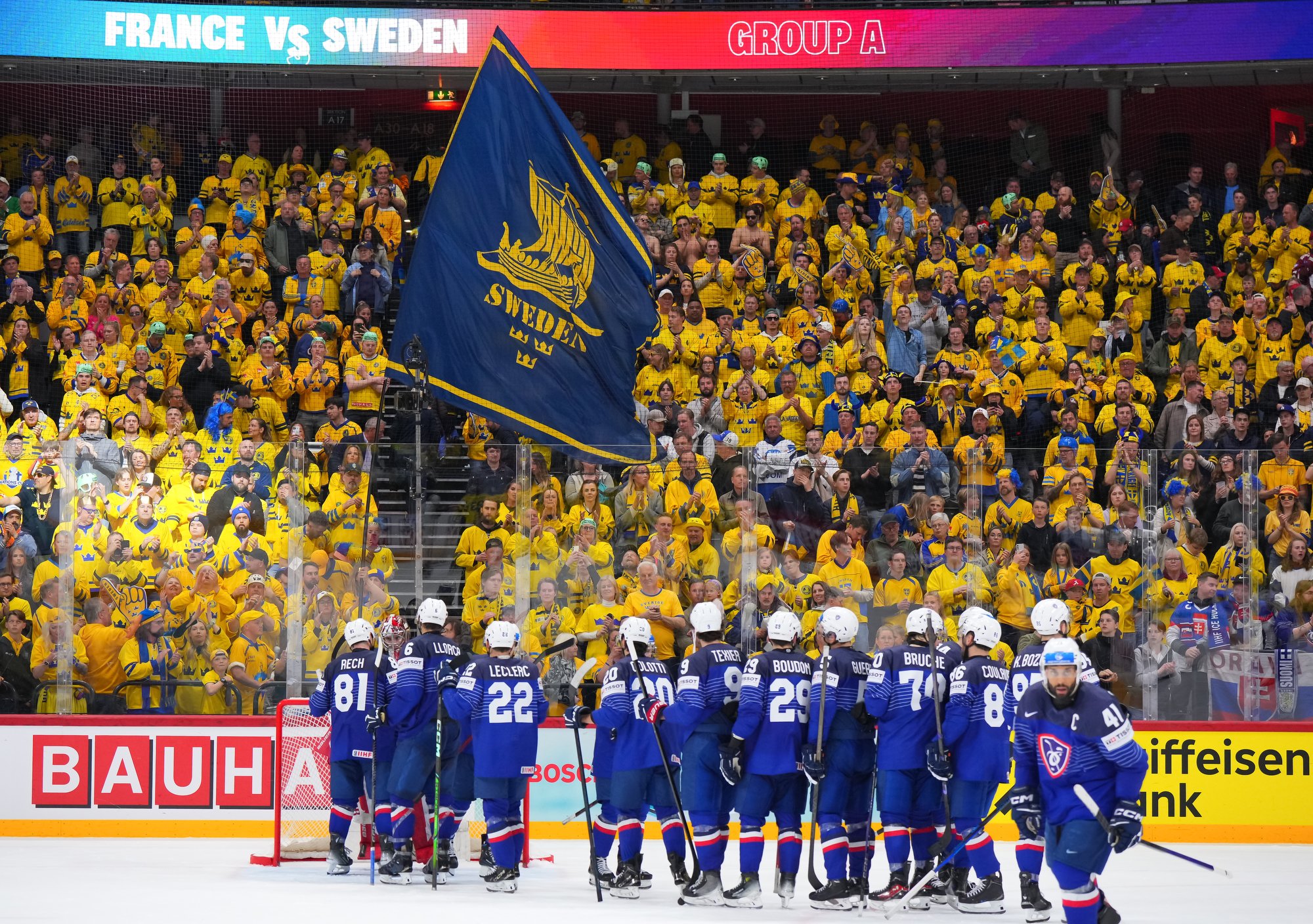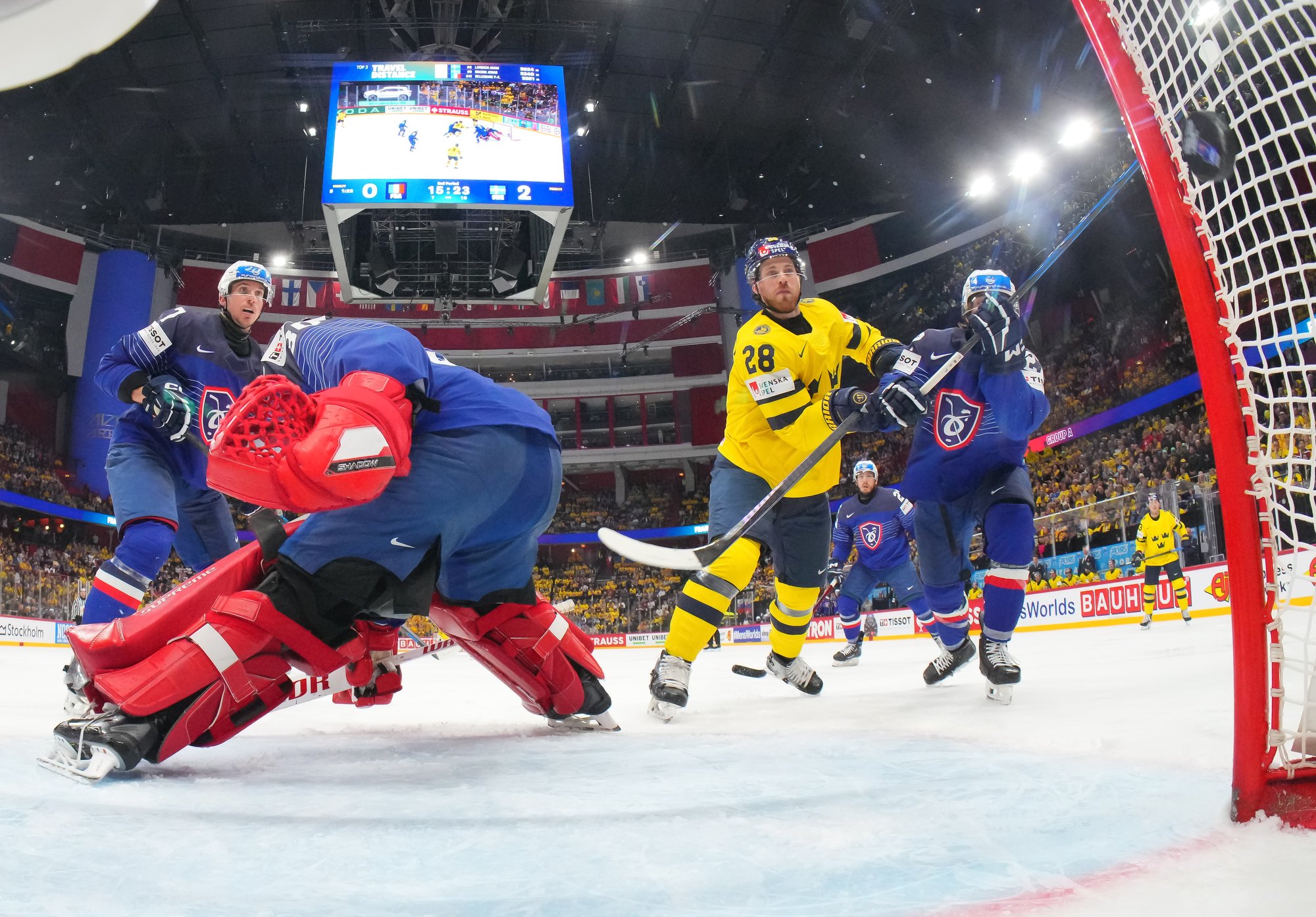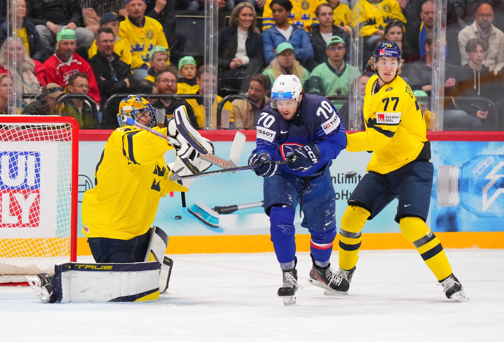 Sweden kept rolling along this afternoon at a loud and sold out Avicii Arena, skating to a dominant 4-0 win over France and maintaining a perfect record, now 6-0. France, meanwhile, drops to 0-0-1-5 and is precariously situated in seventh place of Group A, just one point ahead of winless Slovenia.
