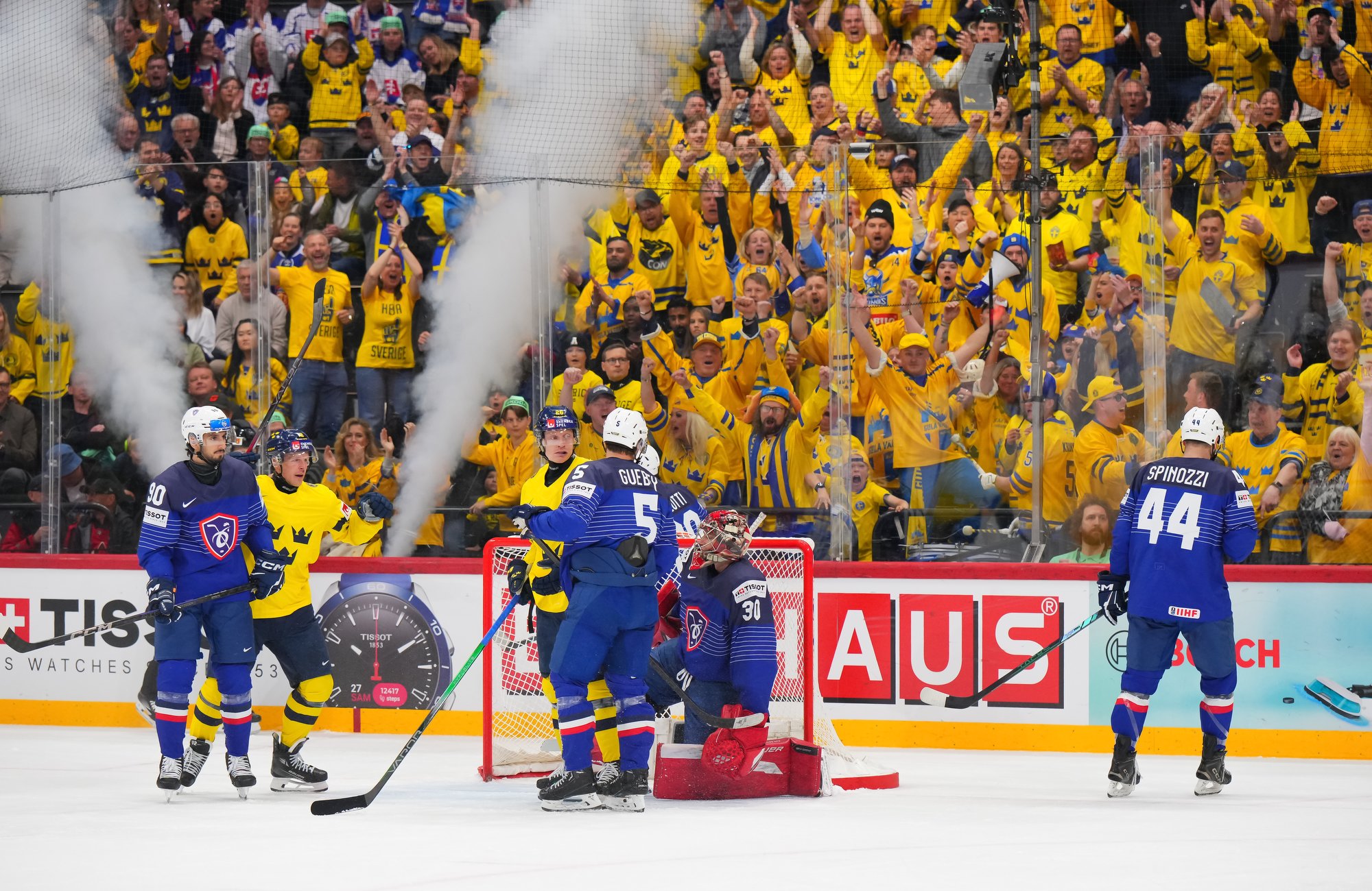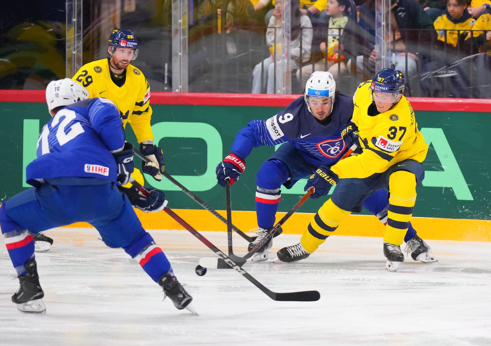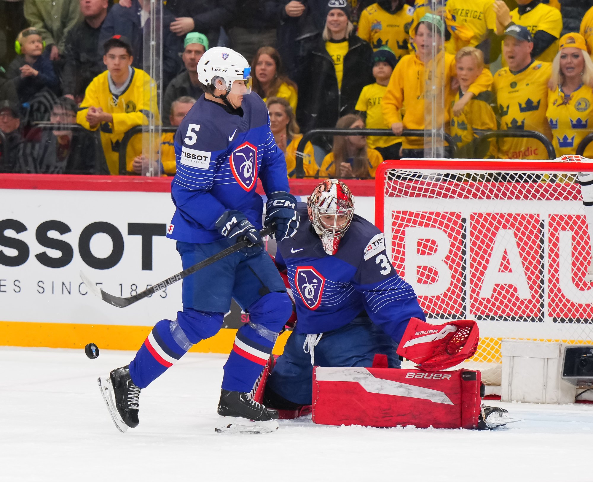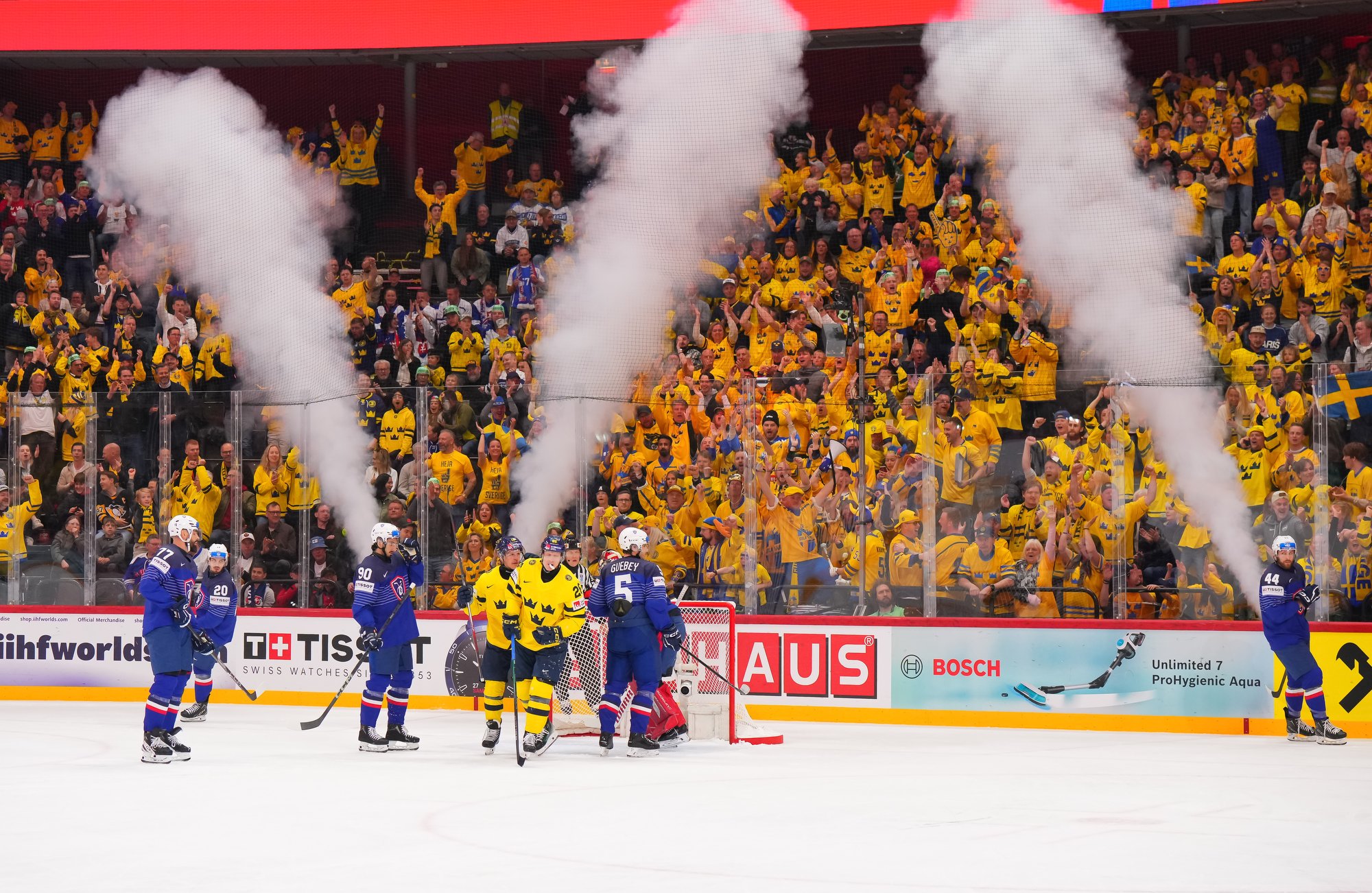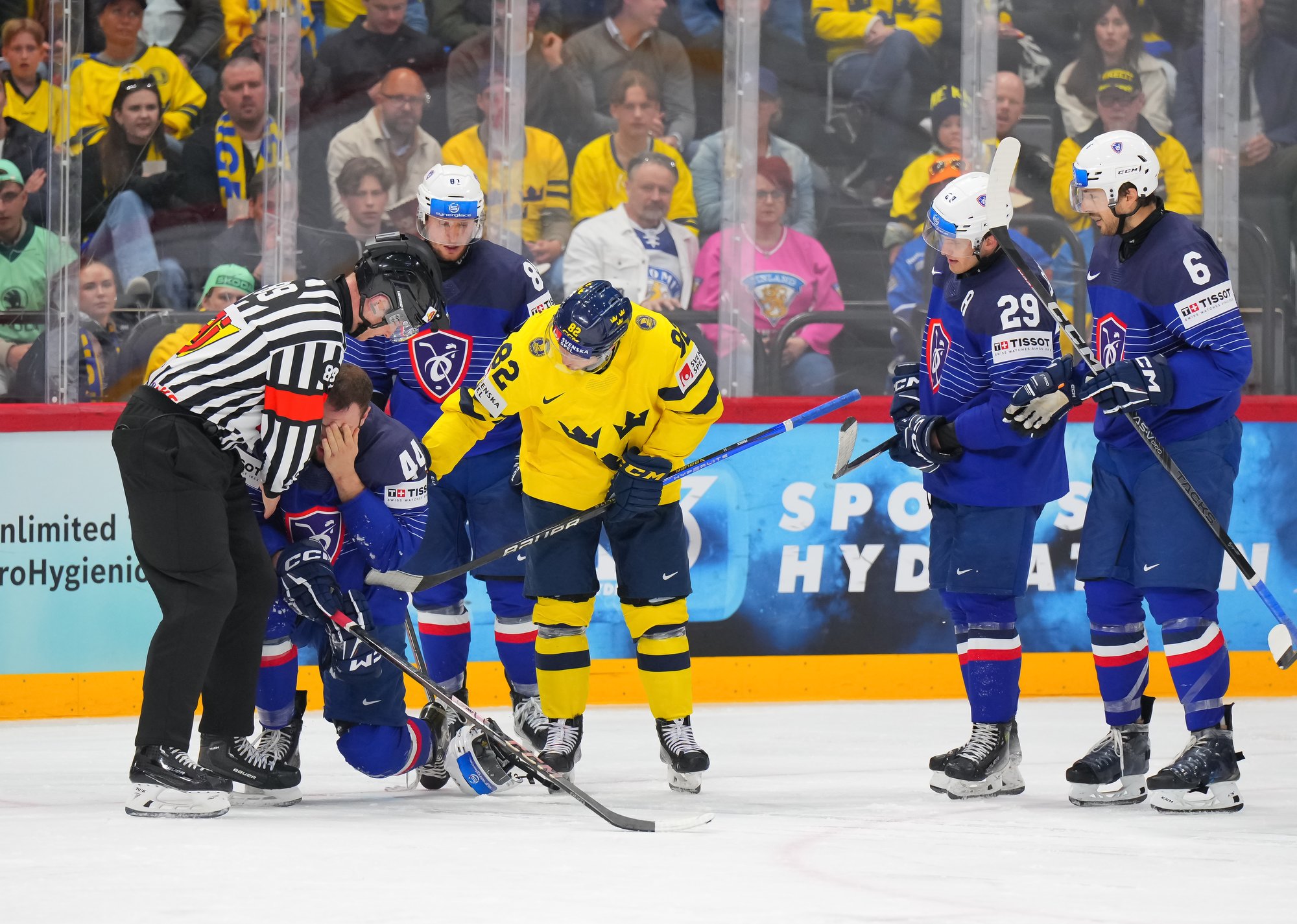 Sweden kept rolling along this afternoon at a loud and sold out Avicii Arena, skating to a dominant 4-0 win over France and maintaining a perfect record, now 6-0. France, meanwhile, drops to 0-0-1-5 and is precariously situated in seventh place of Group A, just one point ahead of winless Slovenia.