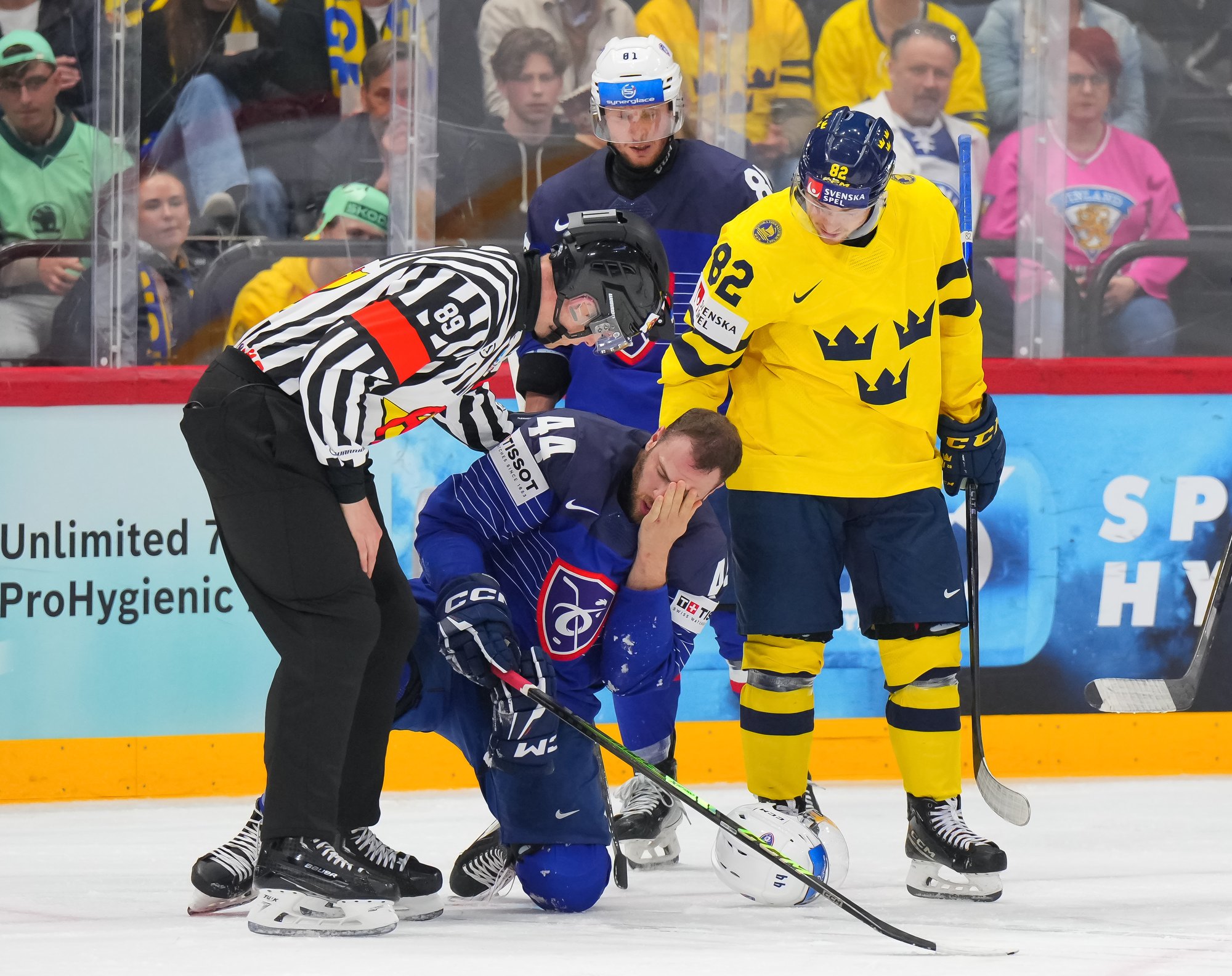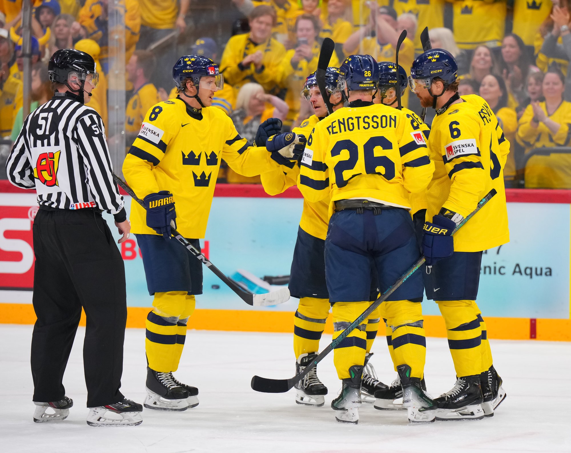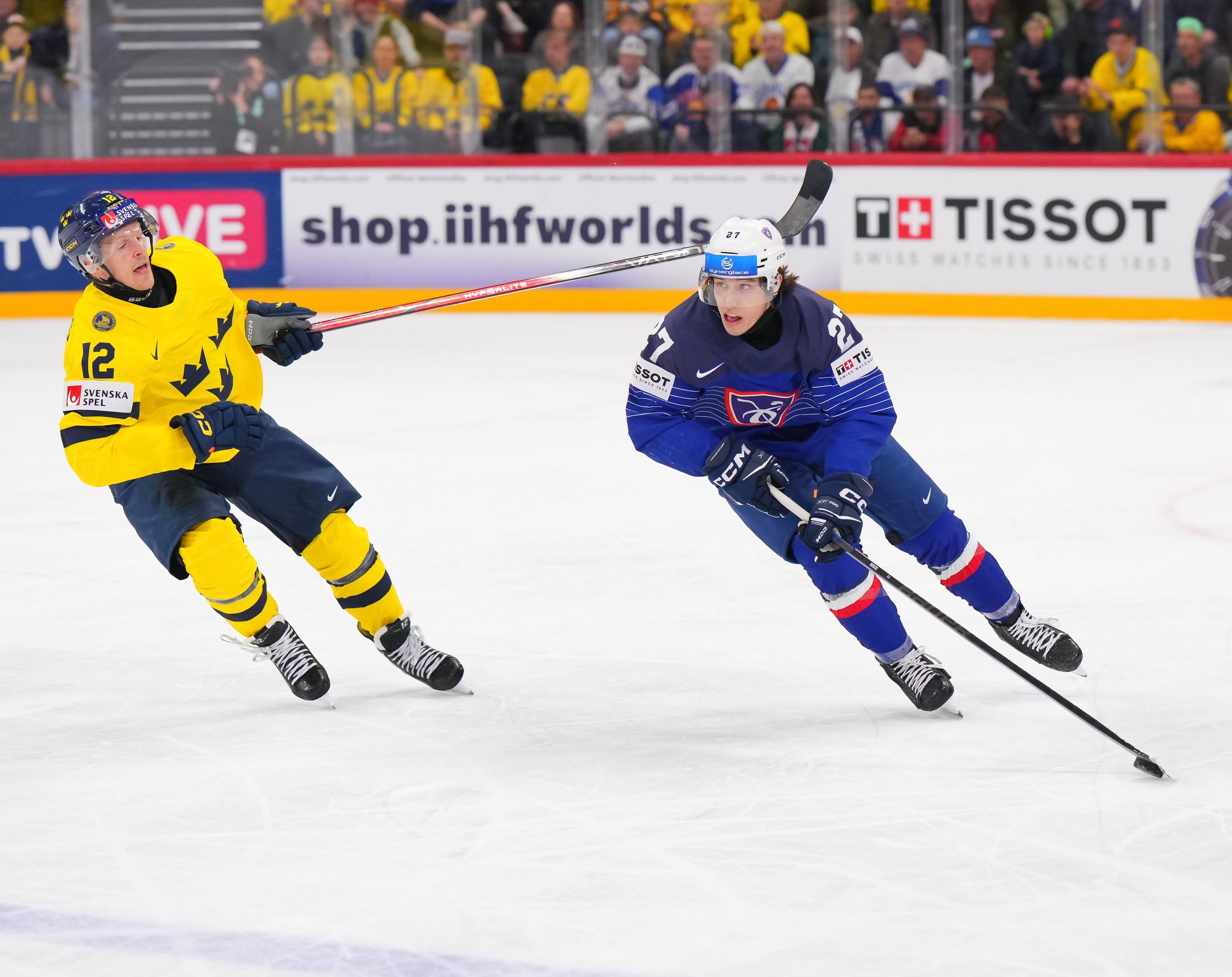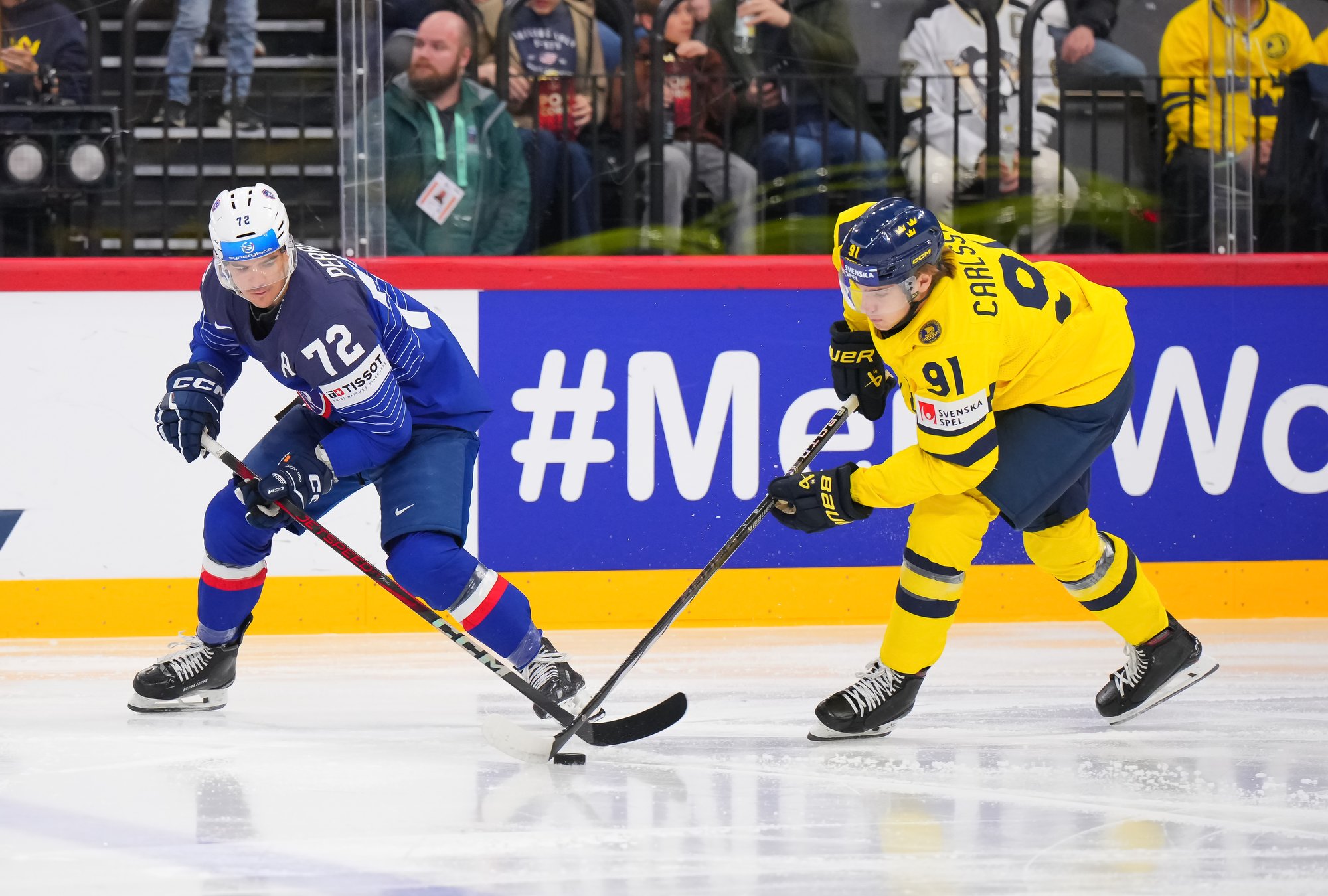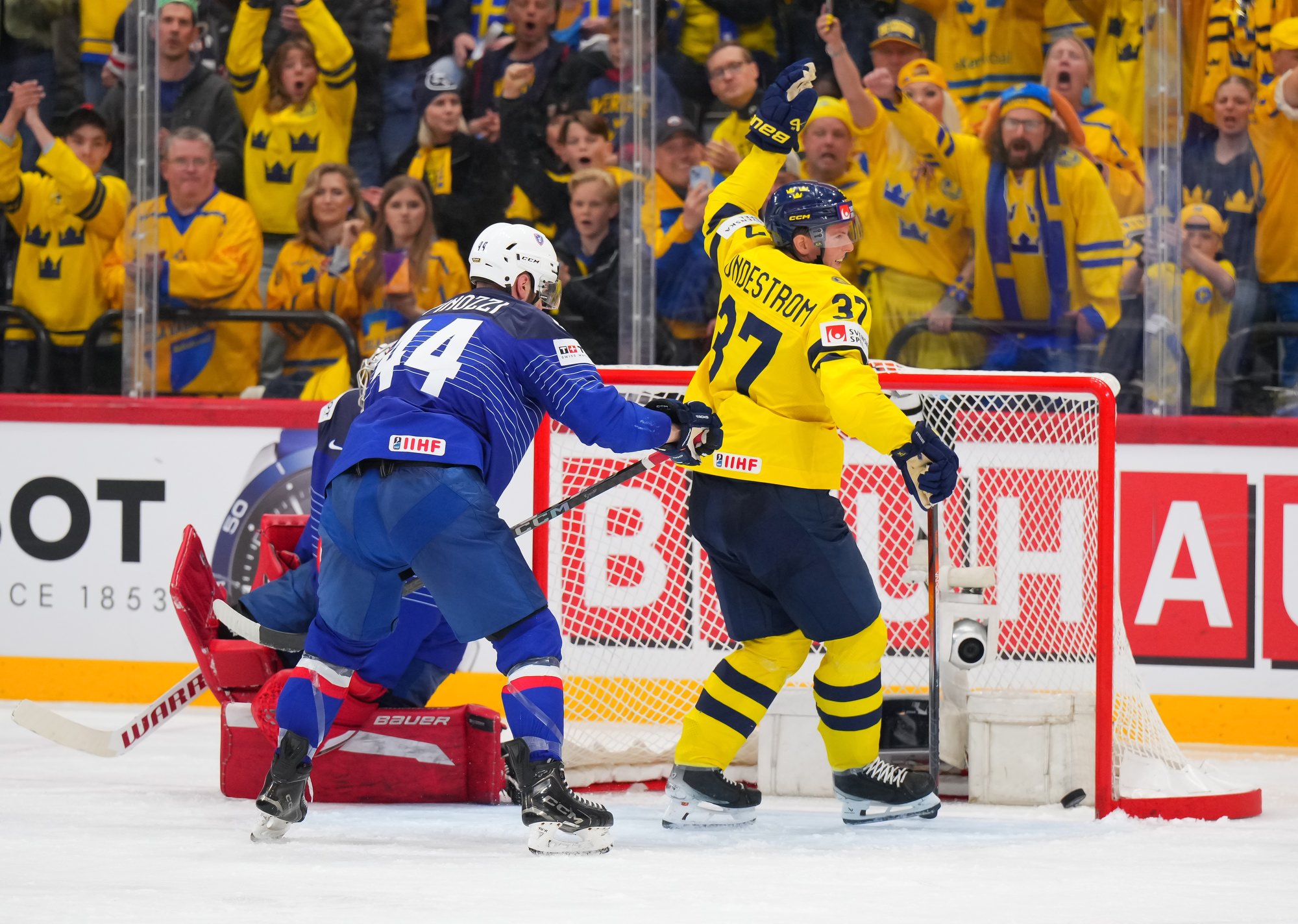 Sweden kept rolling along this afternoon at a loud and sold out Avicii Arena, skating to a dominant 4-0 win over France and maintaining a perfect record, now 6-0. France, meanwhile, drops to 0-0-1-5 and is precariously situated in seventh place of Group A, just one point ahead of winless Slovenia.