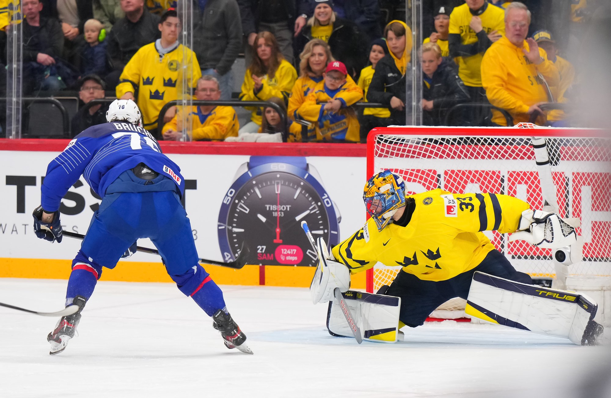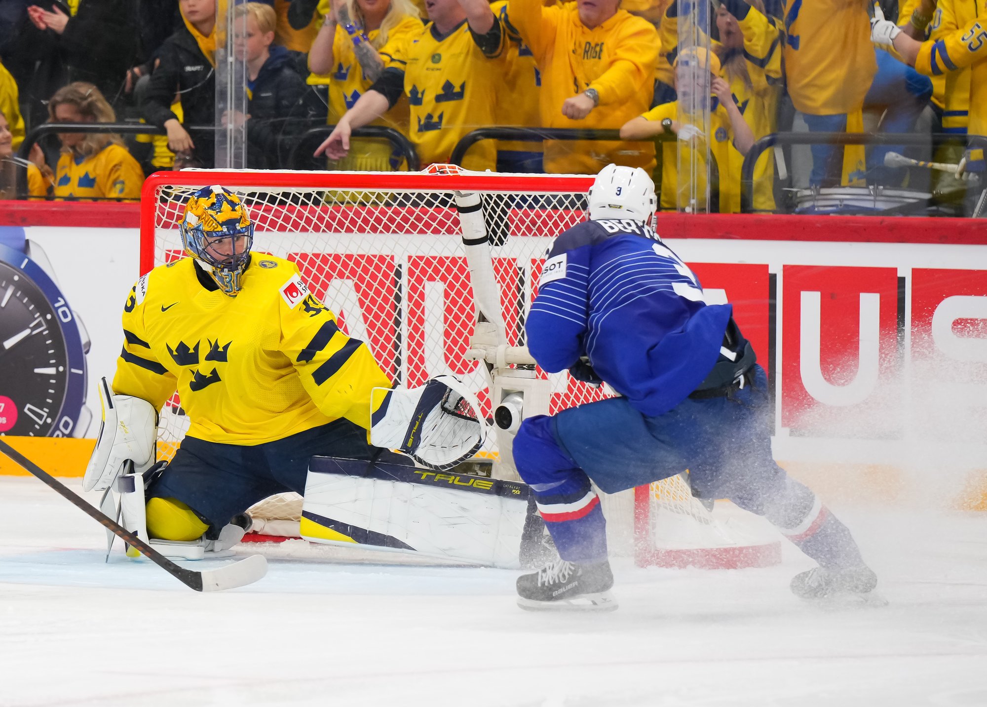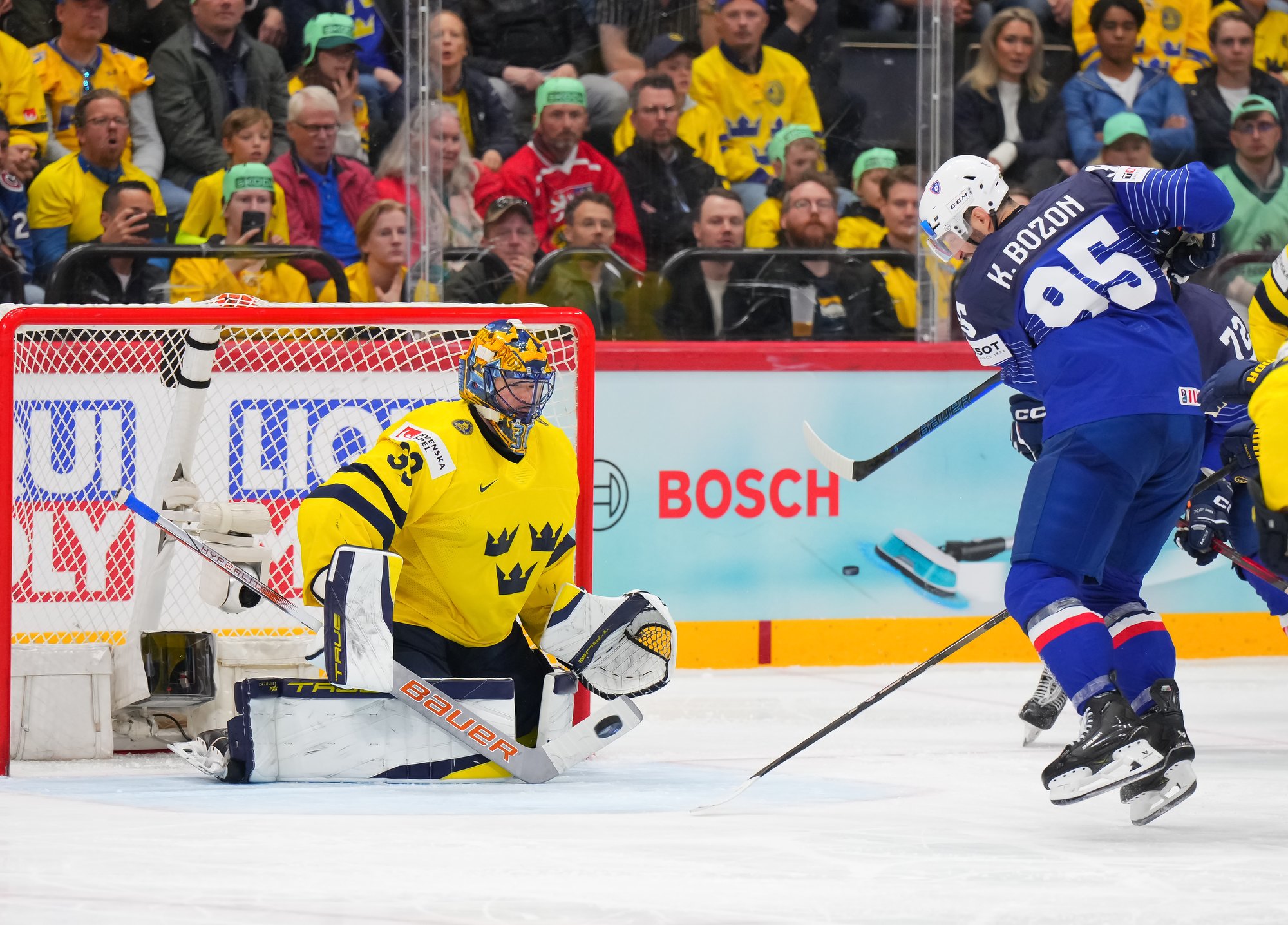The Swedes got off to exactly the start they wanted, taking the play to France, generating shots, and giving their own goalie, Ersson, a relatively light workout. The scoring in the opening period took place in a 58-second span midway through on two similar goals.
