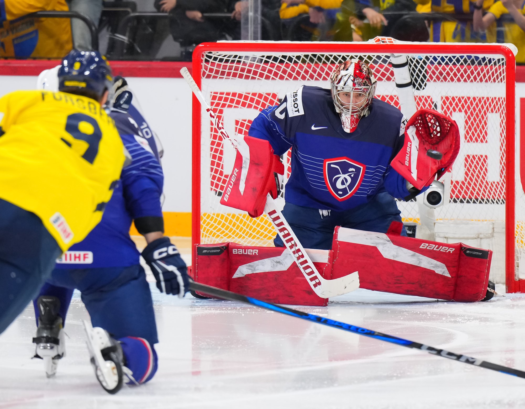 Later in the period, Baptiste Bruche cleverly stripped Filip Forsberg of the puck at the France blue line and hustled in alone, and he also blasted a shot wide of the target.