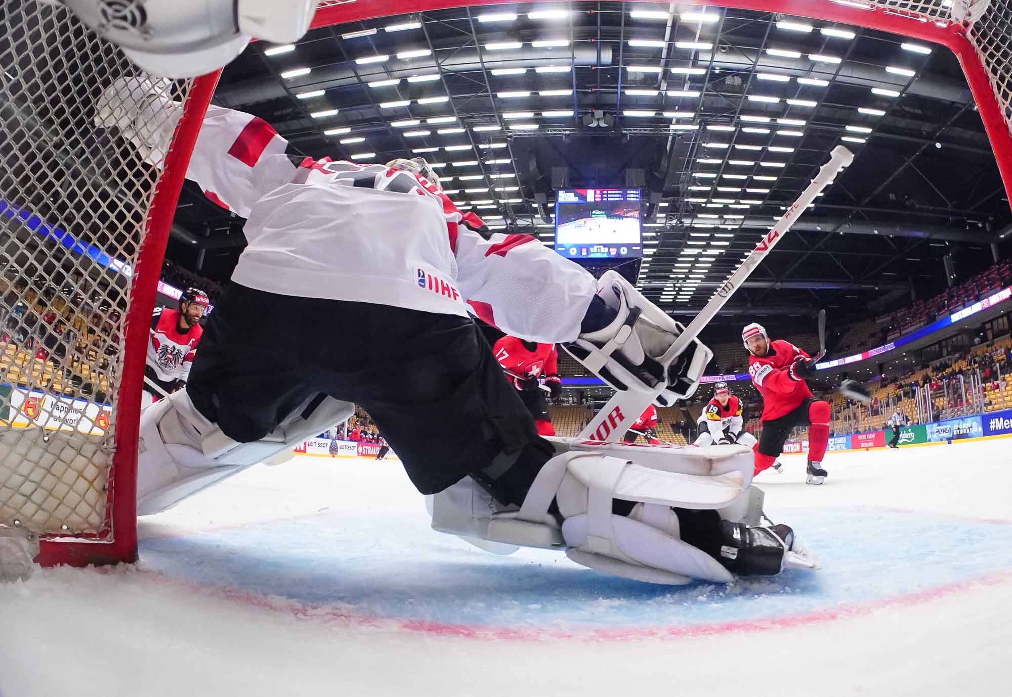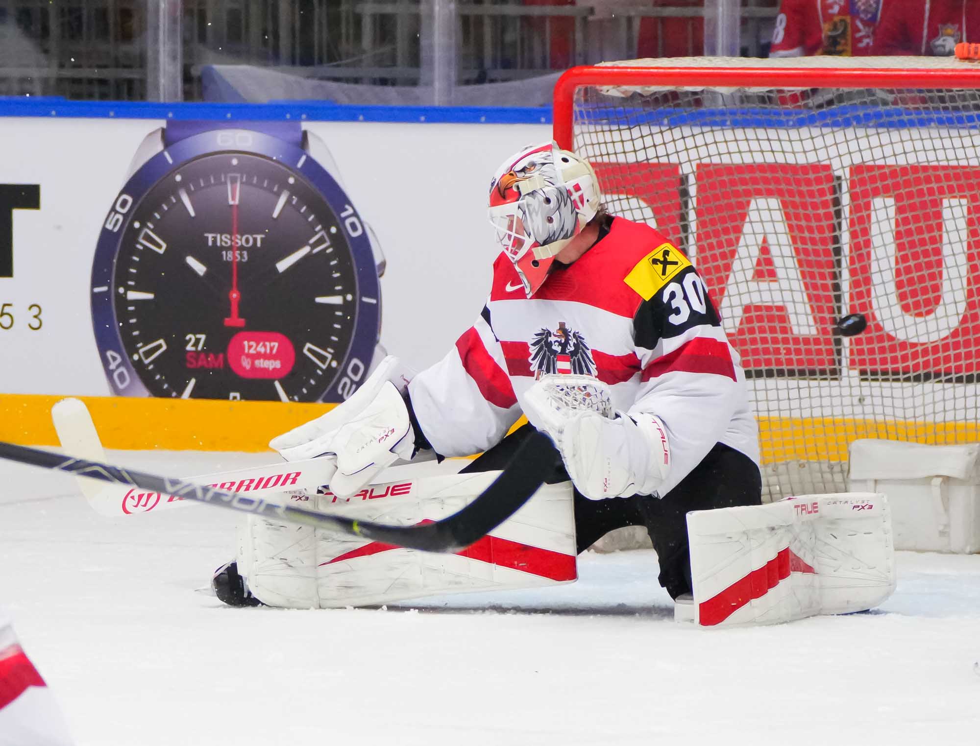 The Austrians didn’t register a shot for more than eight minutes. But when it came, it was an excellent chance from the slot for Marco Kasper, and Genoni had to be alert to say no.