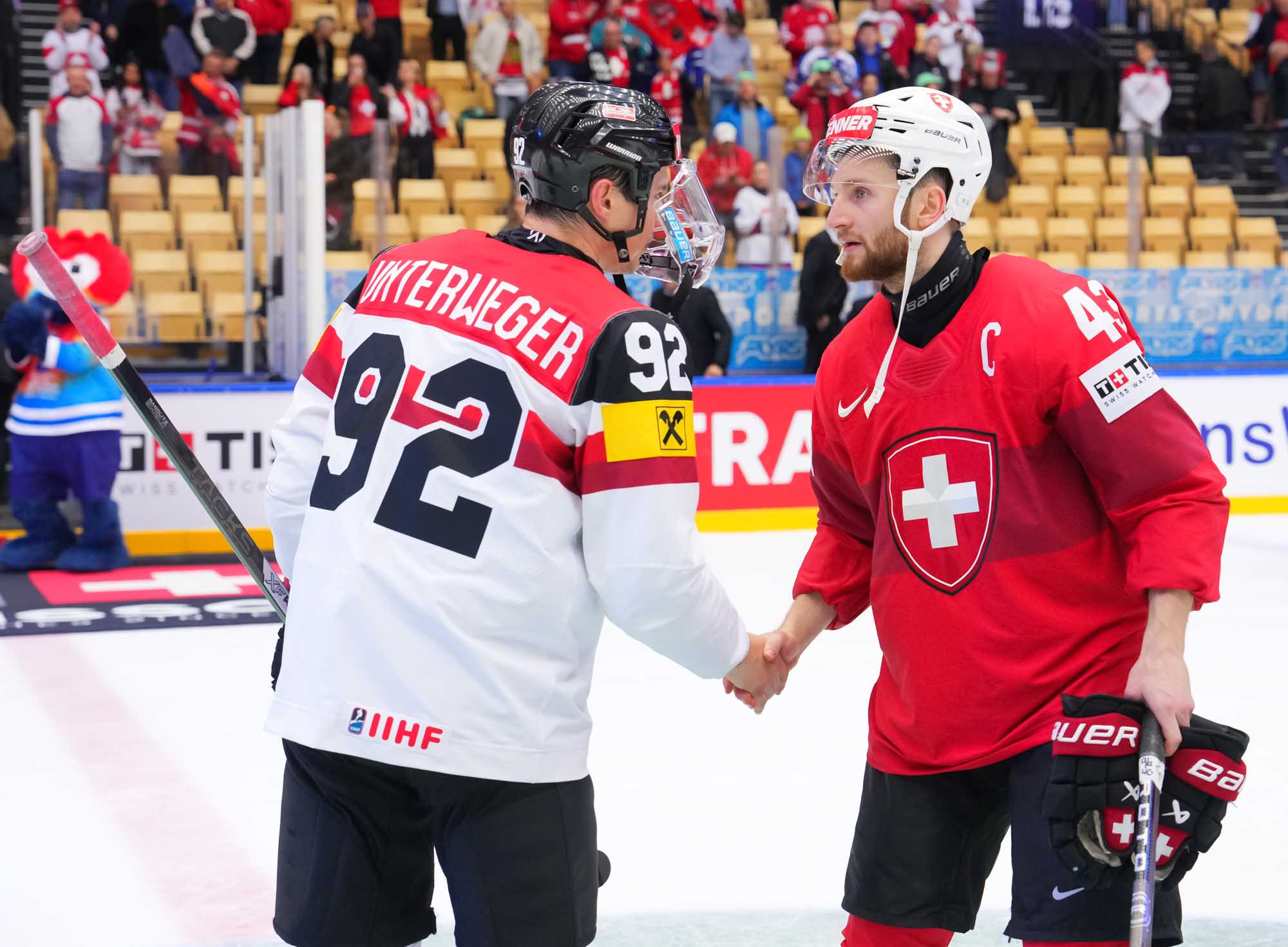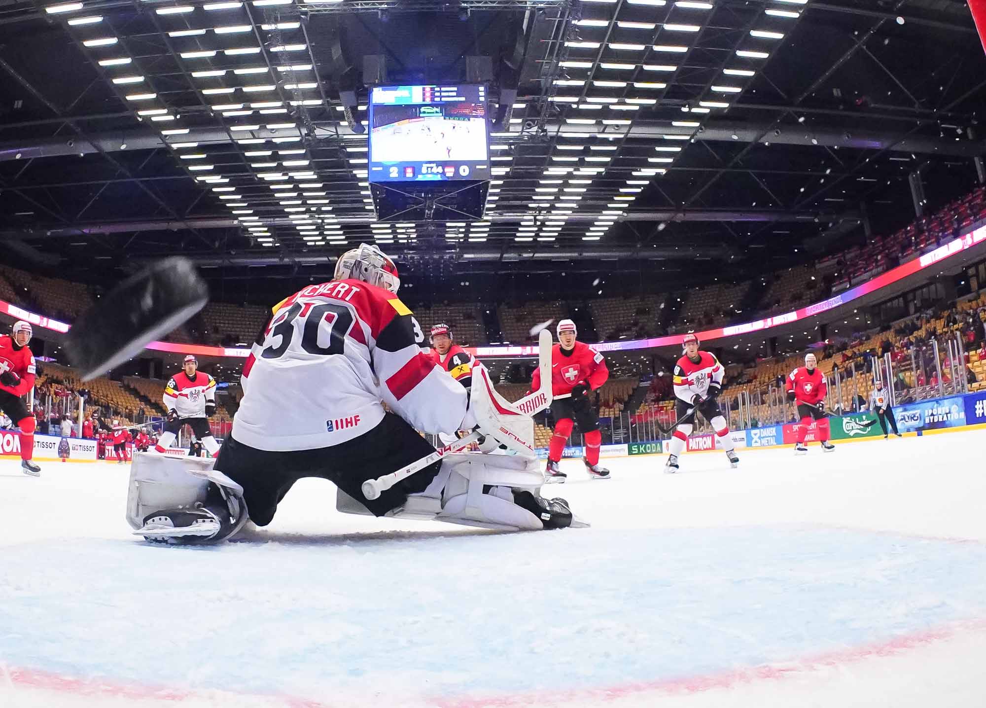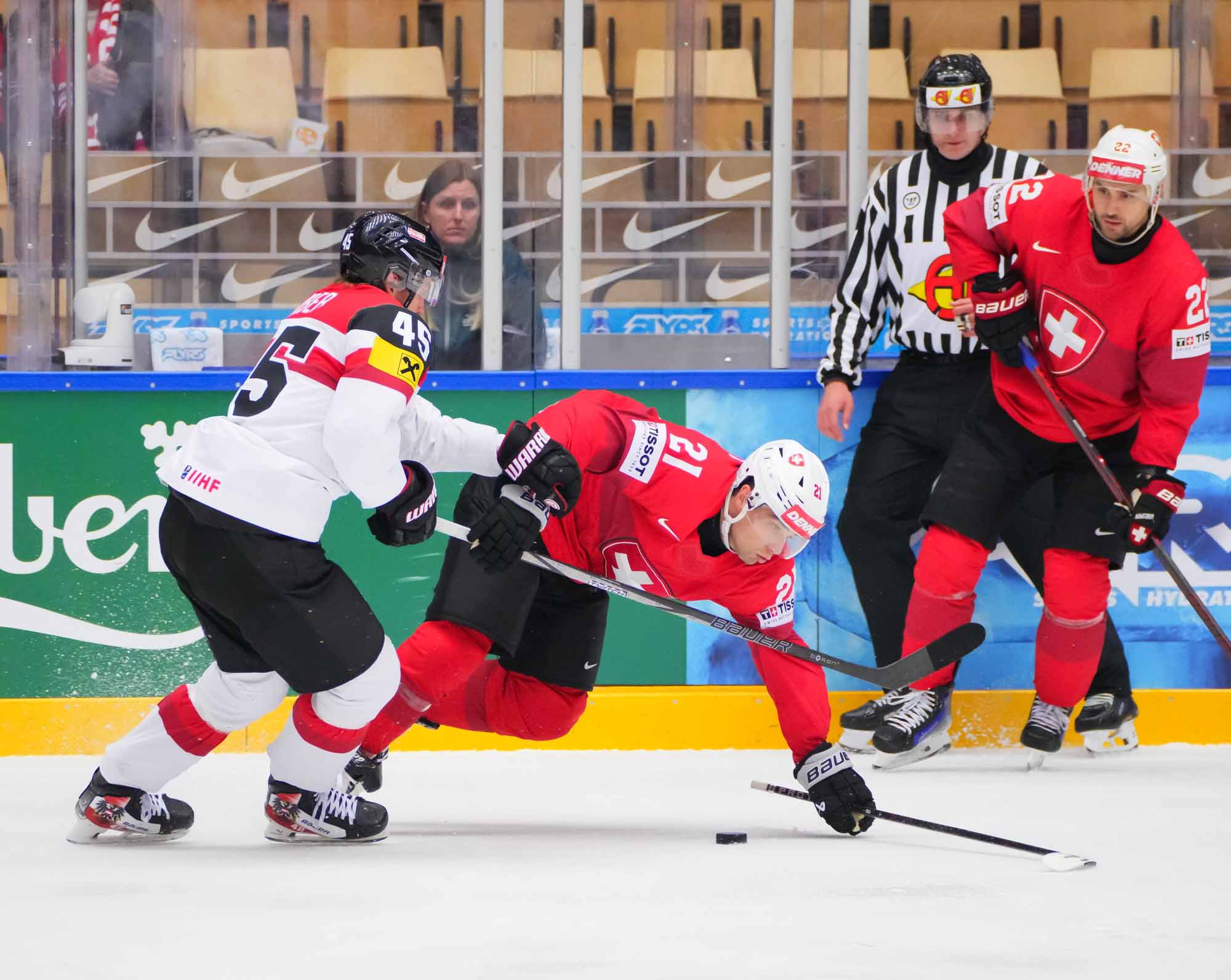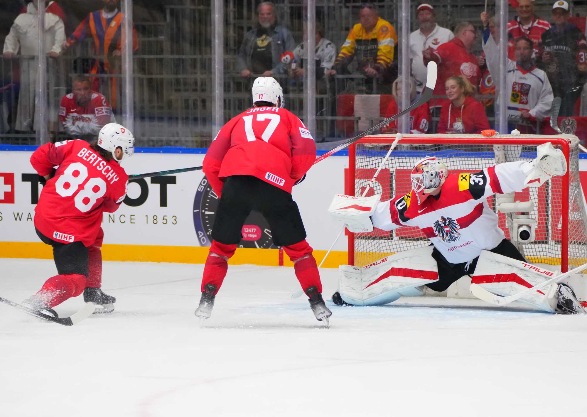 No fuss, no worries. Sparked by three first-period goals, Switzerland downed Austria 6-0 in Thursday’s early quarter-final at Jyske Bank Boxen in Herning. Playing dedicated two-way hockey, the Swiss outshot their underdog neighbours 40-13, and the result was never in doubt.