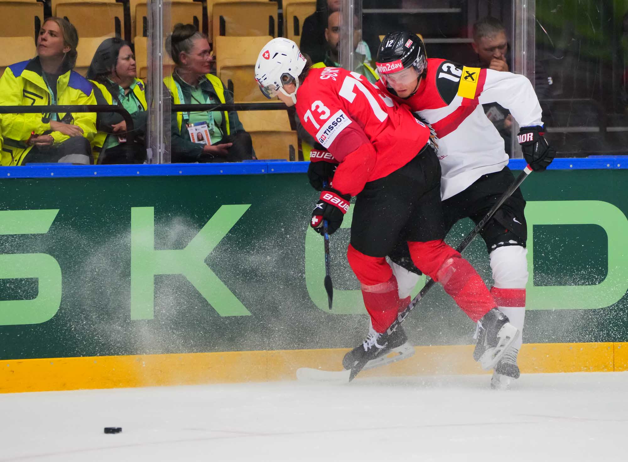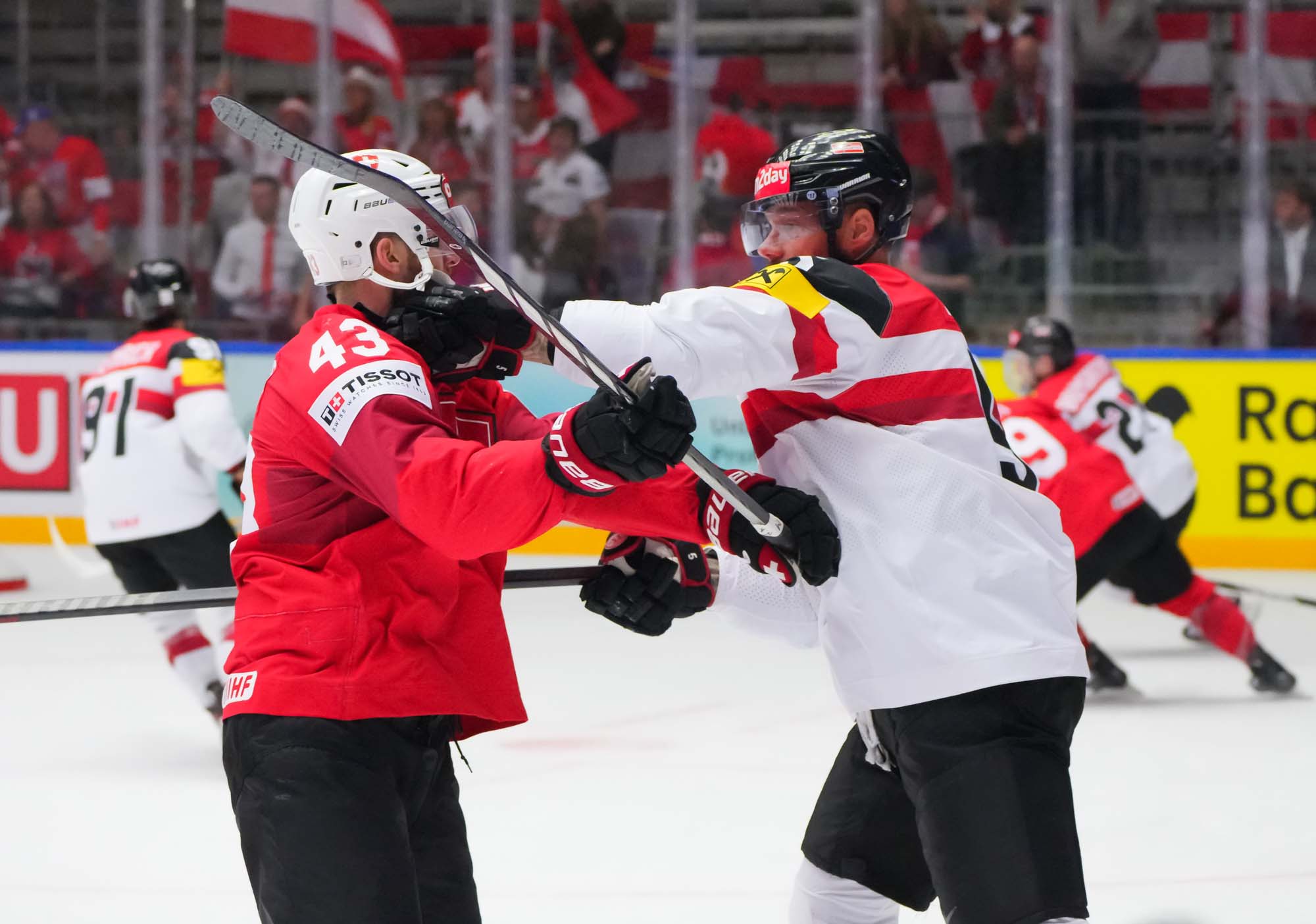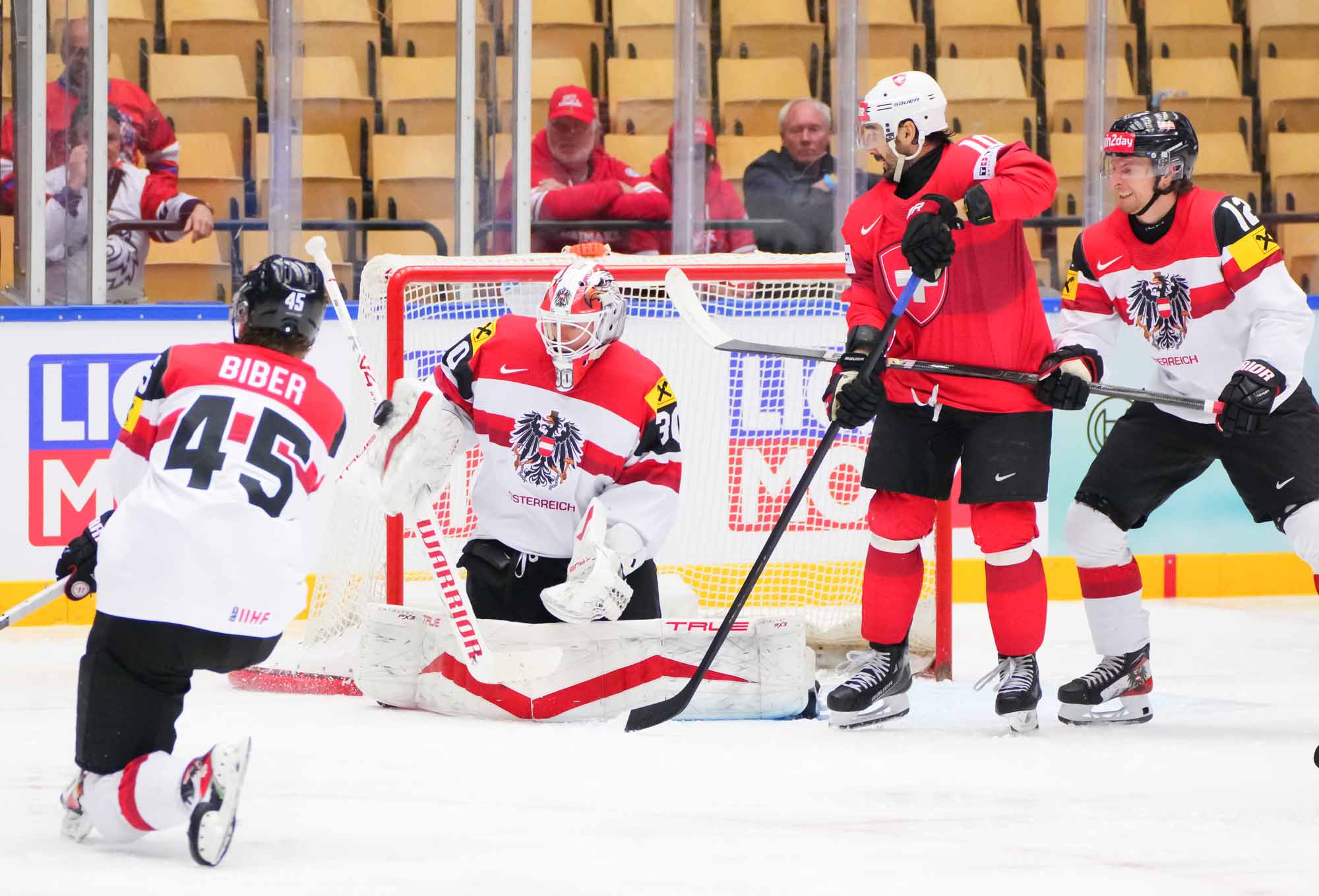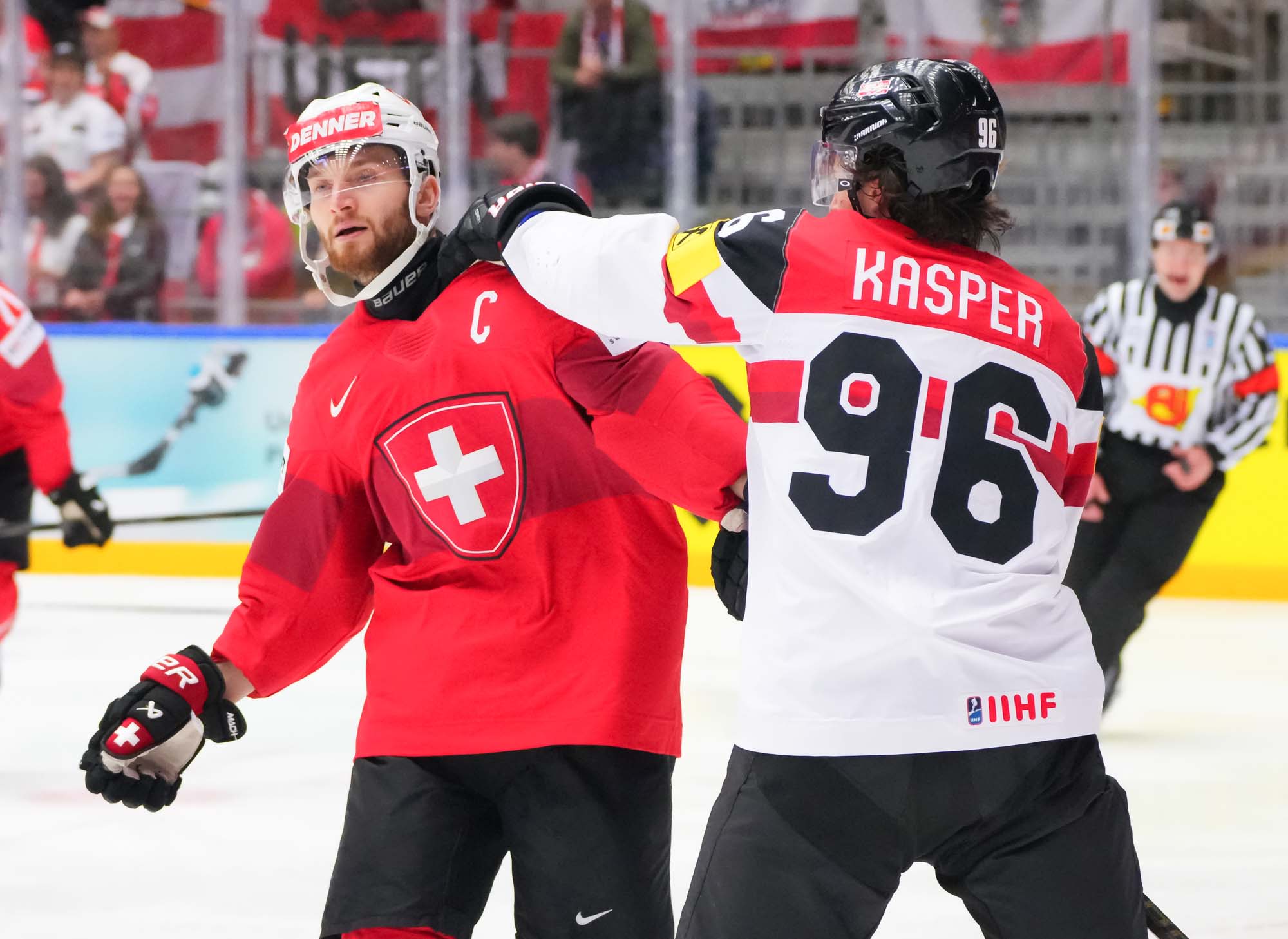 No fuss, no worries. Sparked by three first-period goals, Switzerland downed Austria 6-0 in Thursday’s early quarter-final at Jyske Bank Boxen in Herning. Playing dedicated two-way hockey, the Swiss outshot their underdog neighbours 40-13, and the result was never in doubt.