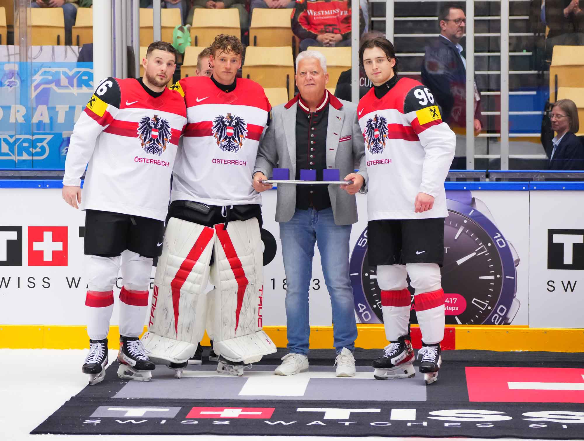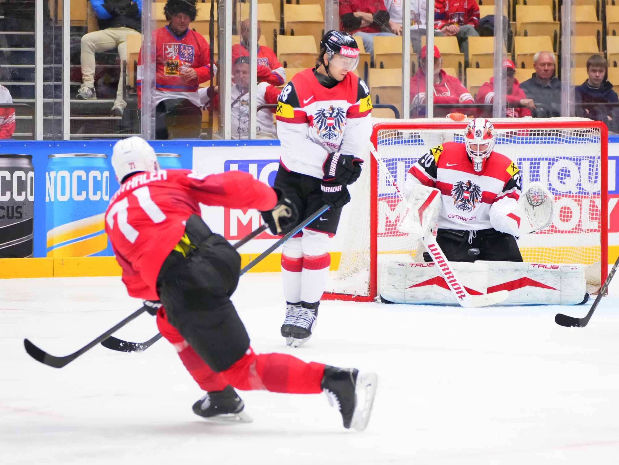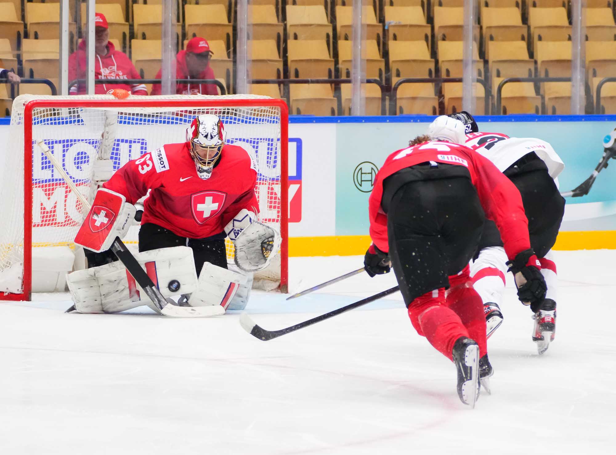 At 3:32 of the second period, Fiala made Austria pay for Rohrer's sin. The 2024 tournament MVP converted a loose puck off the back boards at the side of the net. Just over a minute later, Schmid followed up on Glauser's centre point shot for a 5-0 lead.