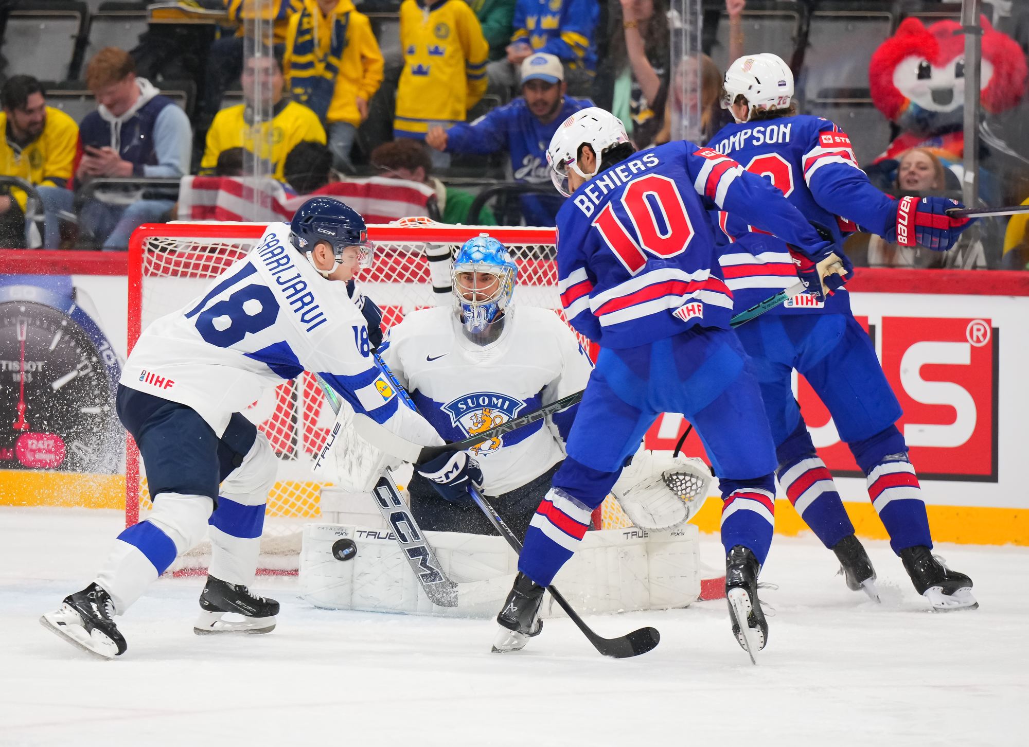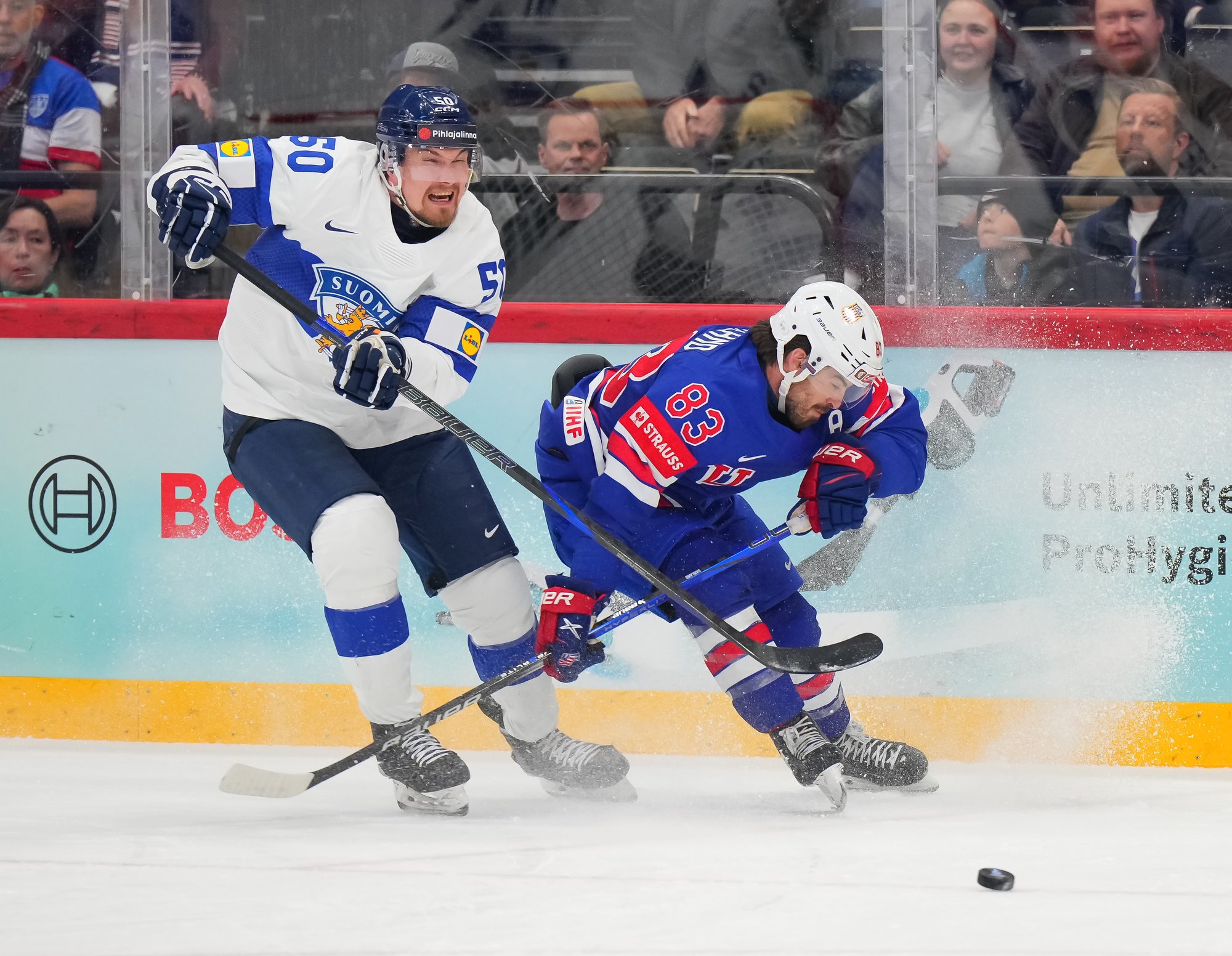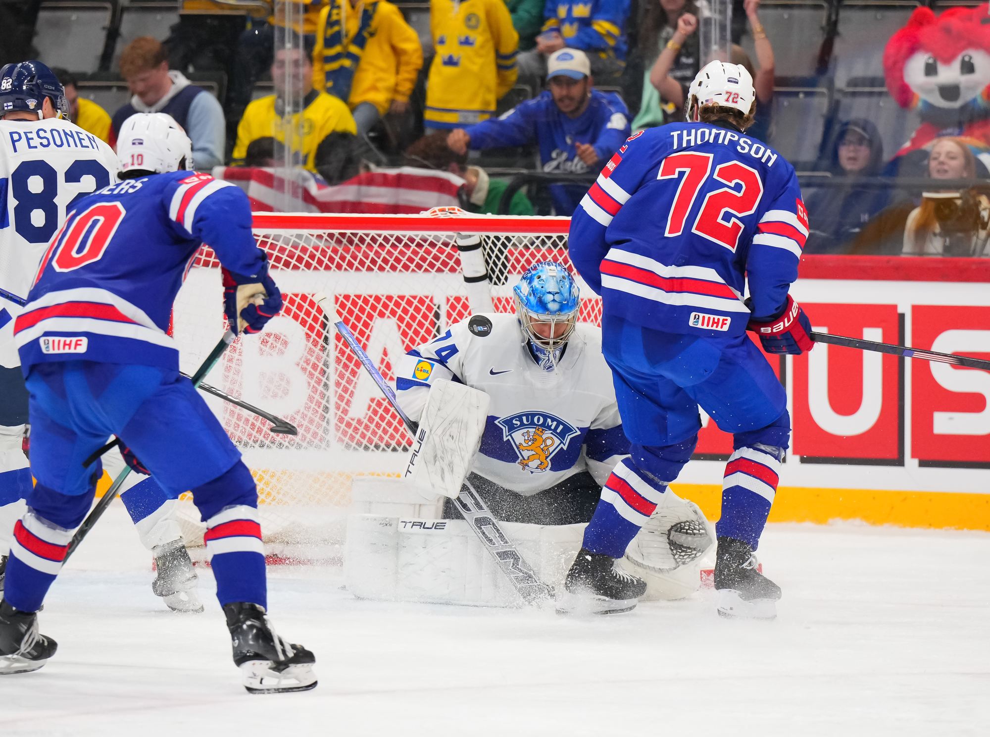 There was still another Finnish penalty coming in the same shift and Team USA continued on power play. Tage Thompson found Garland on his way to the net, and the feisty forward somehow managed to lob the puck into the net at 16:04, his second of the night.