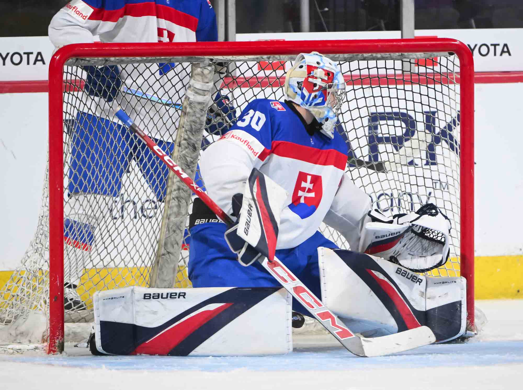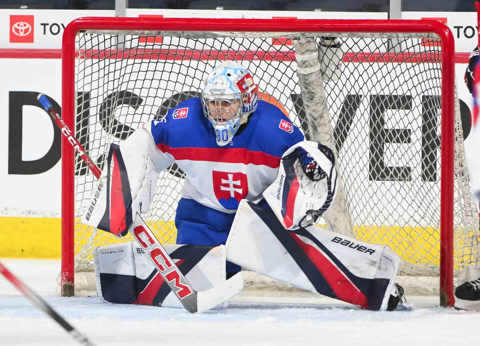 Just 56 seconds later, it was 3-0 on a weird play. The puck came in front of the Slovak goal and took a ridiculous path to the red line. It bounced off the stick of goalie Michal Pradel, then off the stick of Canadian Jackson Smith. From there it bobbled high, hit the crossbar, bounced off Pradel’s back, and landed over the goal line.