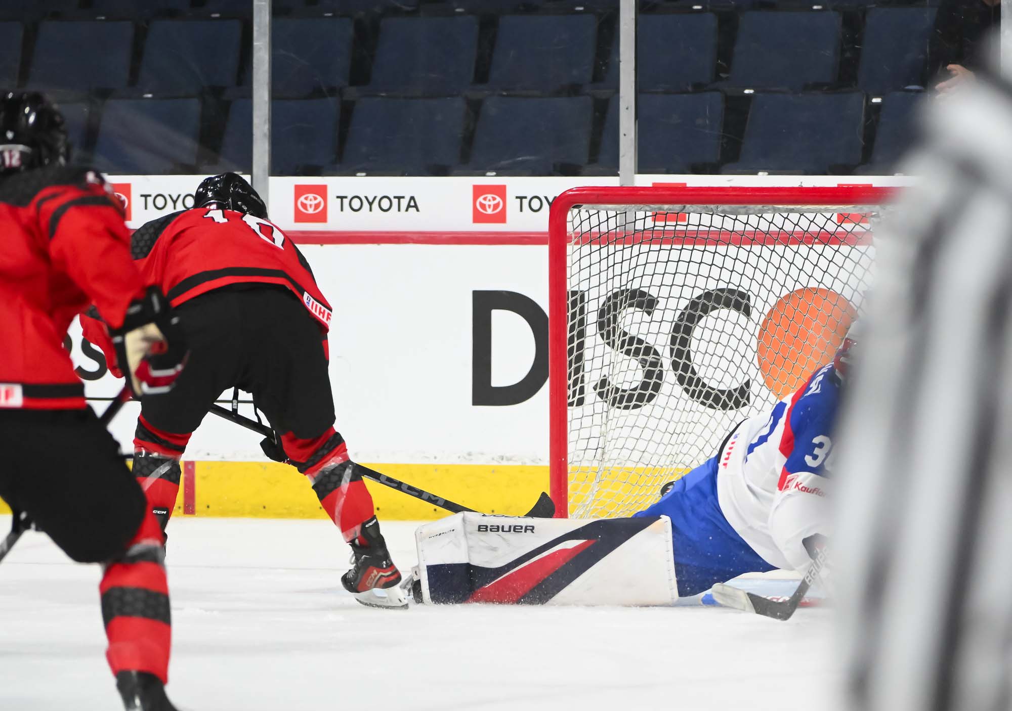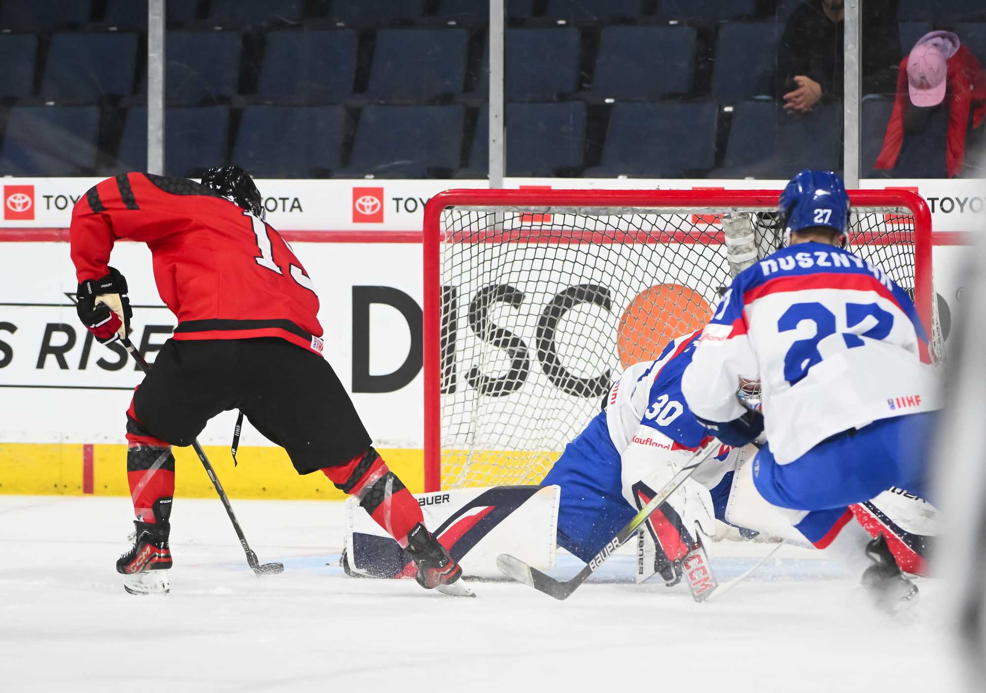 Slovakia got another back early in the third on a nice solo effort by Tomas Chrenko, but Quinn Beauchesne's long shot restored the five-goal bulge just 43 seconds later. Thirty seconds later, Cootes drilled a wrister from the slot to make it 8-2, and less than two minutes later he converted from the crease to add to the goalscoring.