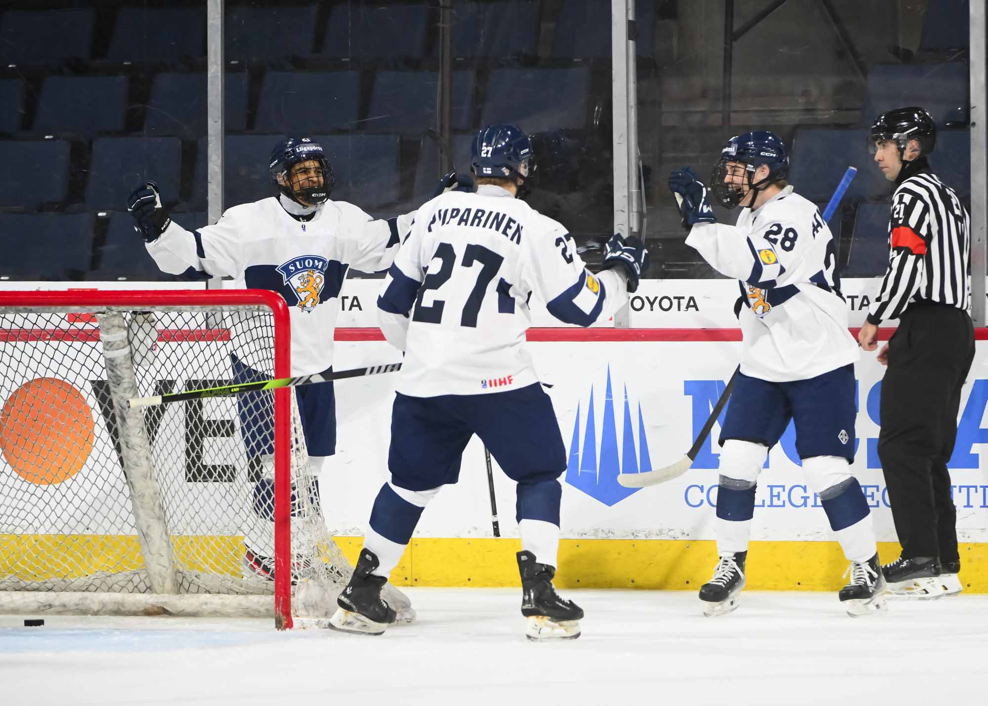 Finland upped their lead to 7-2 at 14:22 when Jere Somervuori finished off a passing play with Vanninen. Then, with just 37.6 seconds left, Rasmus Kamarainen tipped in a Ossi Sippola point shot to make it 8-2.