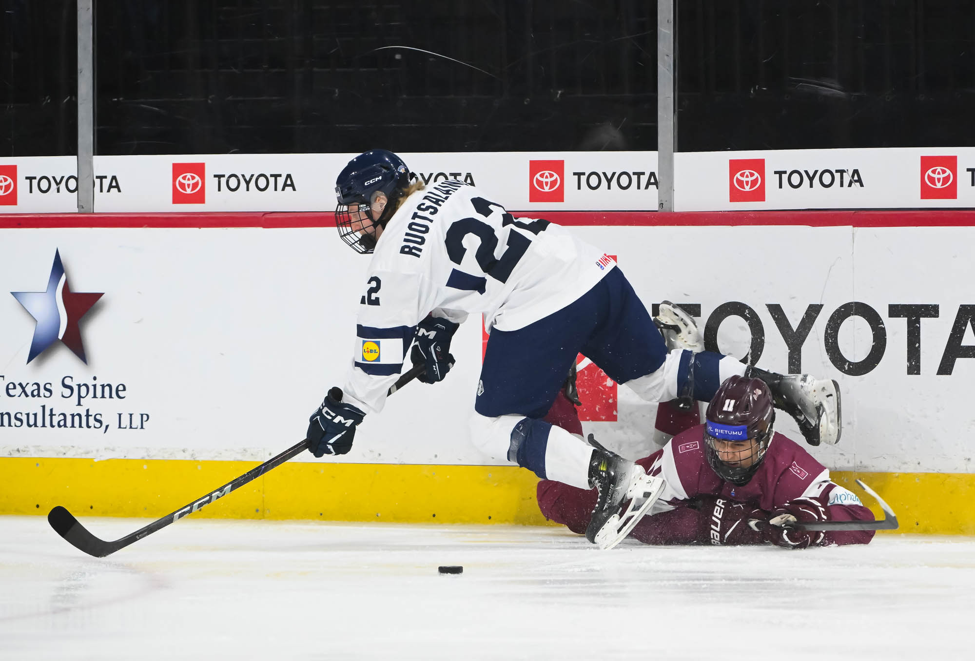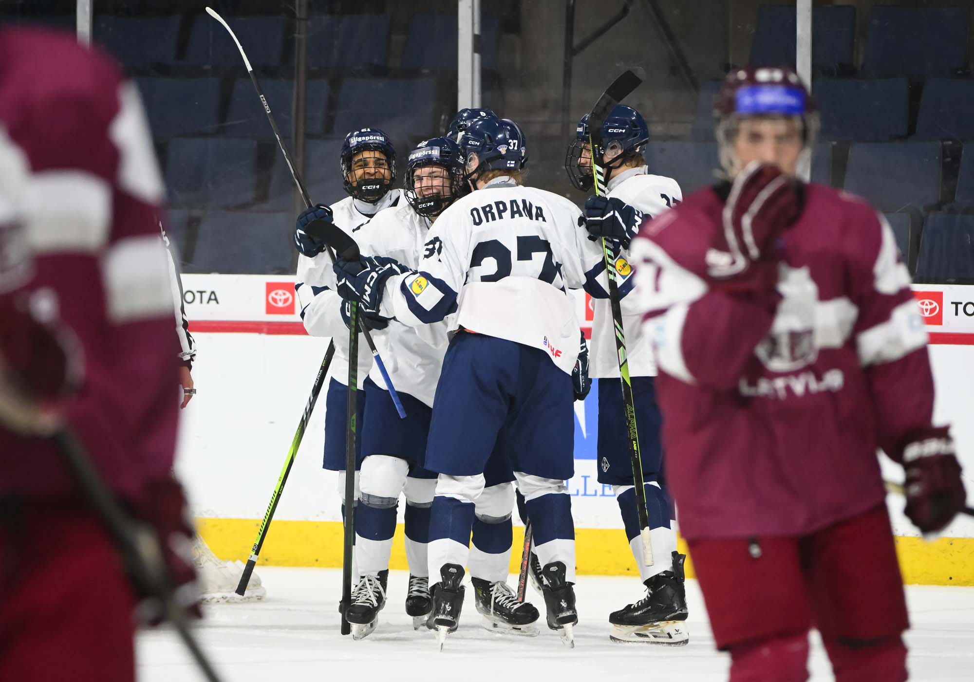 Finland burst out to a 6-2 lead after one period and coasted to a 10-2 win over Latvia this afternoon in Allen, Texas. The win shoots the Finns into first place over idle Canada with a 2-0-1-0 record for seven points. Latvia drops to 0-1-0-2 and remains in fourth spot.