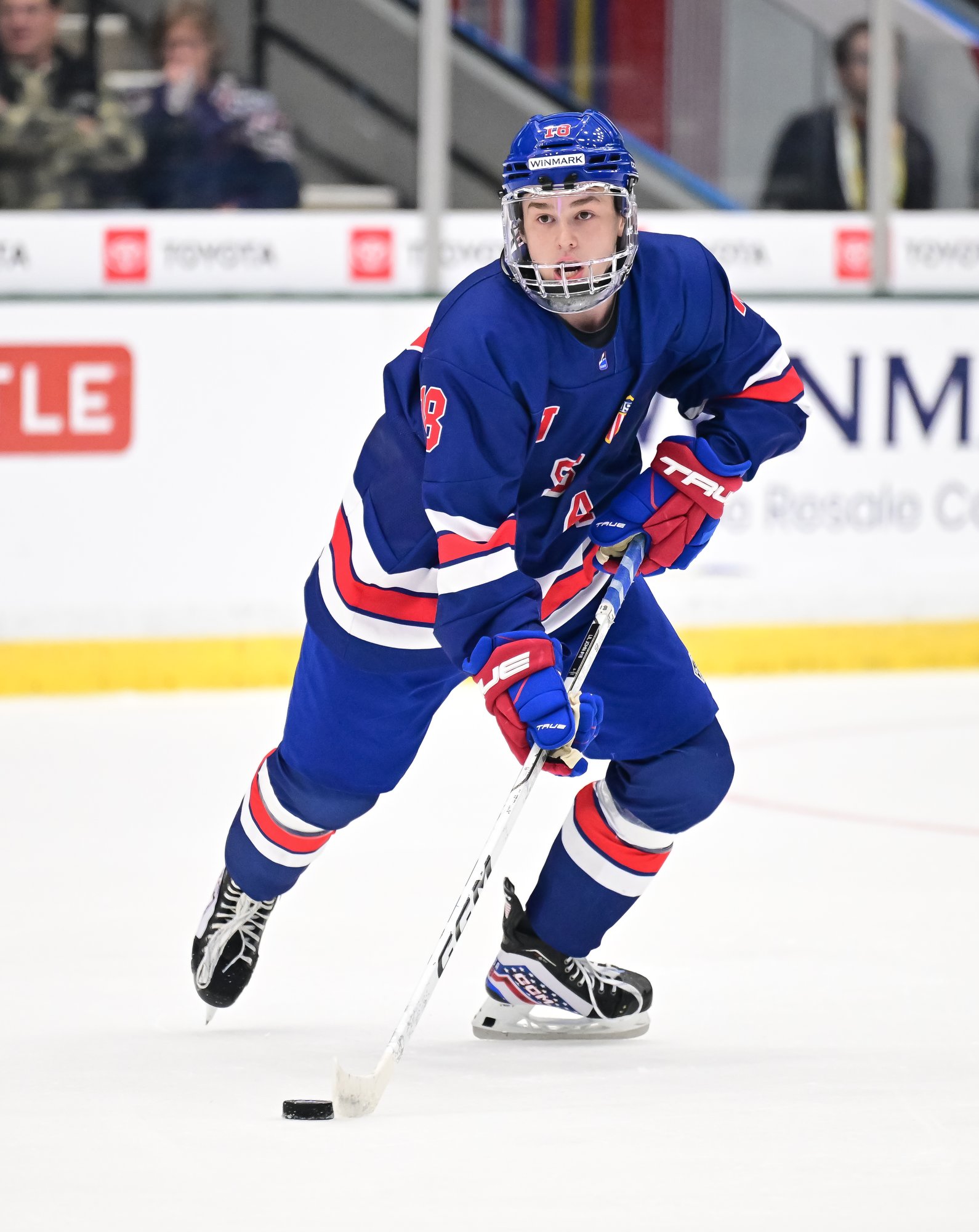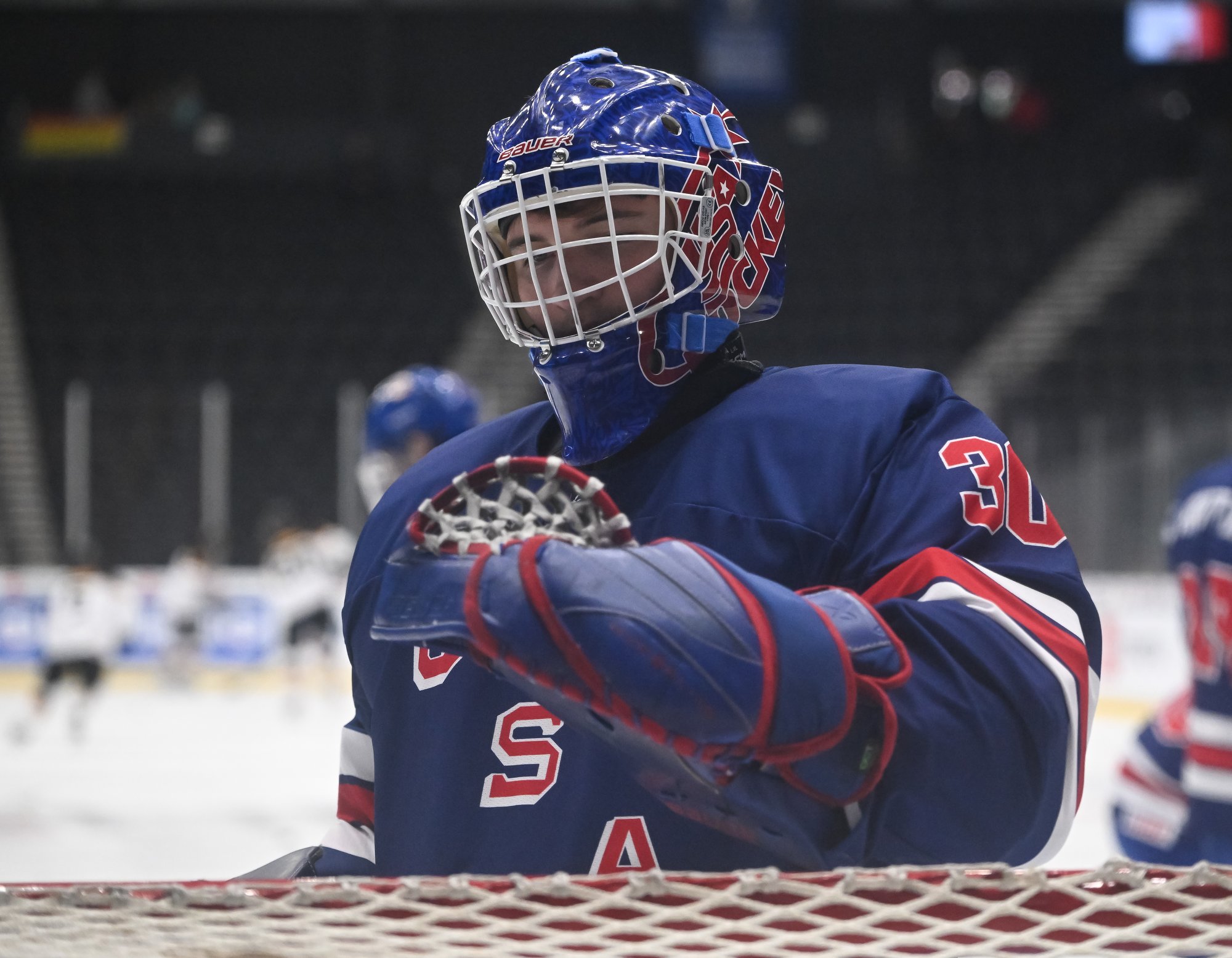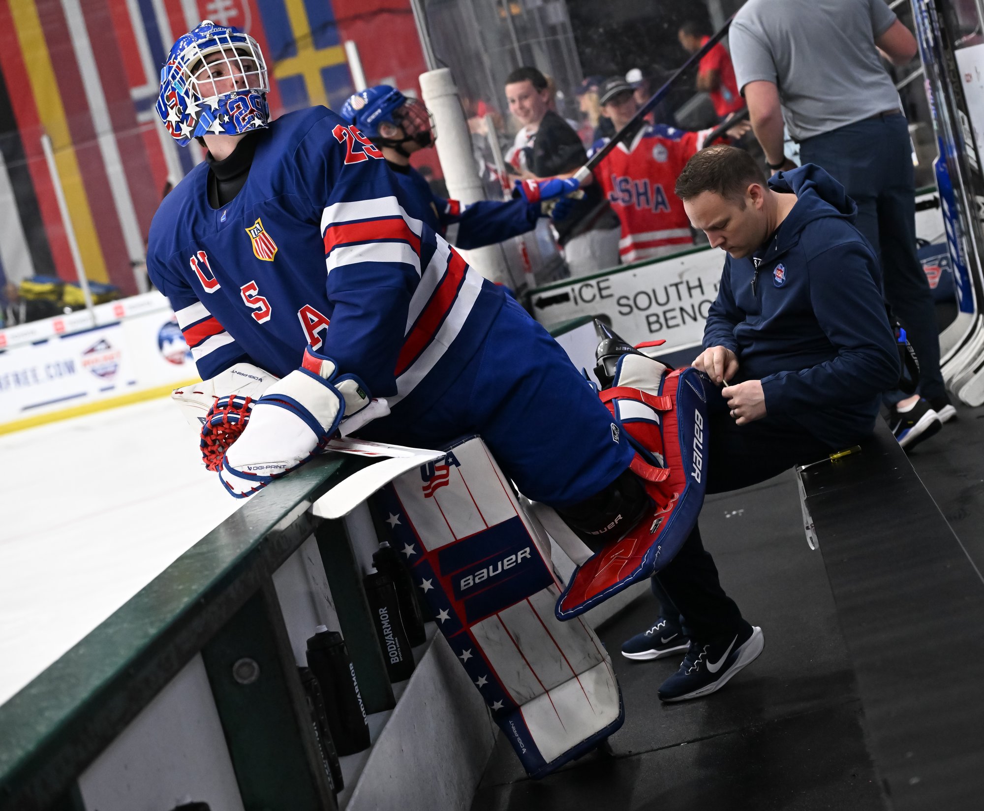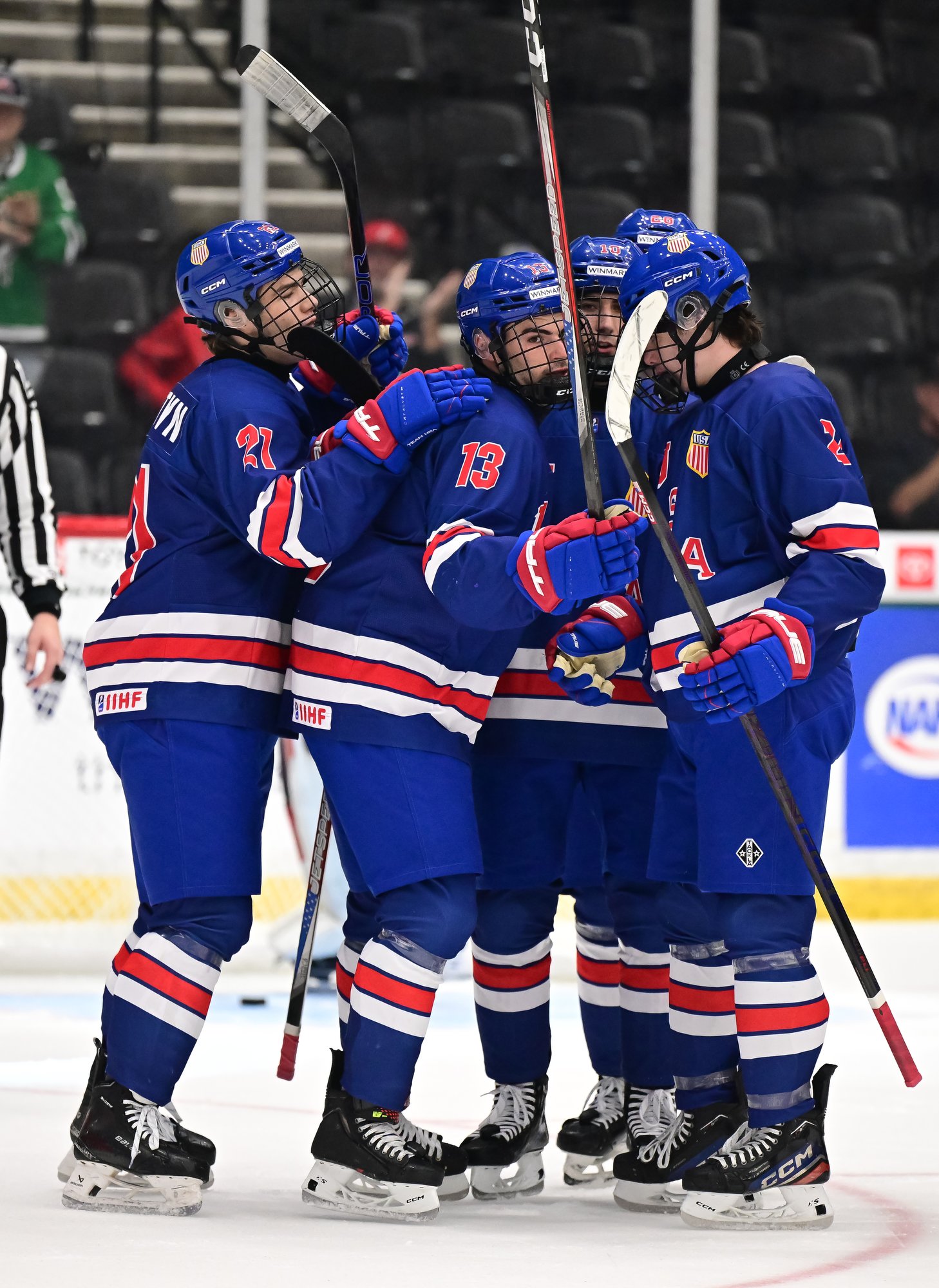 The Americans finally settled down and played NDTP-quality hockey, scoring twice in 70 seconds to take their first lead. Will Horcoff’s high shot beat Kaiser, who went down early, at 15:22, and then Gallant converted a short-handed breakaway to make it 4-3 for the U.S.