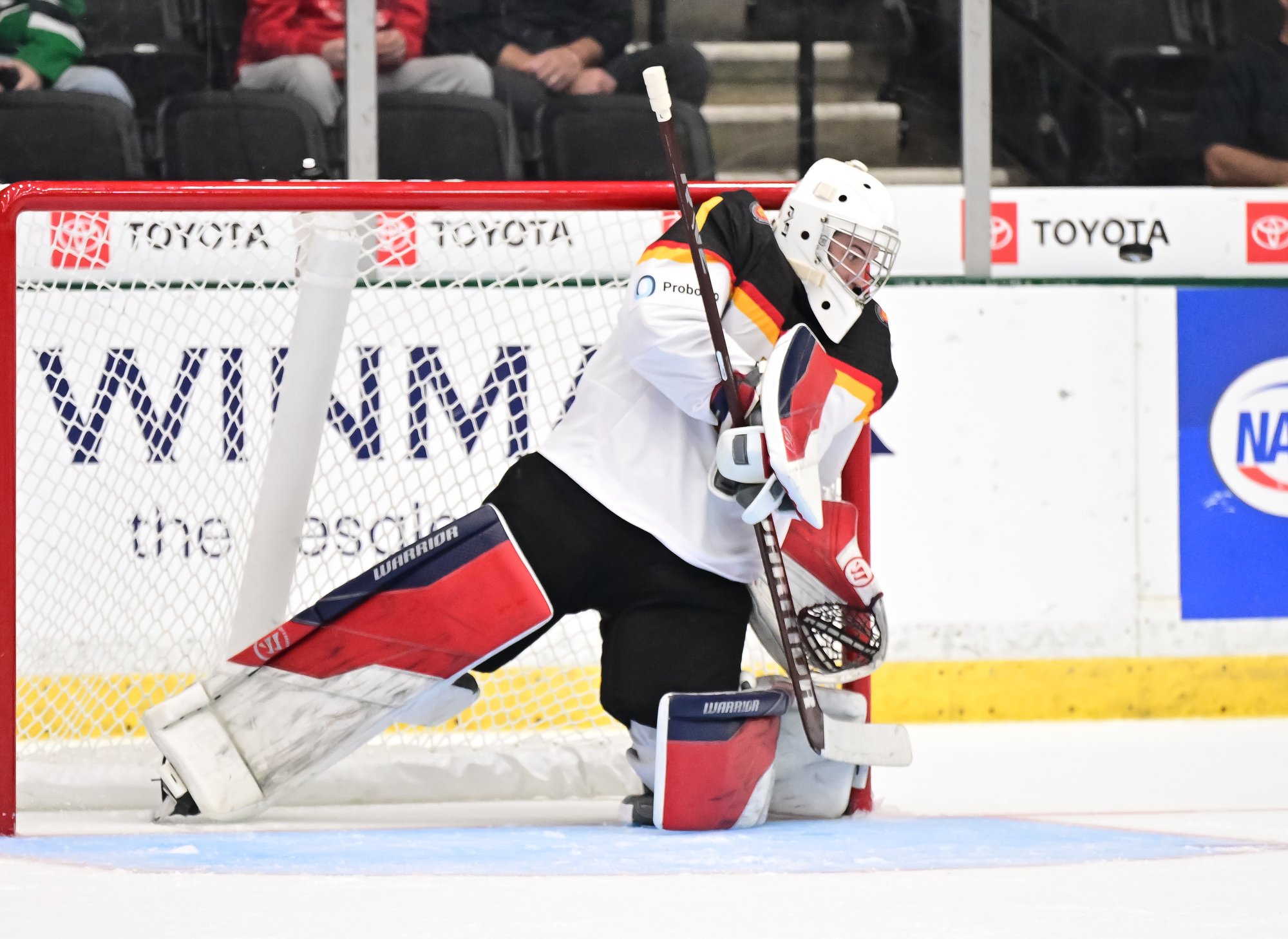 The second period repeated the first. Elias Schnieder gave Germany an early 2-1 lead. He walked into the slot unbothered and snapped a shot under the glove of Quinlan at 3:16 for a 2-1 Germany lead. But two minutes later, the hosts tied the game again. This time it was Mikey Berchild who beat Kaiser at 5:23 on a power play.