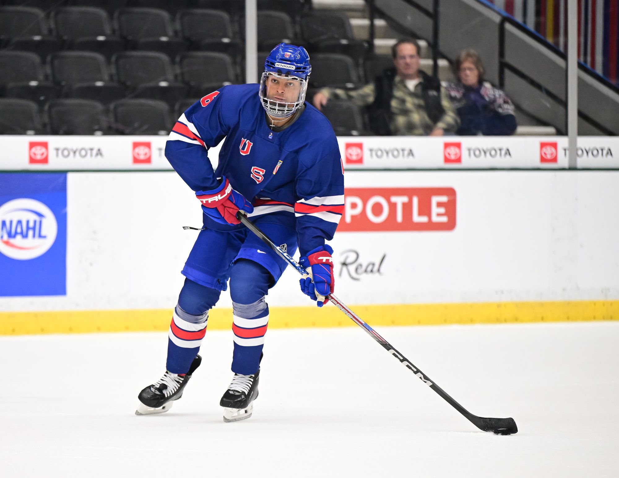 Impressive as that goal was, it only served to poke the bear. The Americans dominated for several minutes until they tied the game. Captain Asher Barnett claimed a rebound in front and wired a high shot over Aaron Kaiser at 11:03.