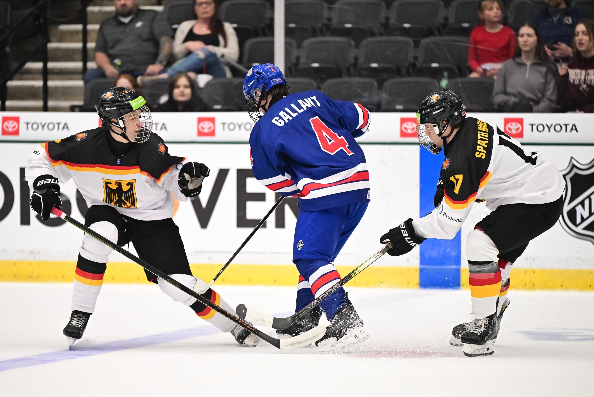 The third was tense and even, the Germans keeping pace and thwarting many American rushes while creating some chances of their own. But with Kaiser on the bench and the Germans pressing for the tying goal, Gallant hit the empty net with 2.2 seconds remaining to seal the victory.