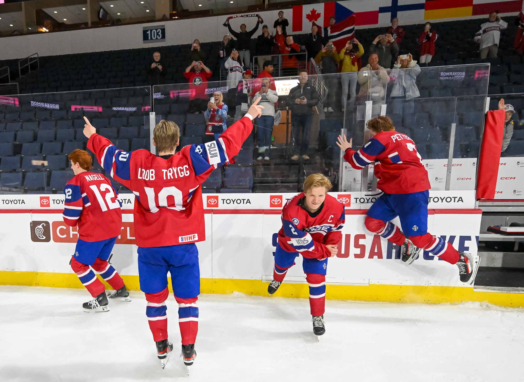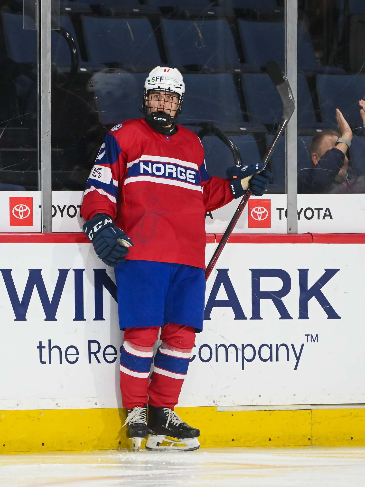 "This was a team win," said Niklas Aaram-Olsen, who led the Norwegian offence with two goals and two assists. "We worked very hard all game and didn’t stop. Hell of a game from us and I’m really happy to stay in the top division."