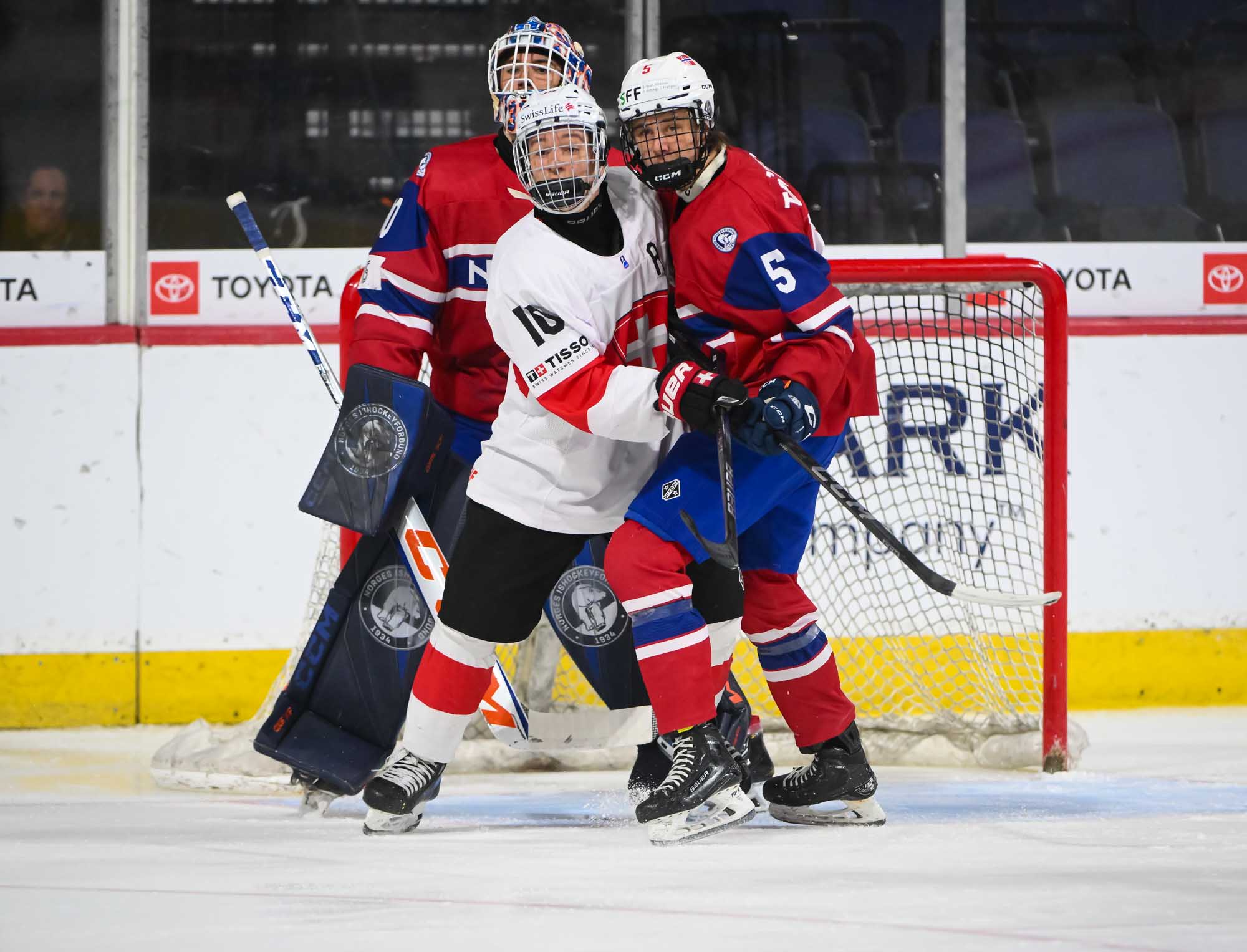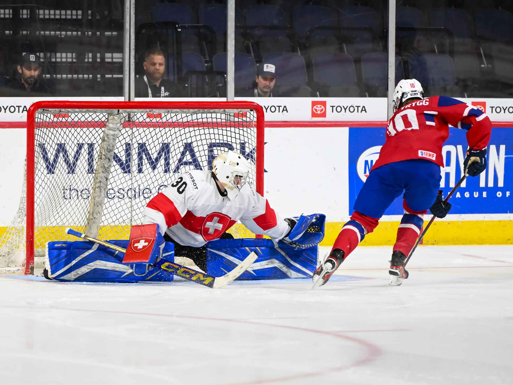 Switzerland would cut into the lead at 17:44 as Noah Franzina lifted the puck from the slot over a sprawling Timraz-Westin.
