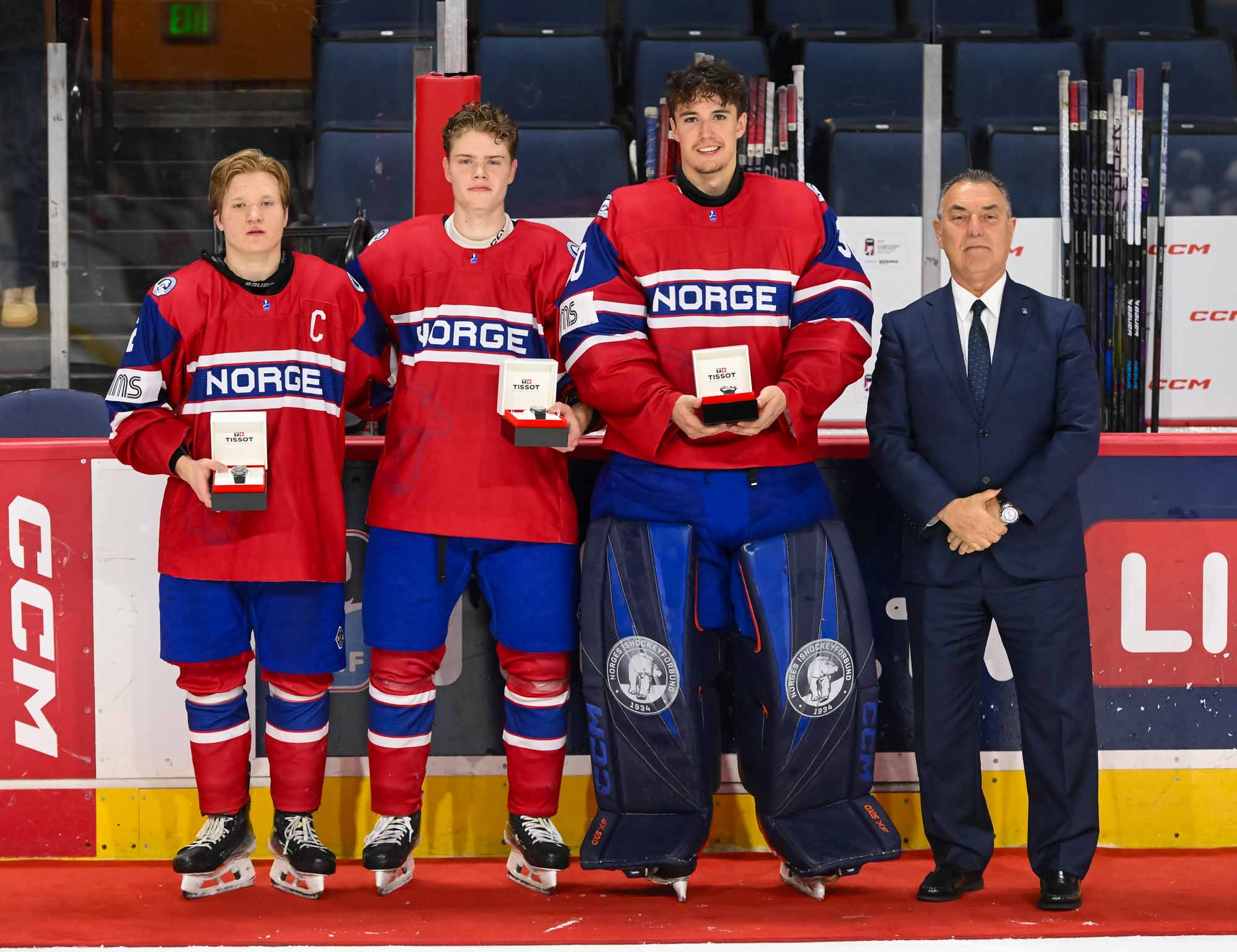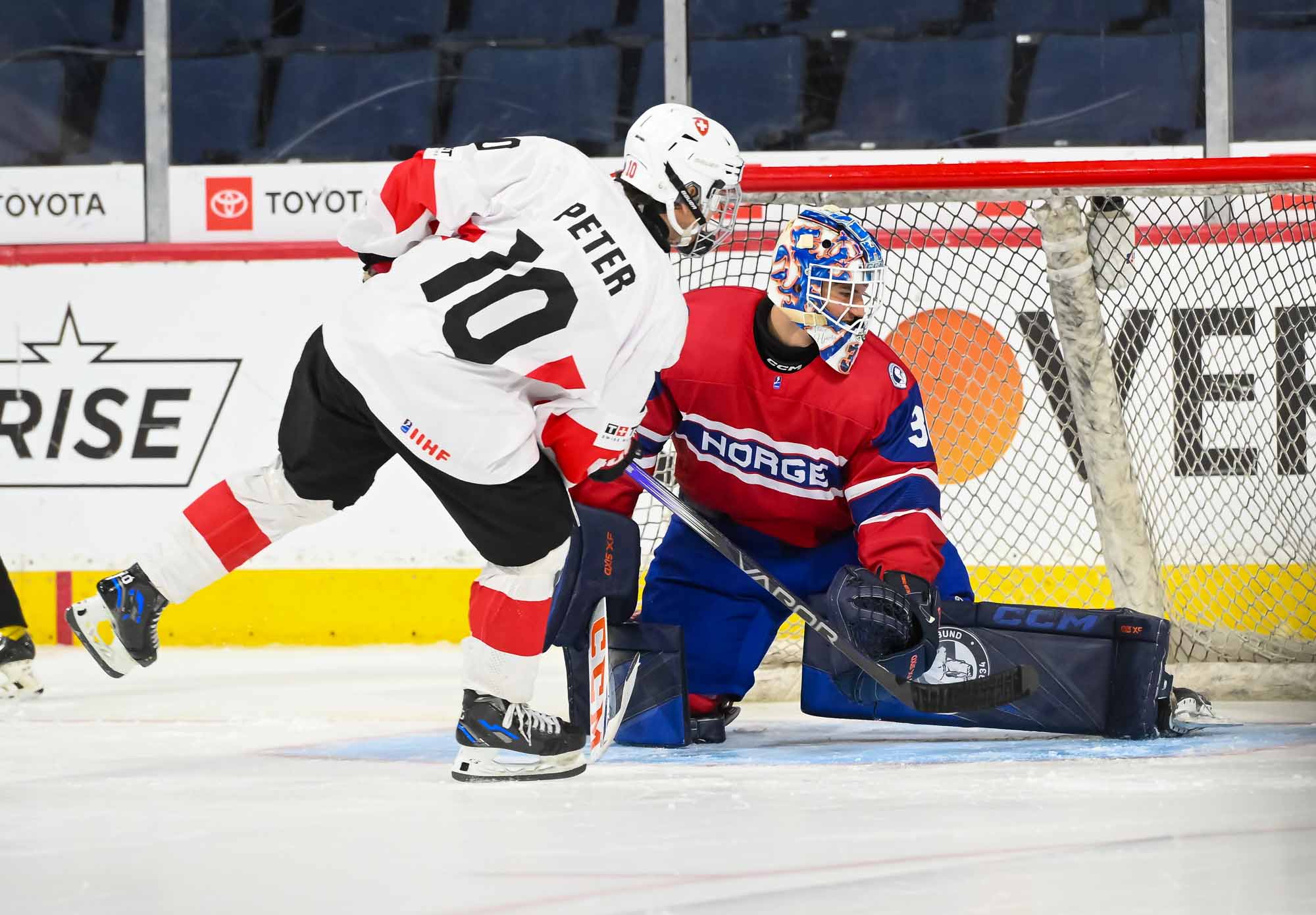 Linys Trygg had ice in his veins during a penalty shot shootout, scoring twice to give Norway a 5-4 win over Switzerland in the relegation game of the 2025 IIHF World Men’s Under-18 Championship.