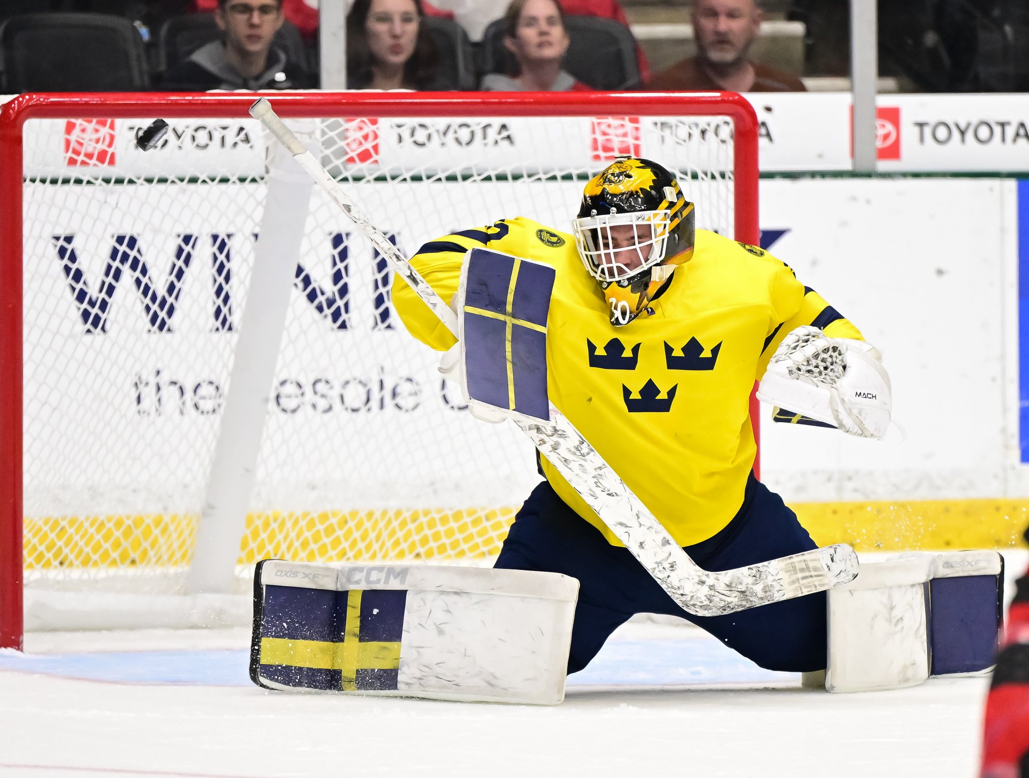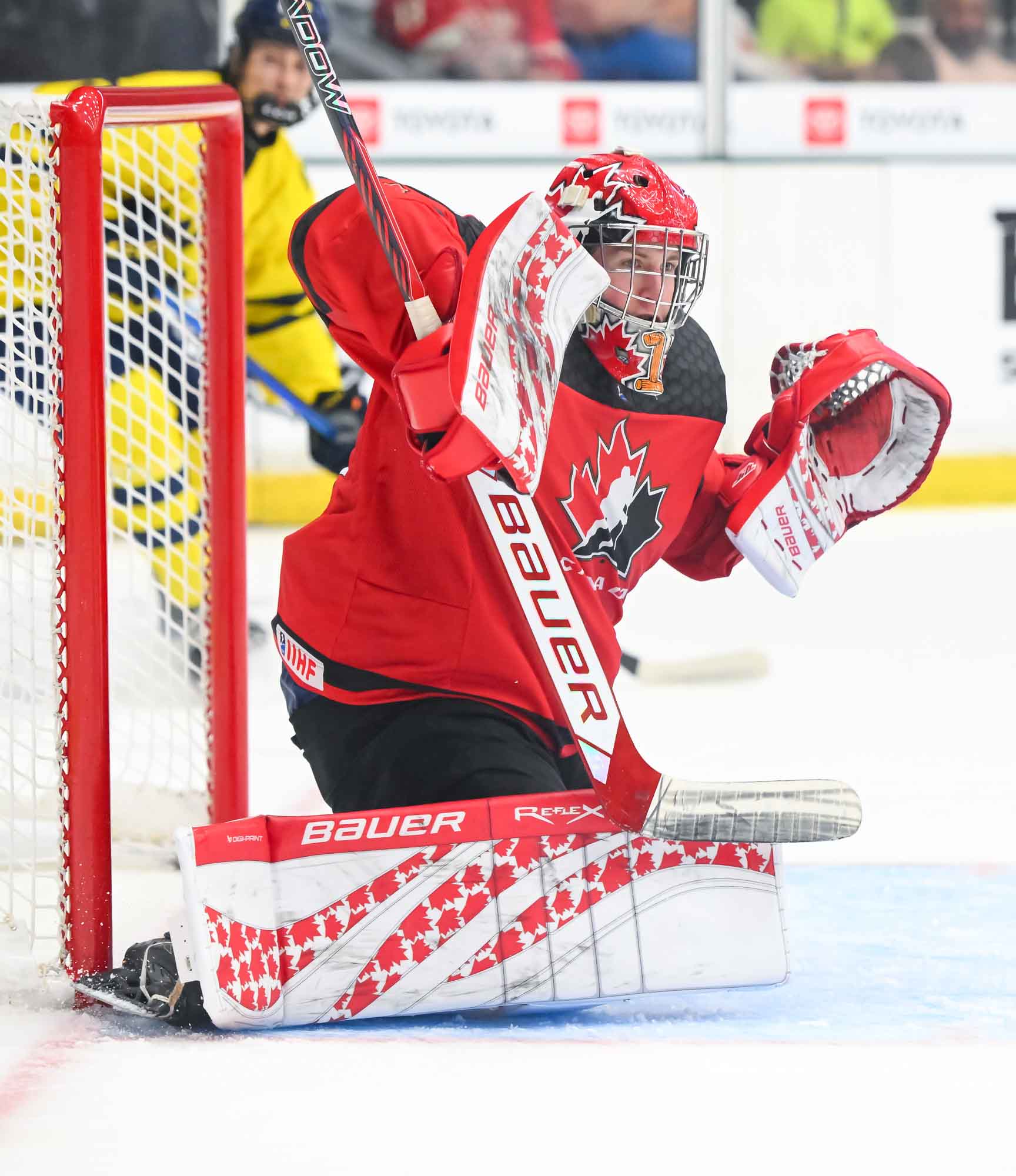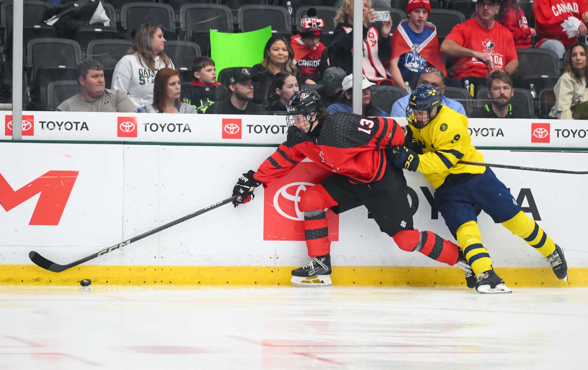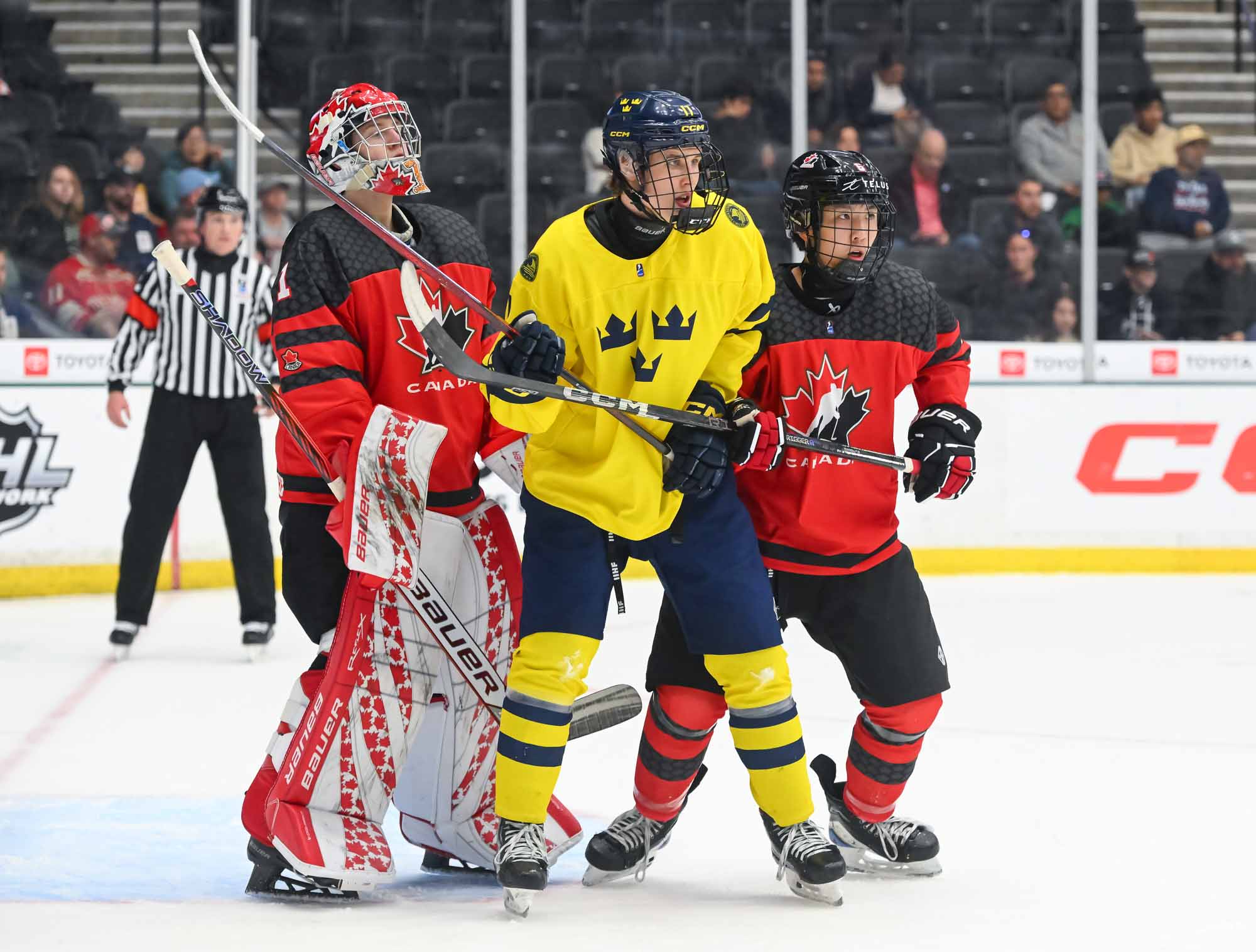 Canada jumped into an early 2-0 lead and relied on Ivankovic in goal to do his usual thing—stop pucks. The game was barely four minutes old when Milton Gastrin had the puck slide off his stick in his own end. It rolled right to defender Xavier Villeneuve, and his long shot beat Love Harenstam under the glove. It was the 11th goal by blueliners for Canada in the tournament (compared to two for Sweden).
