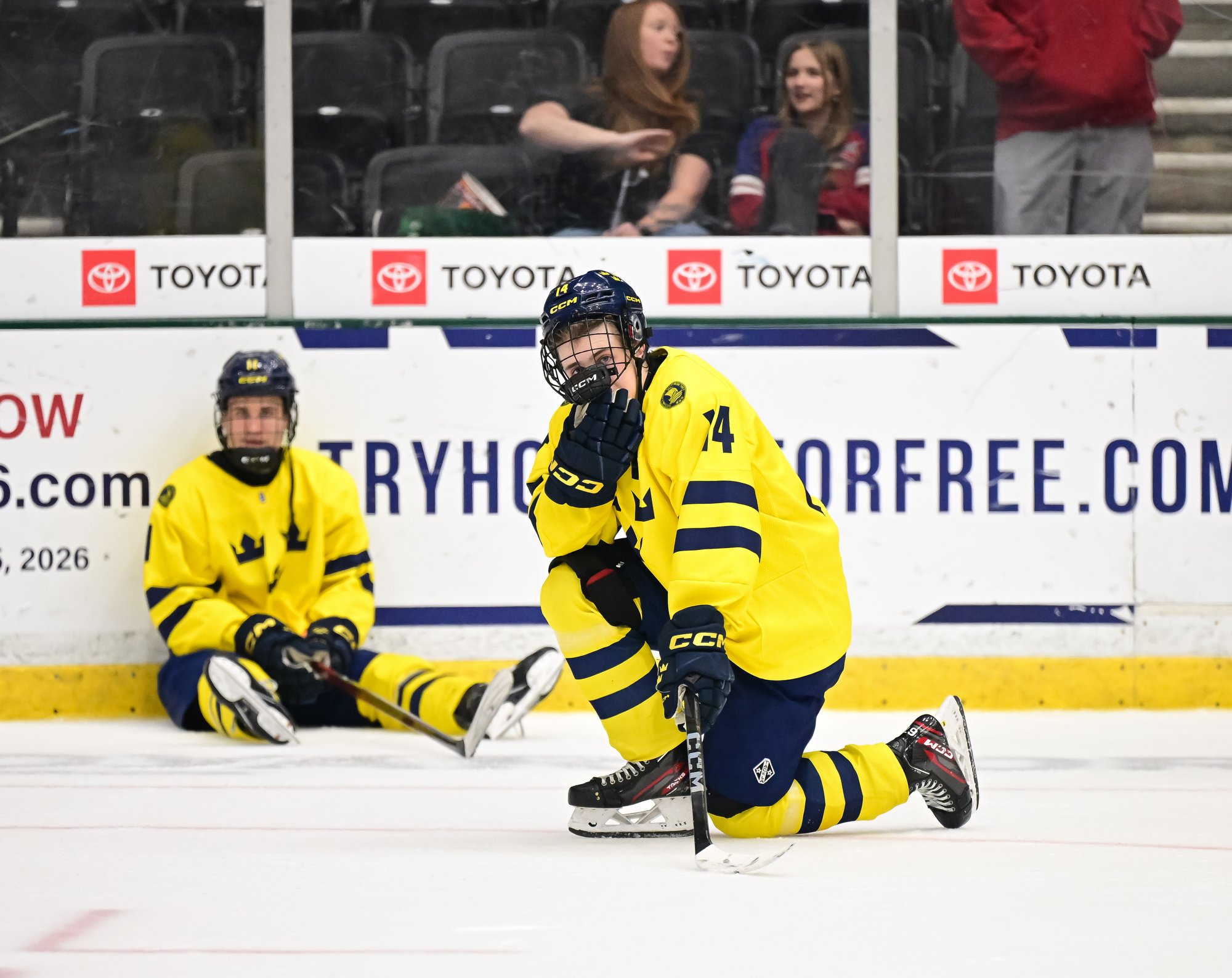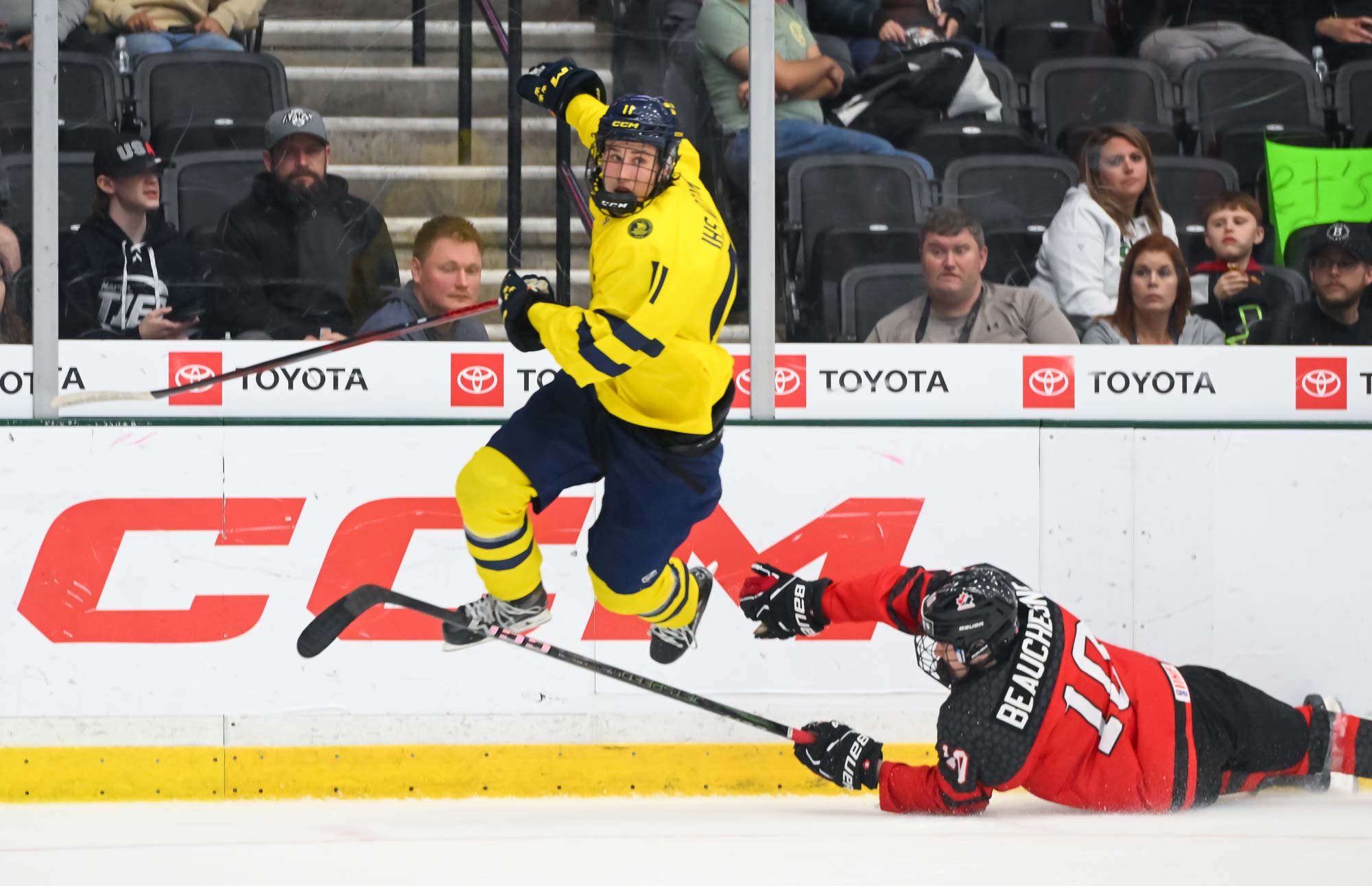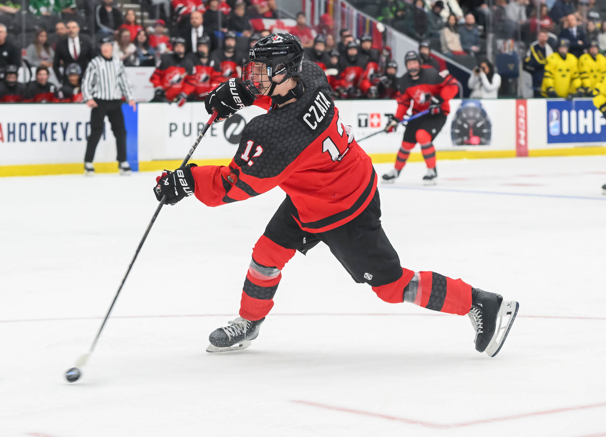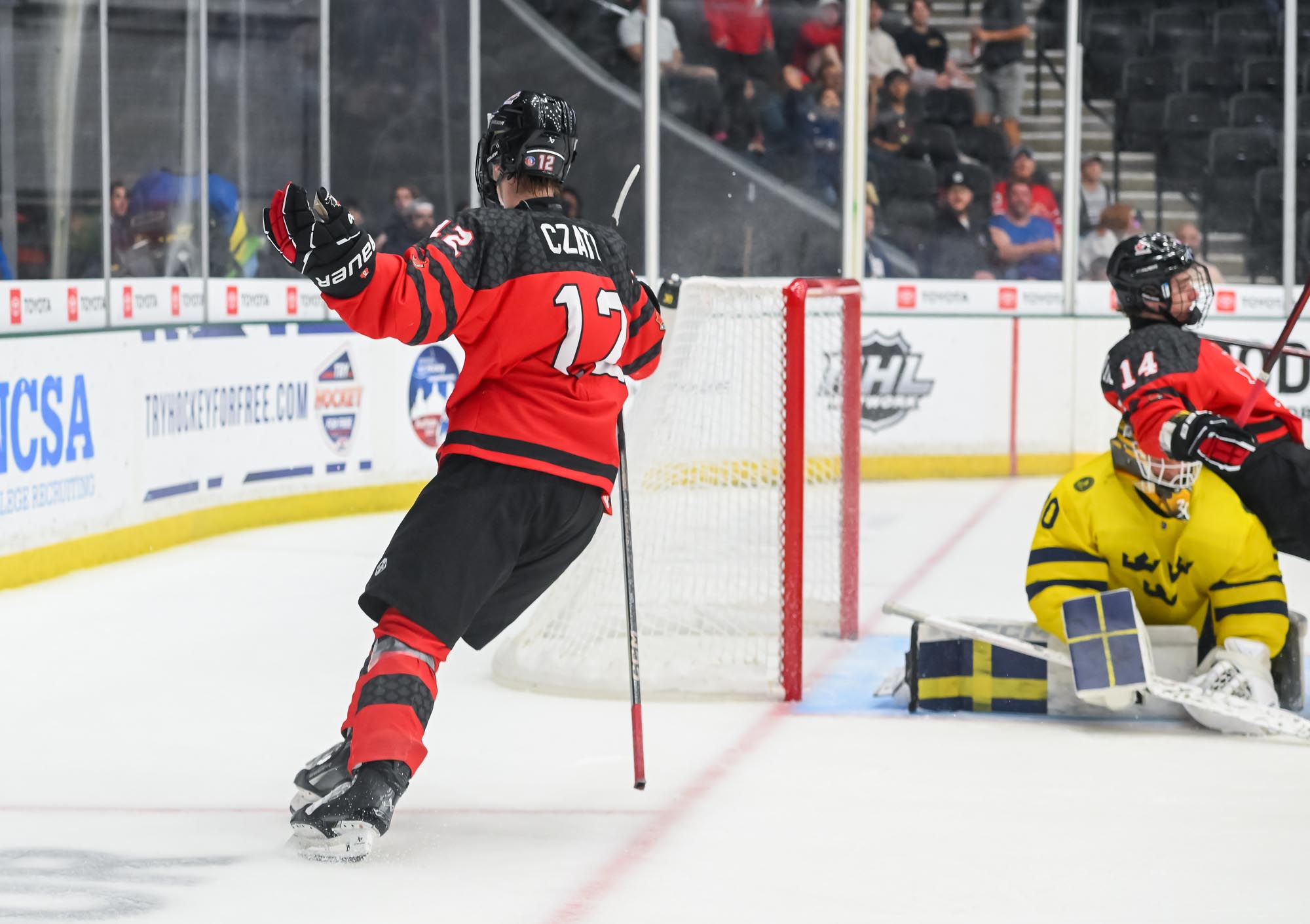 Canada added to their lead early in the second on a goal similar to Villeneuve’s. Jackson Smith's point shot went all the way on a screen that Harenstam couldn’t see around. They made it 4-0 at 9:35 after capitalizing on a turnover at the Canada blue line. Ethan Czata skated down the left side on a two-on-one before blasting a shot past Harenstam’s blocker.