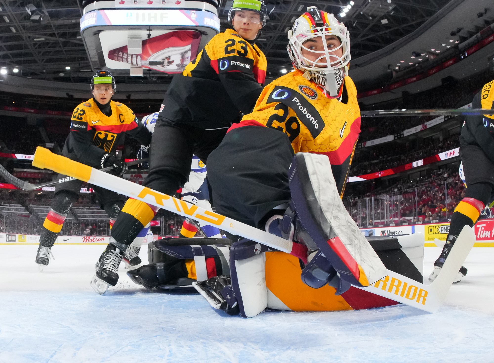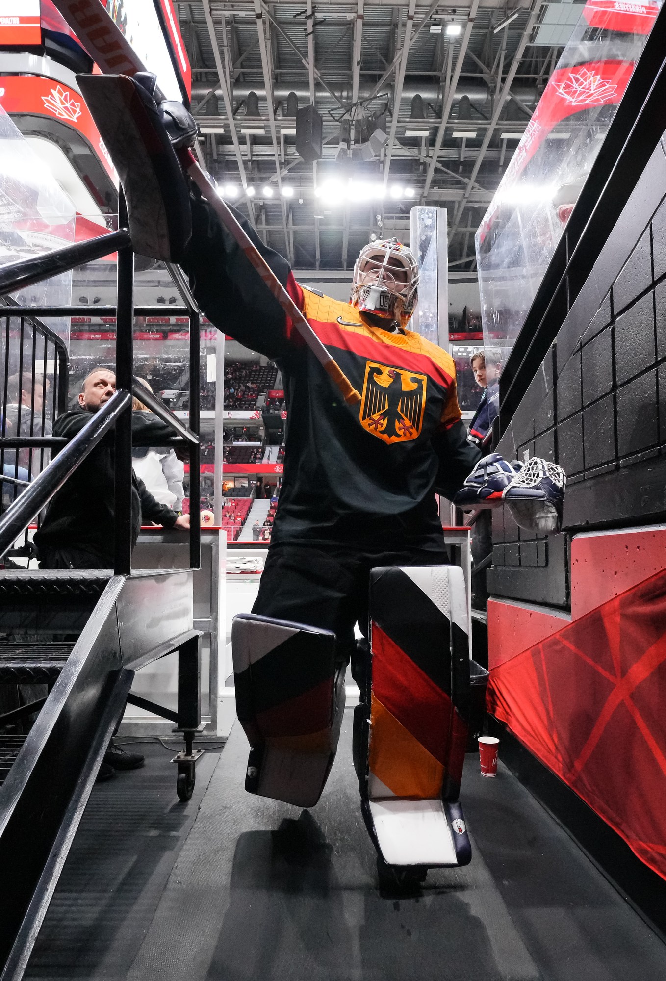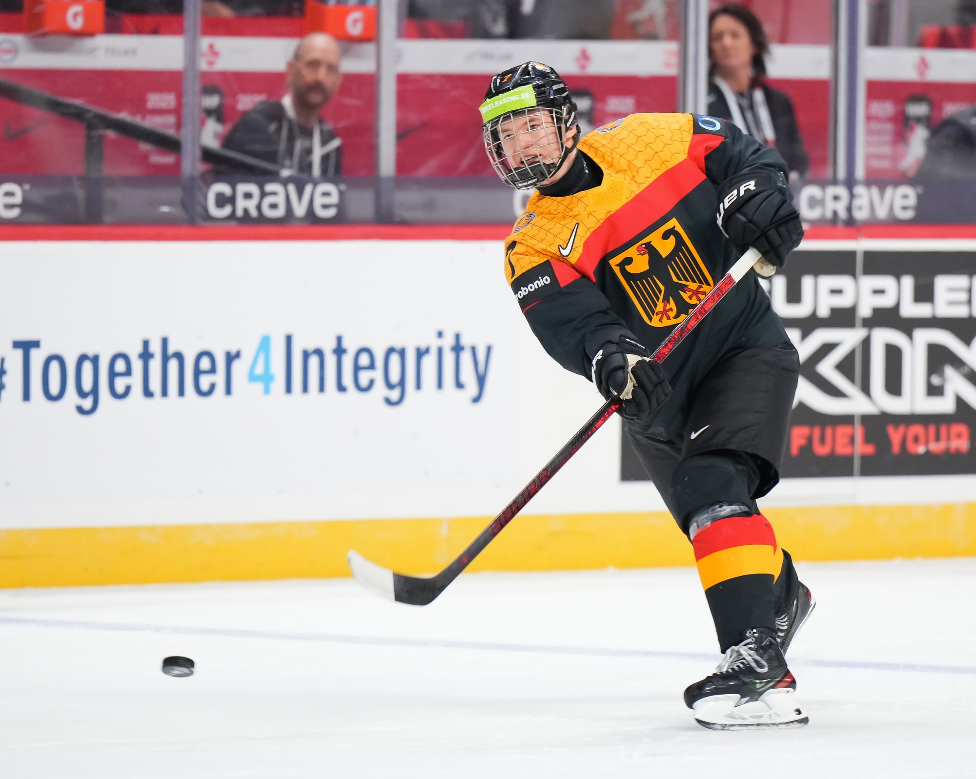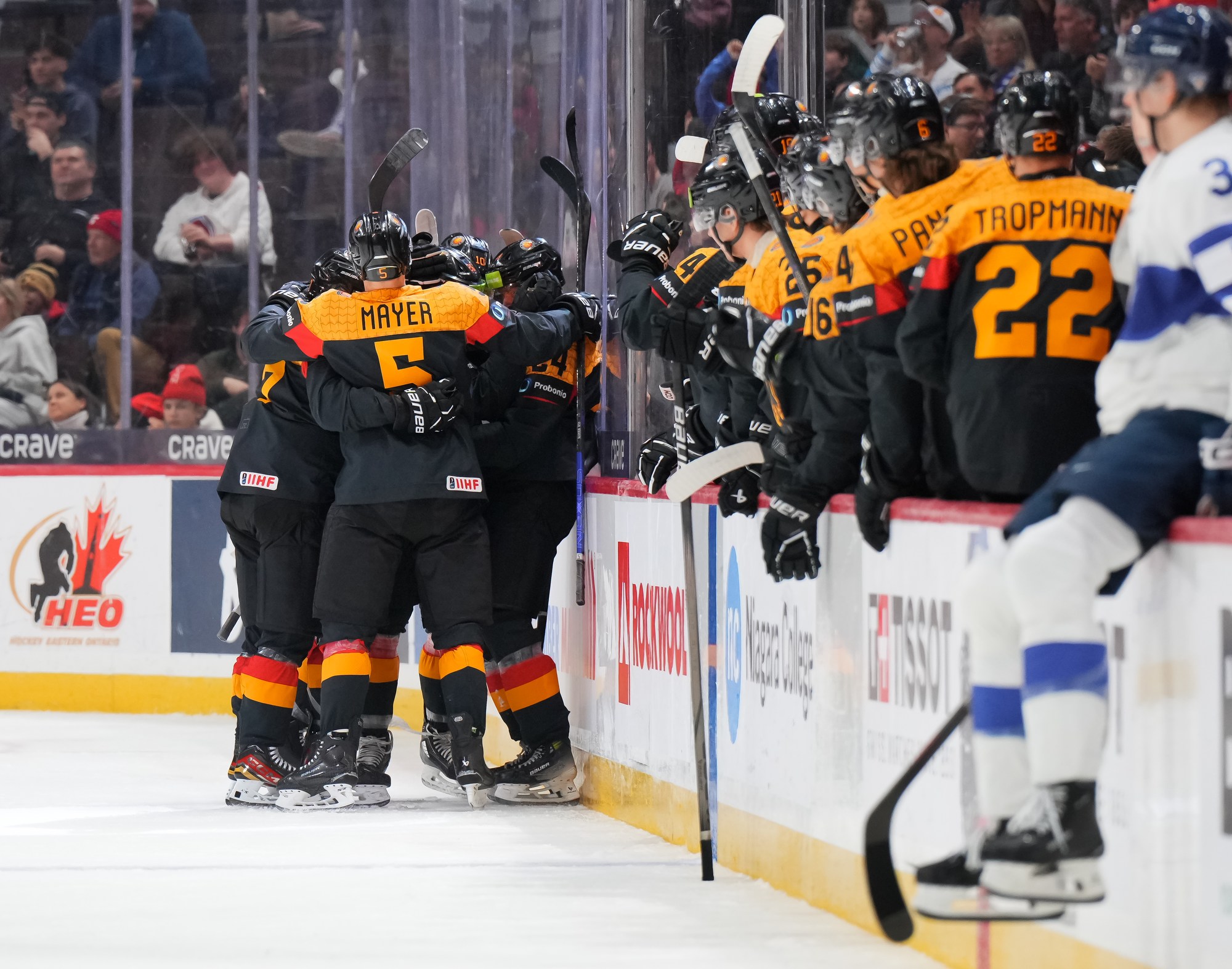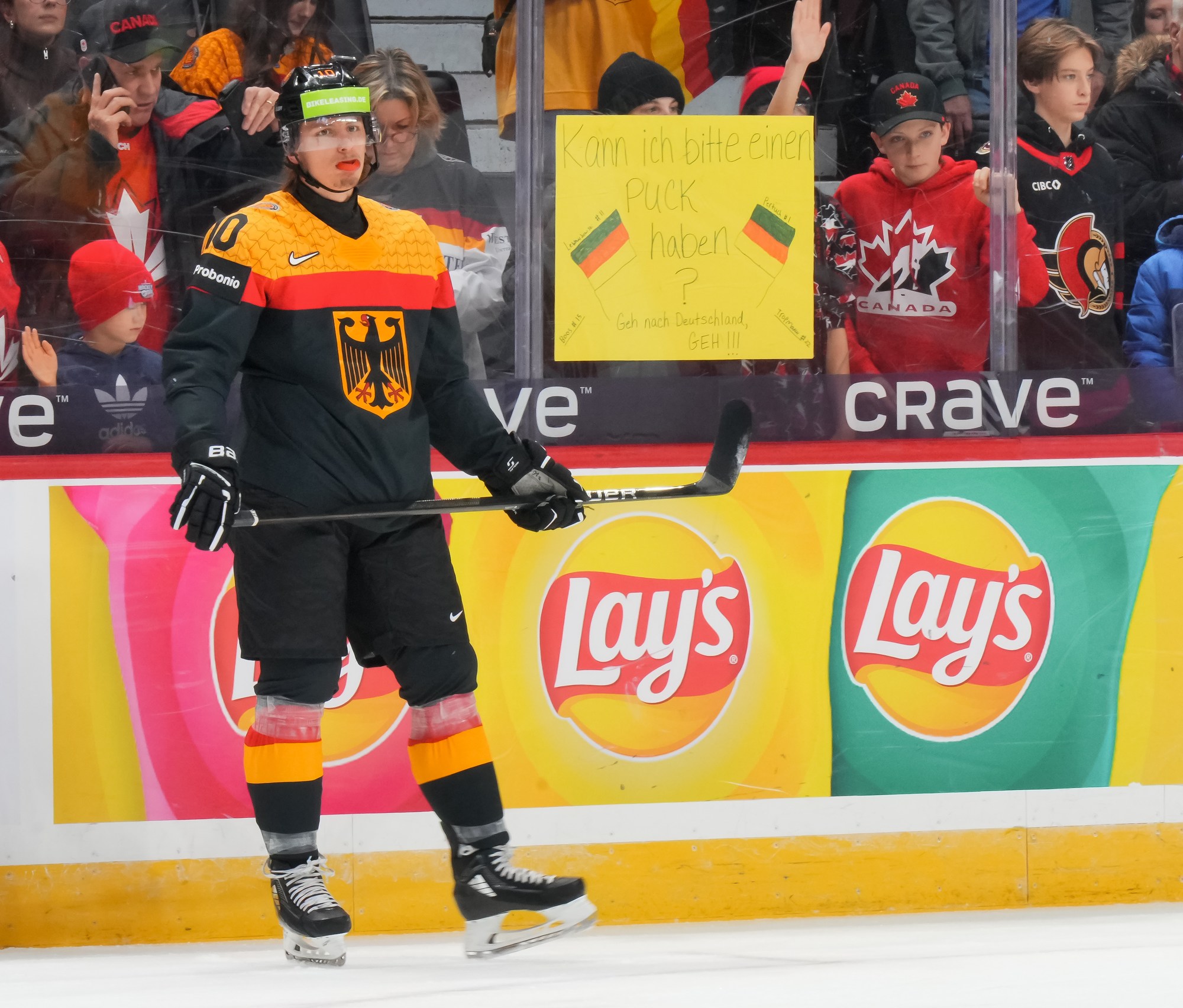 But German coach Tobias Abstreiter thought the play was offside and challenged. Officials, however, confirmed the call on ice and penalized the Germans for delay of game. They killed off the penalty to perfection and then replied with a goal of their own.