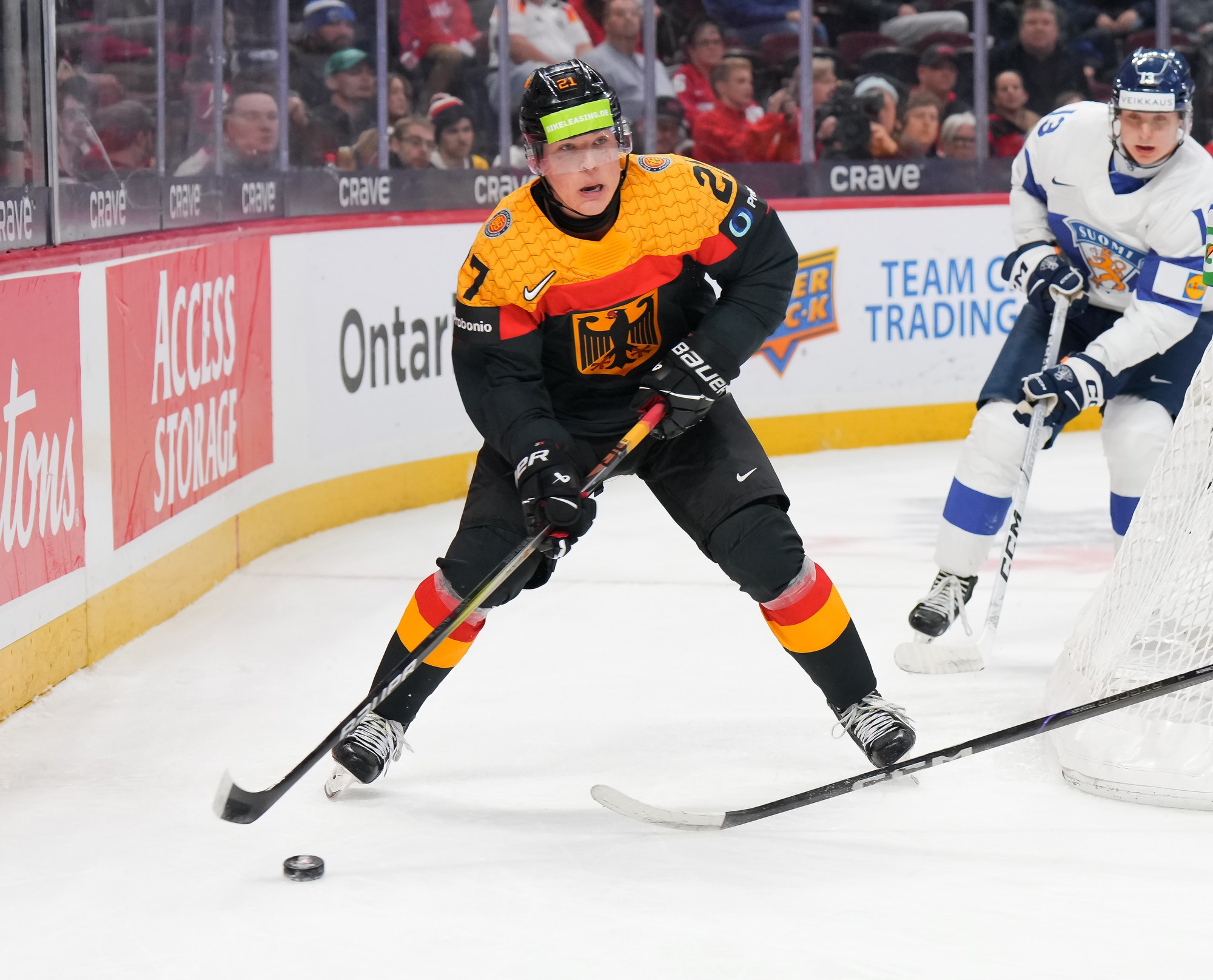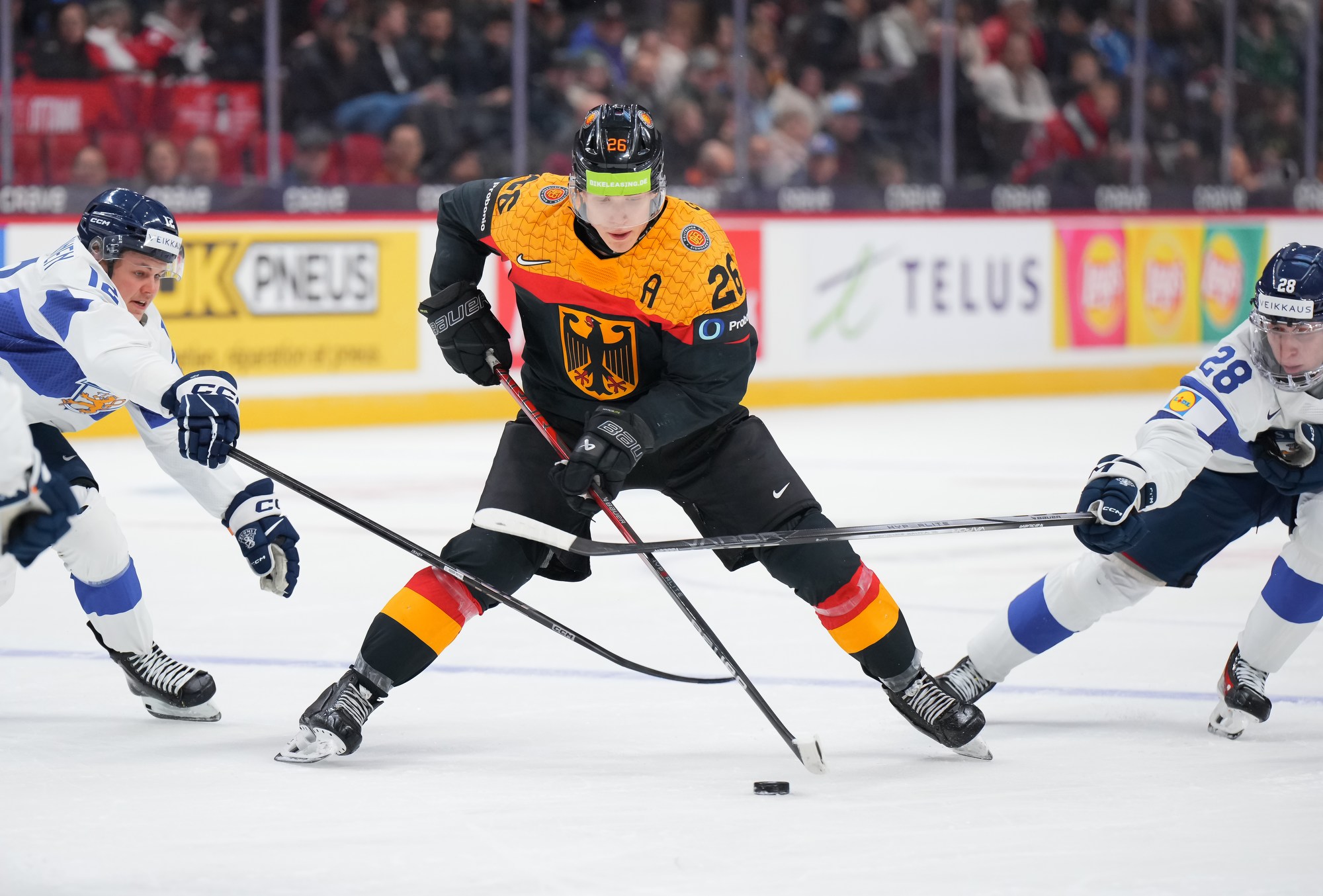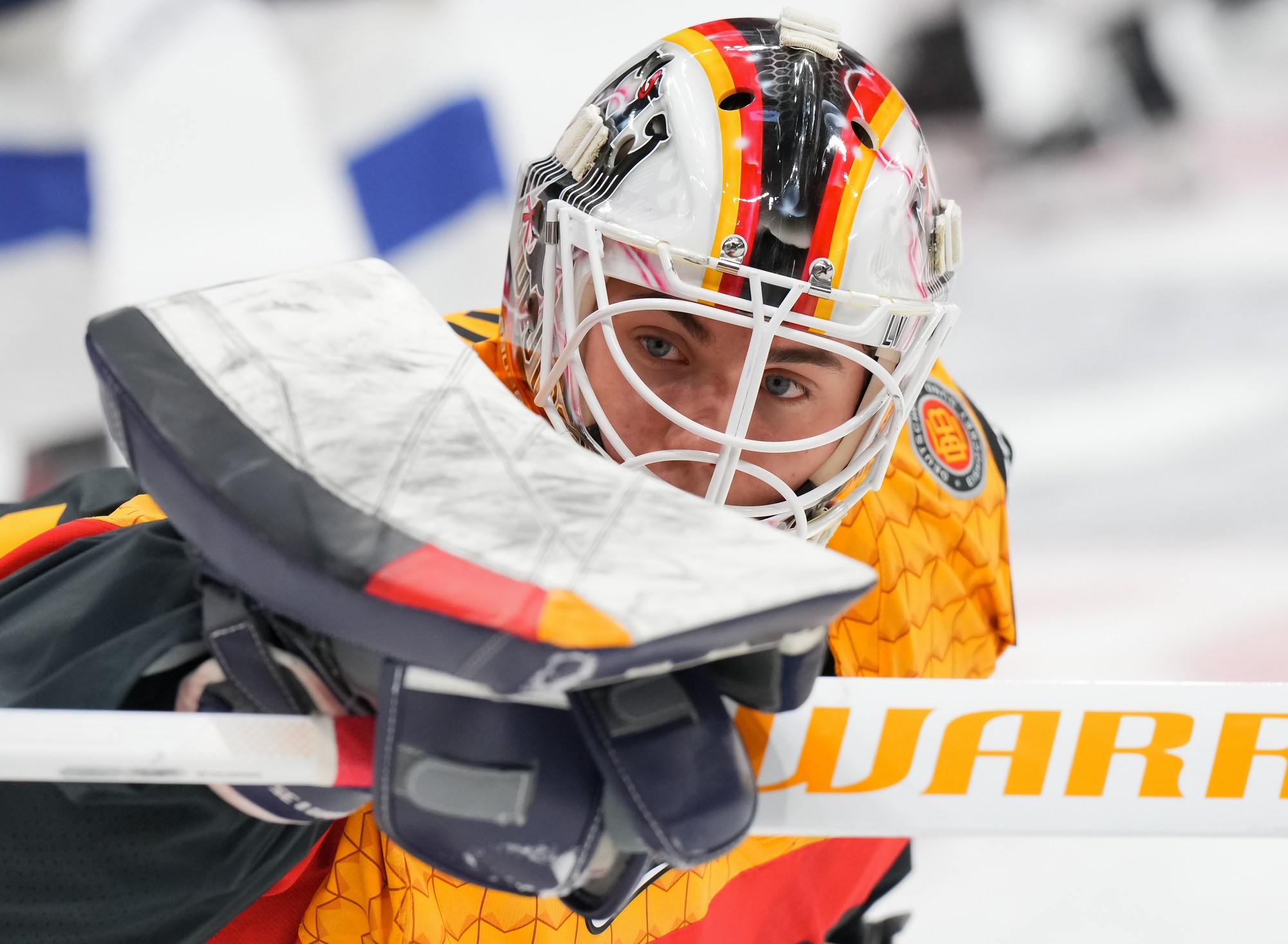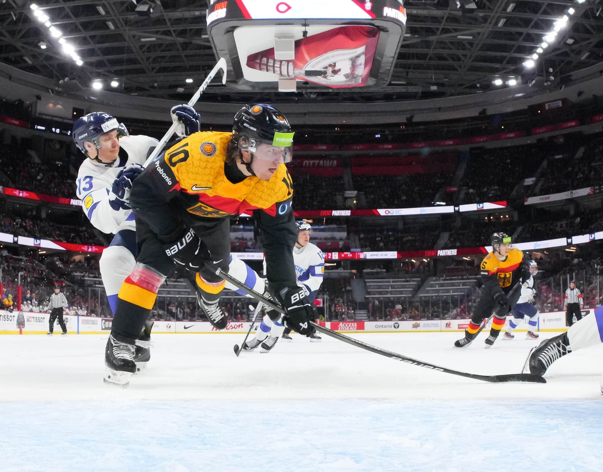 Julius Sumpf had two excellent chances for the Germans in the opening period but came up empty. He made a nice steal at his blue line and went in alone, only to blast a shot wide. Near the end, he outwitted a Finnish player from the slot but again couldn’t convert.