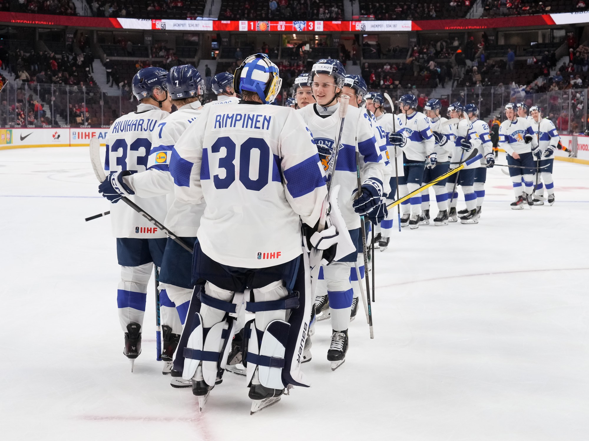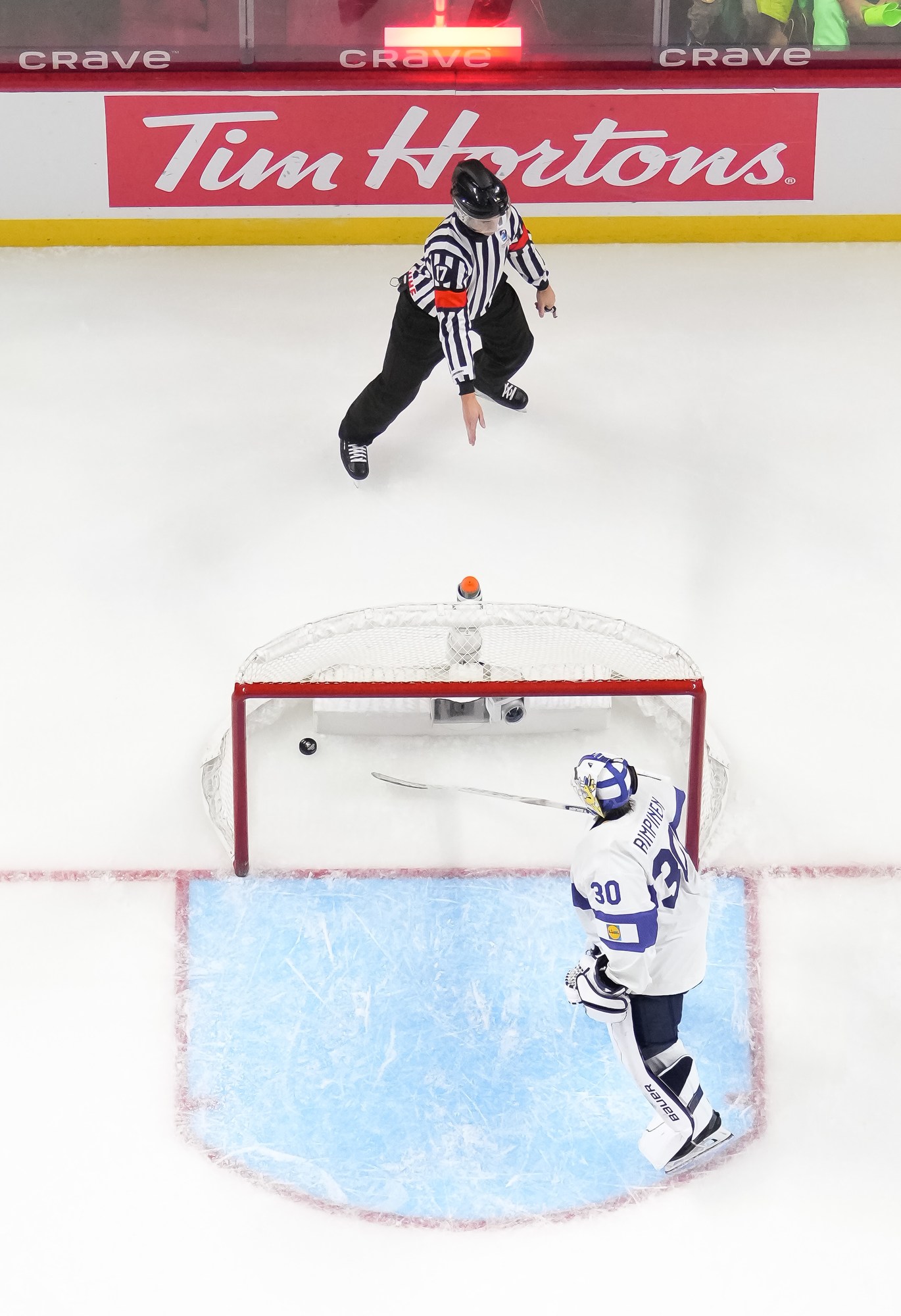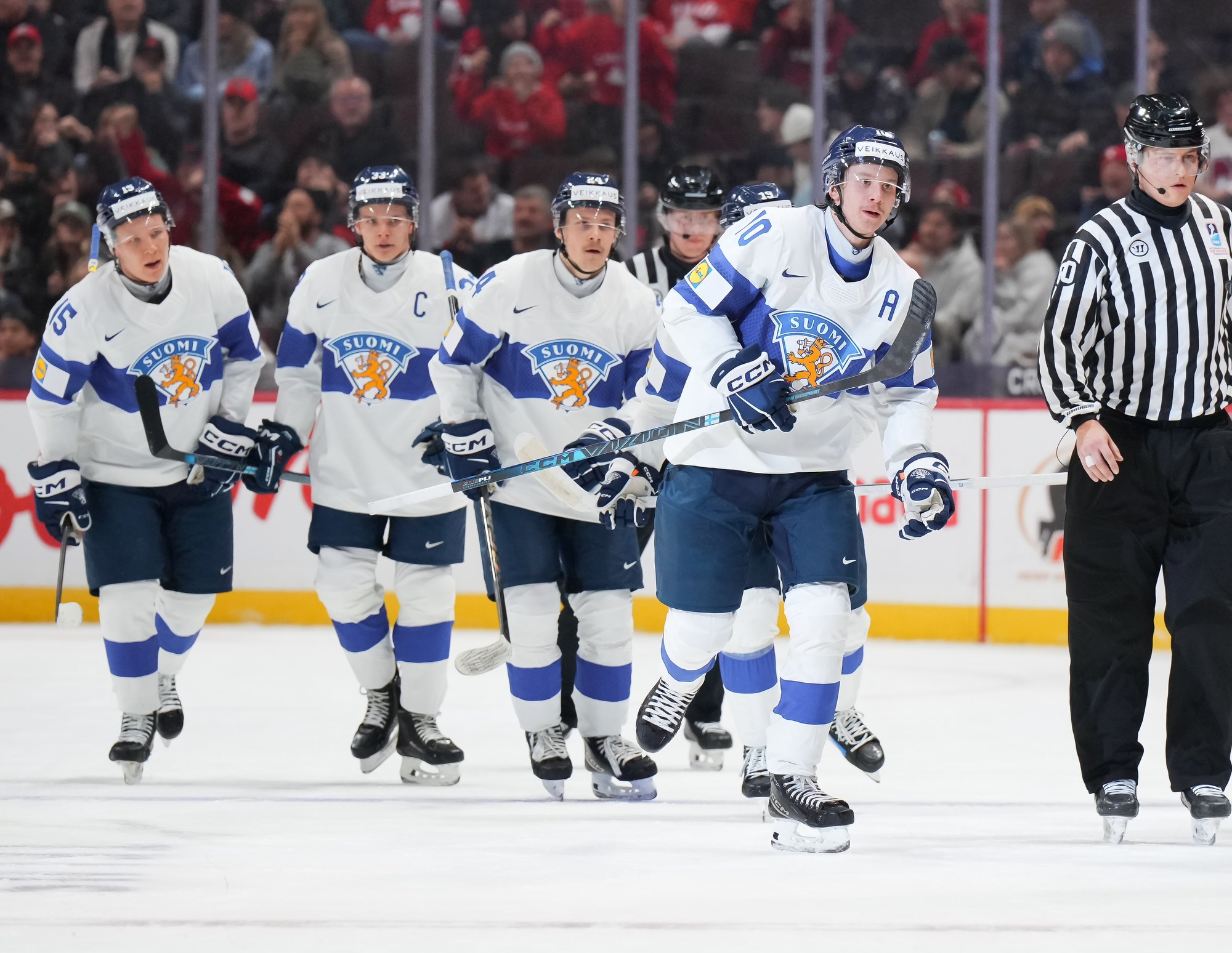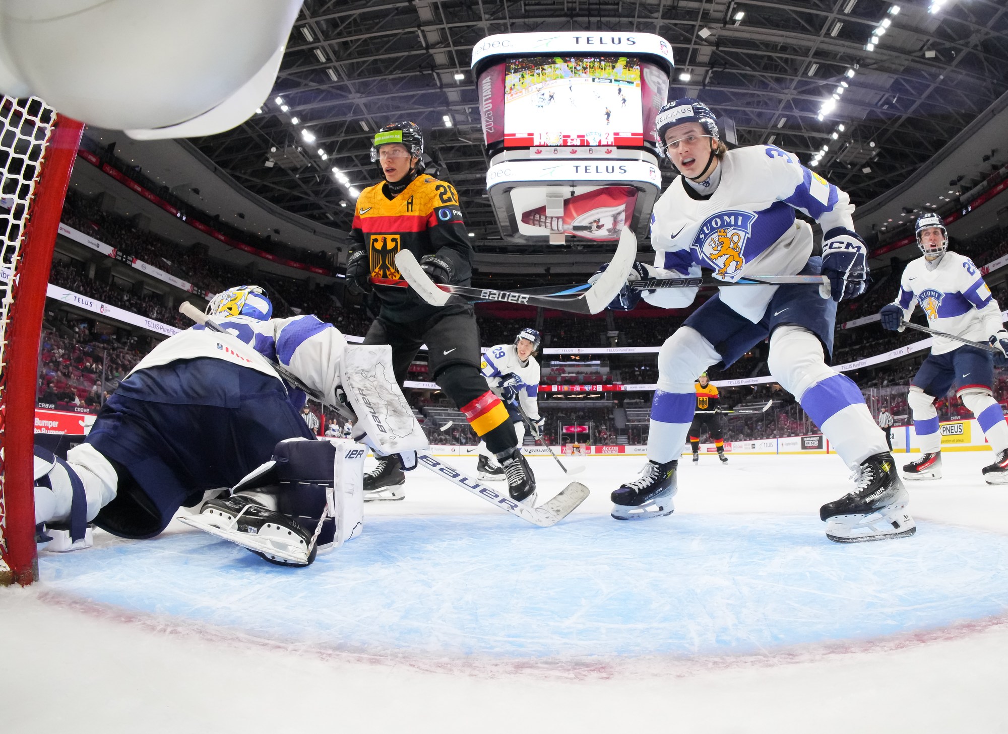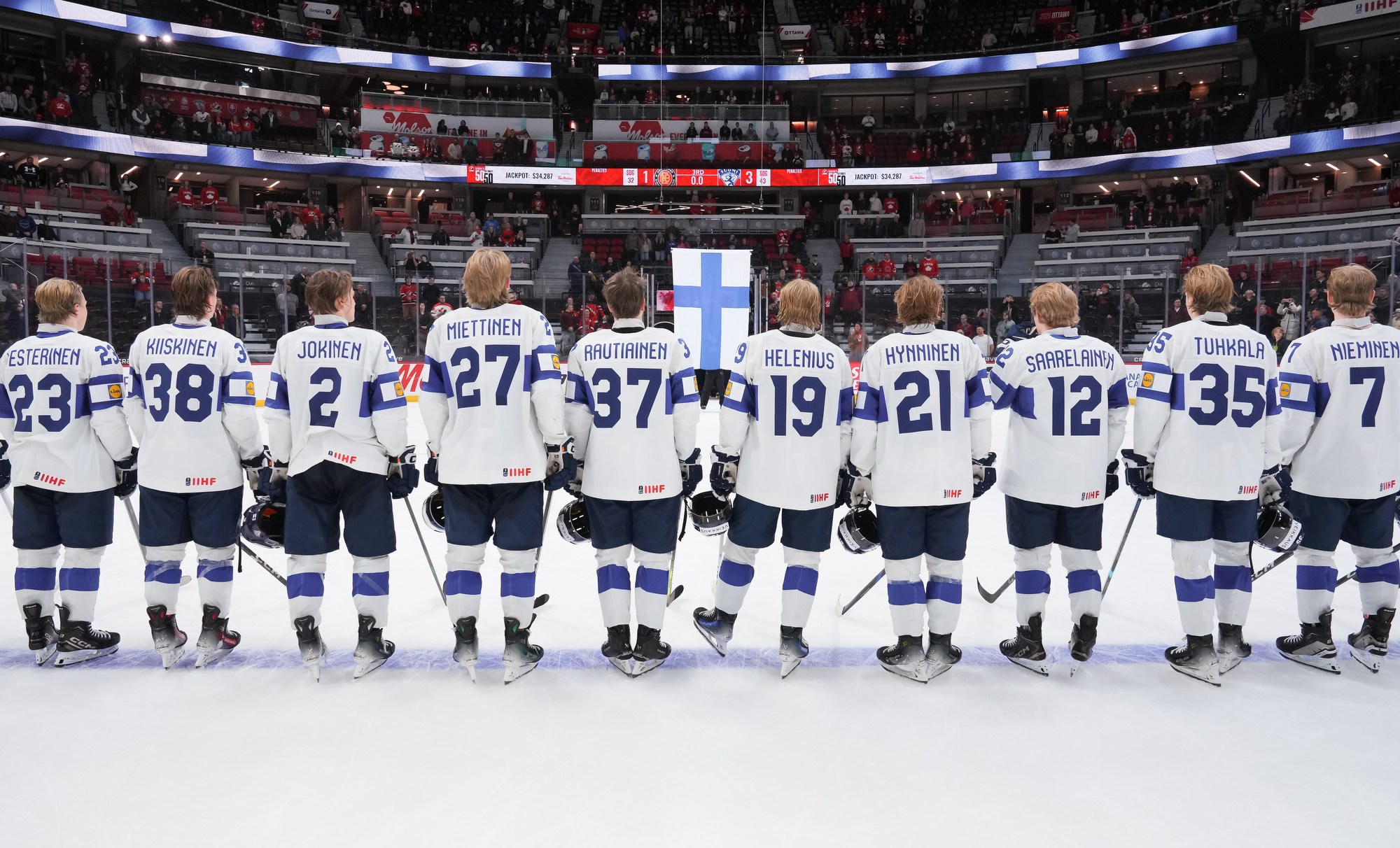 The Finns had the better of play in the opening period and were unlucky to score only once. They had a great chance early on when Kalle Kangas beat goalie Linus Vieillard with a shot from close range, but defender Sebastian Soini swept the puck off the goal line to keep it a goalless game.