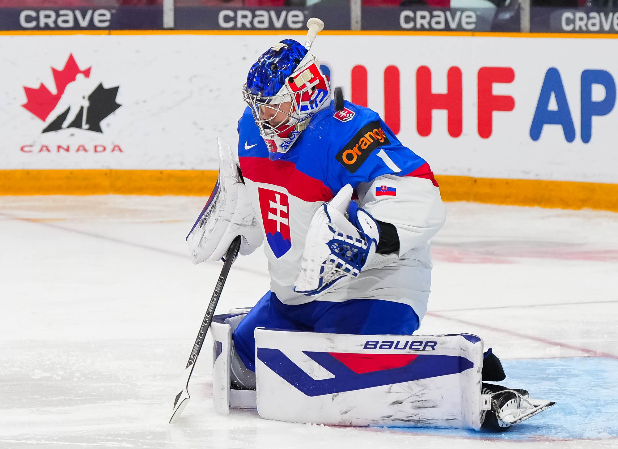 Sure enough, Slovakia was rewarded with a goal. Peter Cisar’s point shot through traffic somehow snuck through the large equipment of Michael Hrabal at 10:48, making it a one-goal game…thanks to plenty of pain.