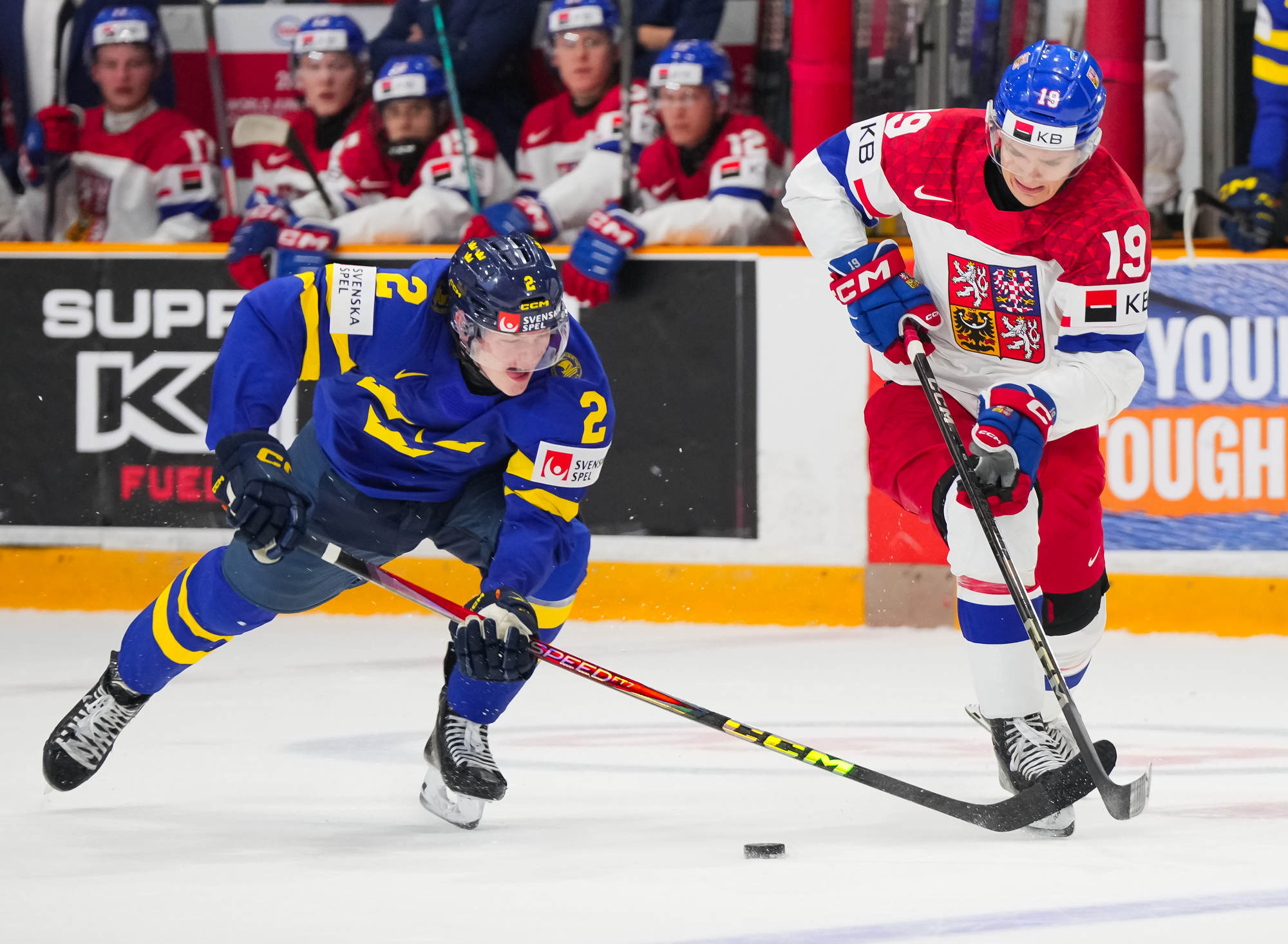 Taking over the game in the second period, the Juniorknorna outshot Czechia 41-30 in a spirited affair. The Czechs came in with the tournament’s most prolific offence (23 goals in three games), turbocharged by a 14-2 romp over Kazakhstan. However, this was a reality check for coach Patrik Augusta's crew after filling the net versus three less-formidable teams.