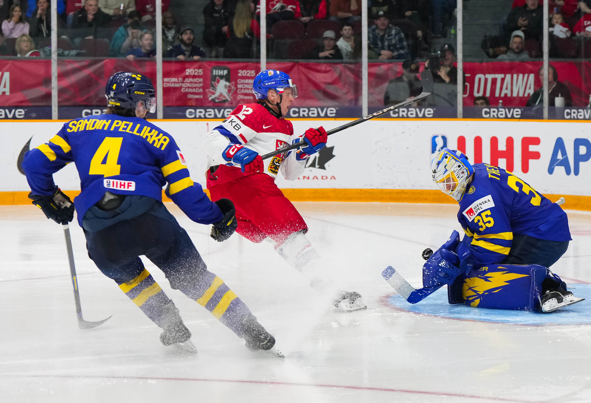 Sparked by Herman Traff's first two World Junior goals, Sweden defeated Czechia 4-2 at TD Place Arena to claim first place in Group B on New Year's Eve. The Swedes, the only team with four straight wins, will battle Latvia in Thursday’s quarter-finals.