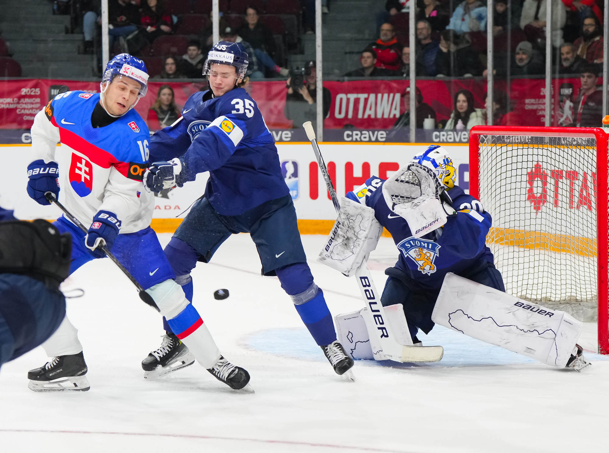 "The whole tournament, he has been unreal," forward Kasper Halttunen said of Rimpinen, who stopped 17 or 18 shots the Slovaks fired in the second period. "He's a guy that we can trust 100 percent in those big moments. Tonight, we had a five-minute penalty there, and he stepped up, right? He's a huge part of our team."