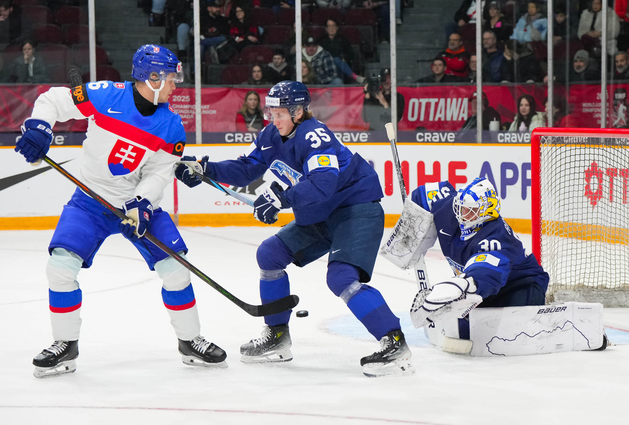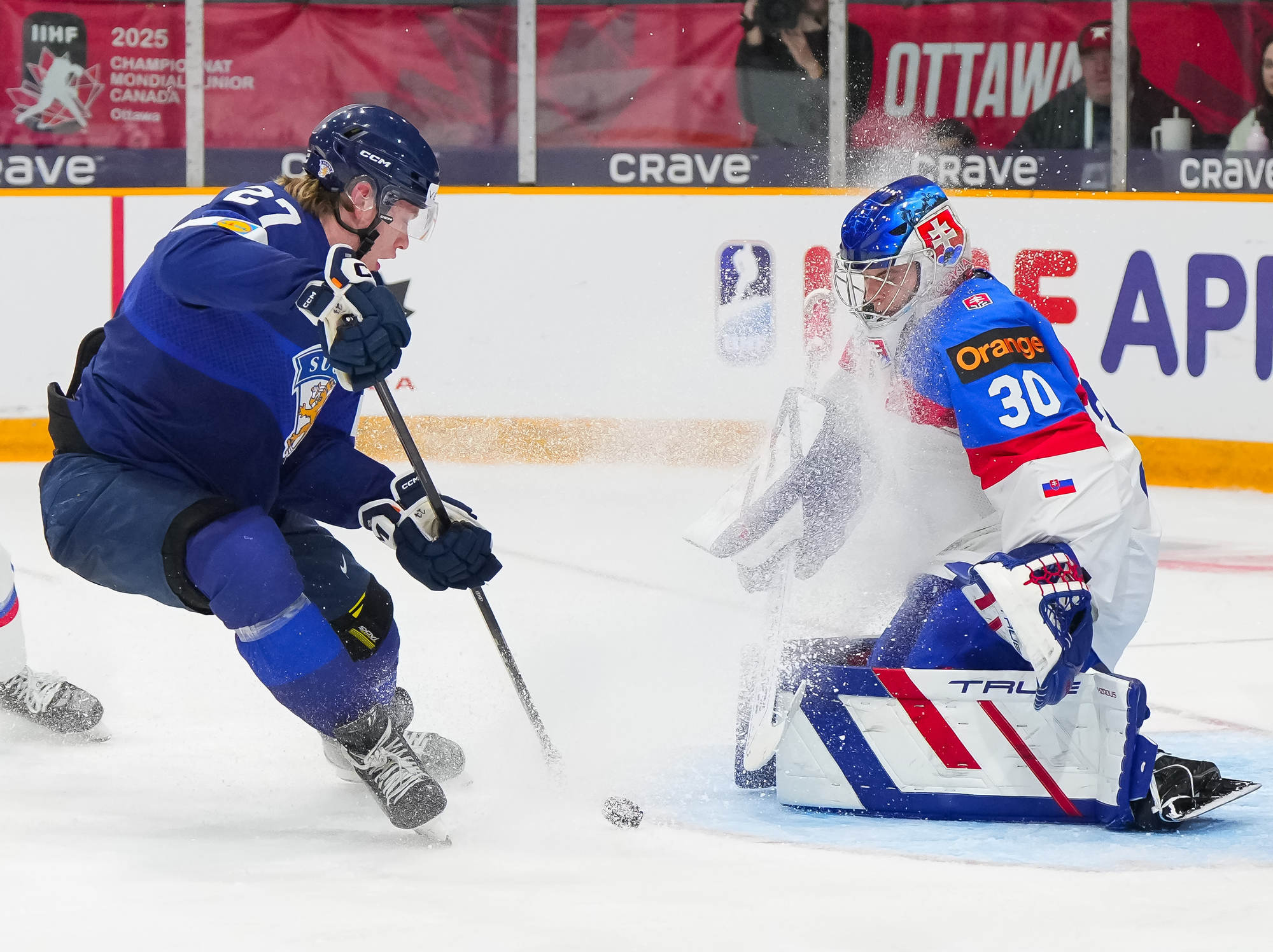 Seconds after Finland’s first man advantage expired, Rasmus Kumpulainen made it 3-0 at 13:03. A wicked Halttunen shot flew through the legs of Slovak blueliner Luka Radivojevic and Kumpulainen tipped it past Lendak. Slovak coach Ivan Fenes had seen enough, replacing Lendak with regular starter Samuel Urban.