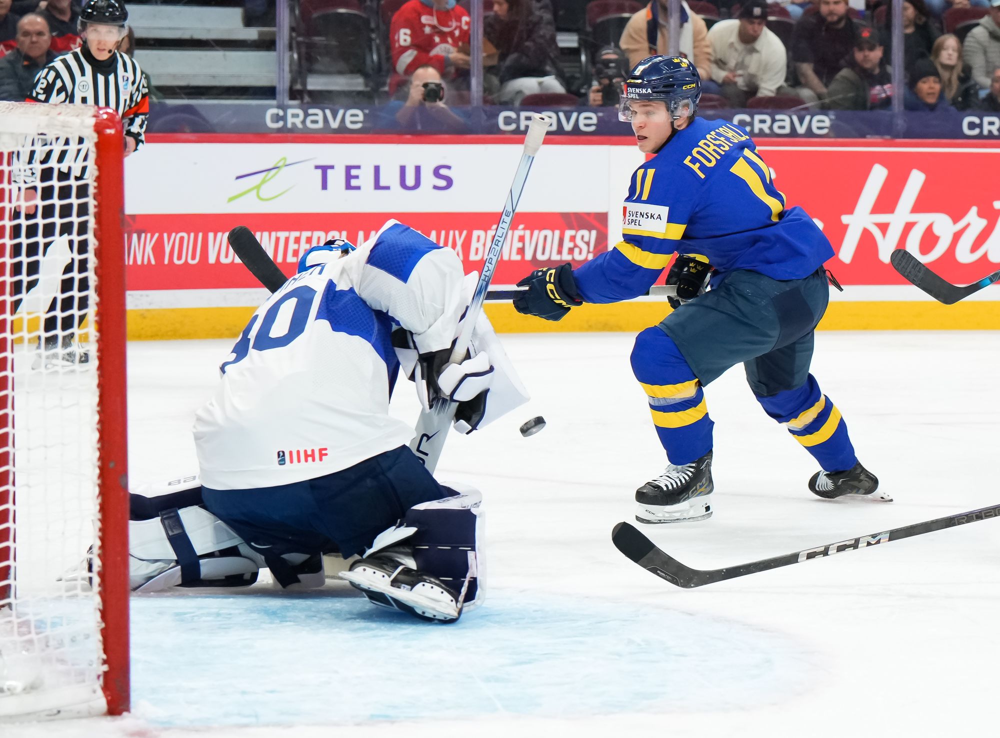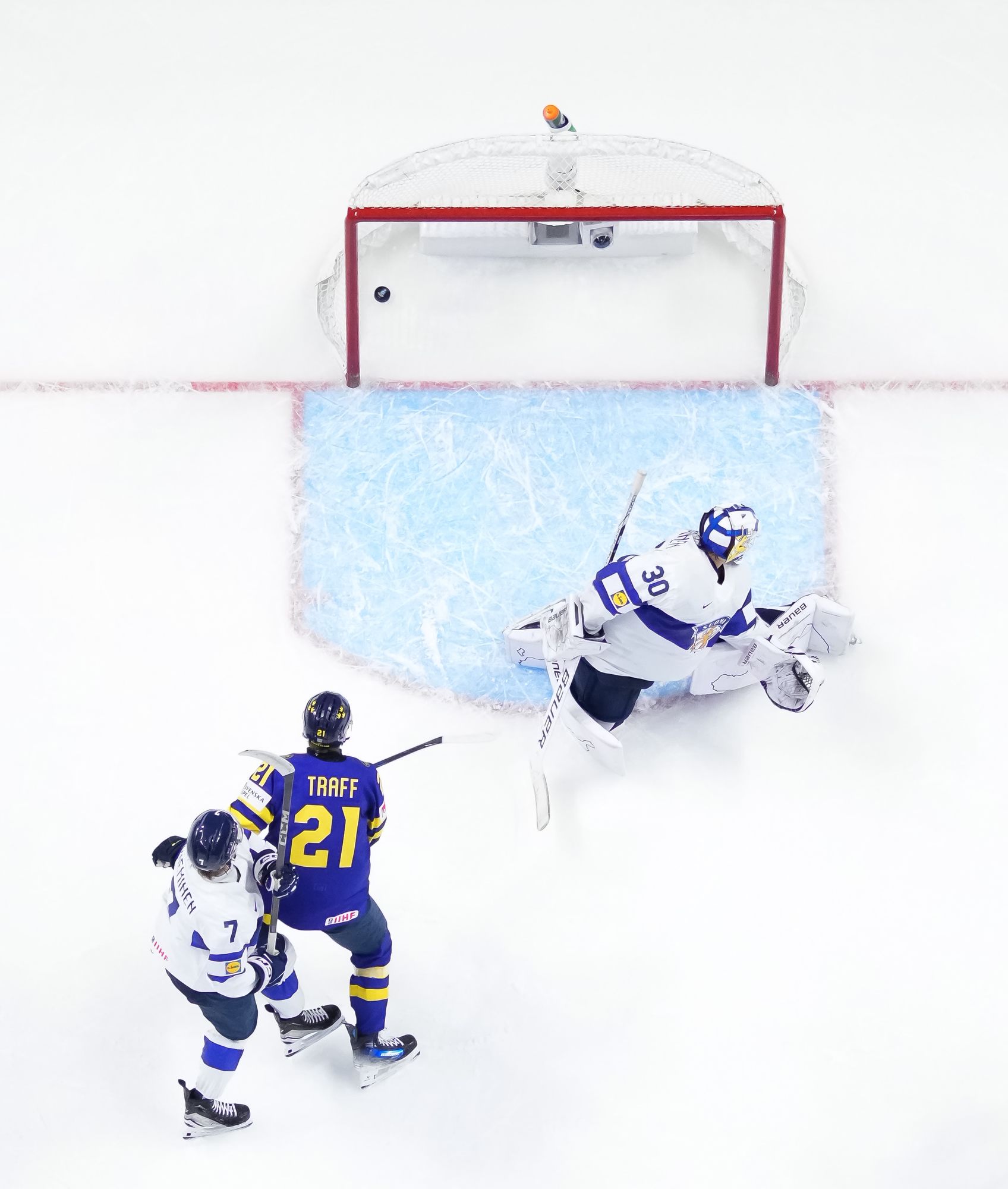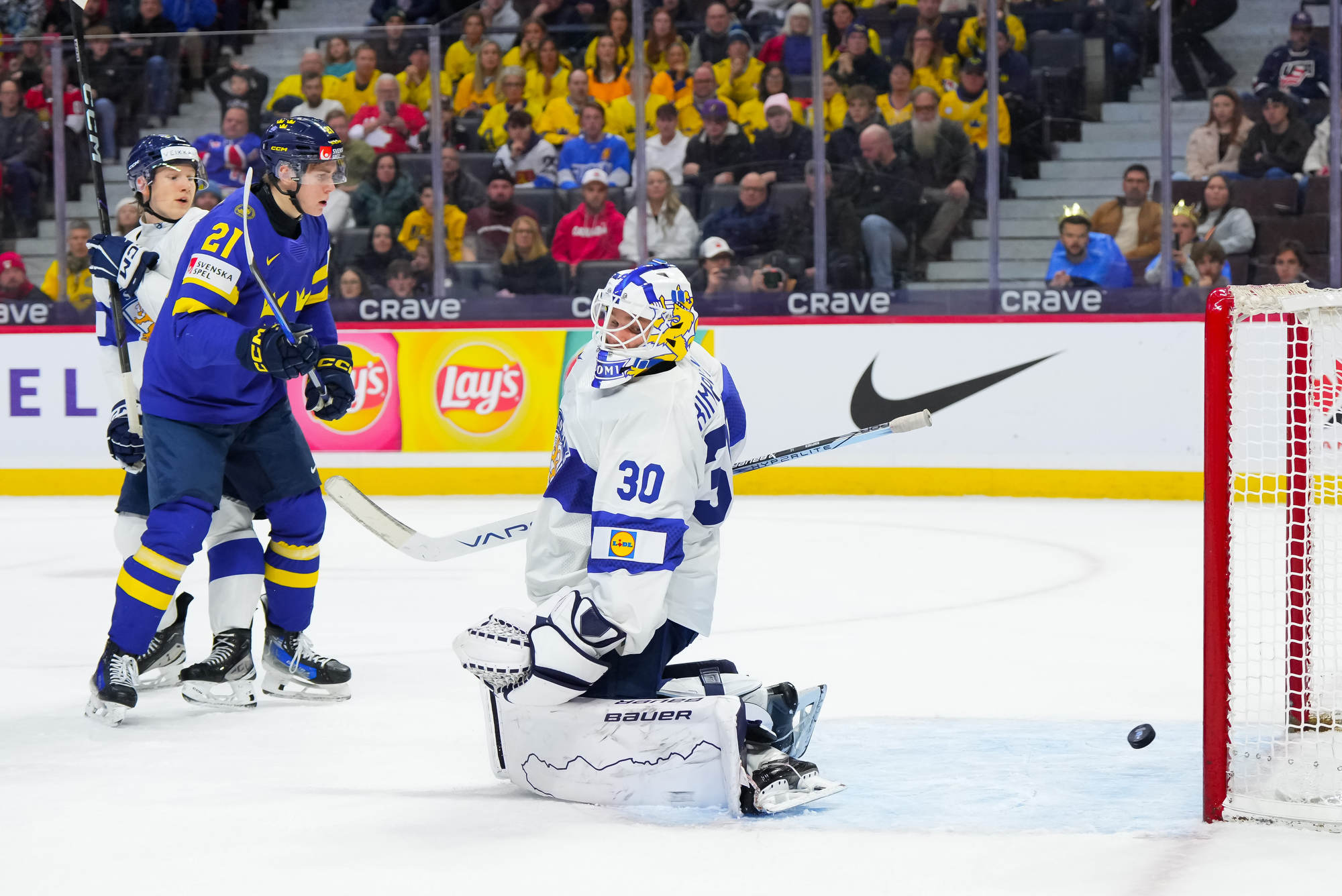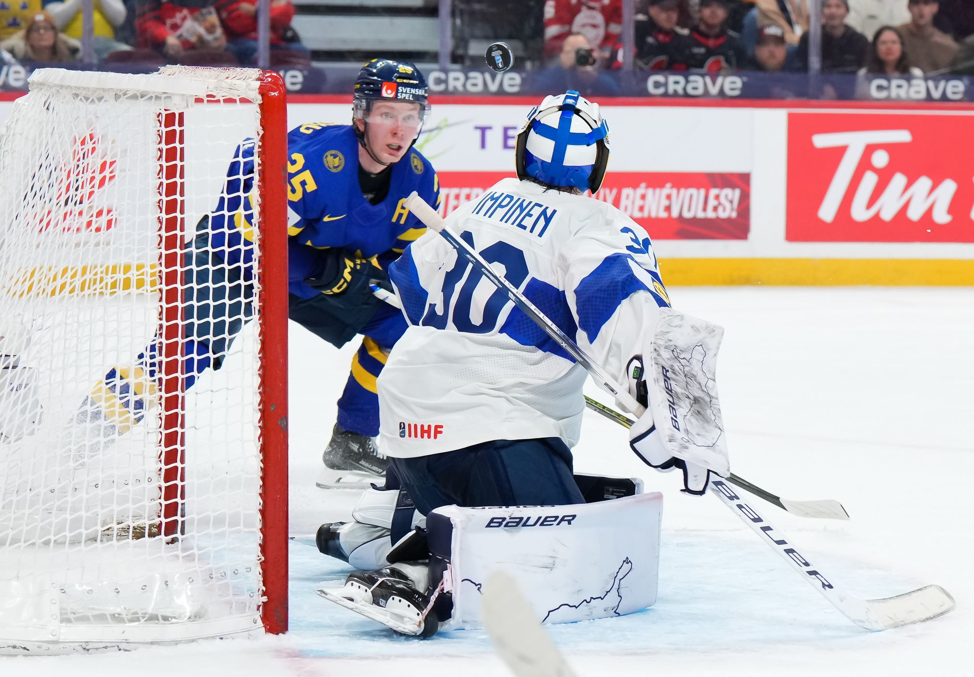 Rautiainen surprised everyone, including Swedish goalie Melker Thelin, when the Tappara Tampere forward fired a bad-angle shot along the ice. It was a power play goal with blueliner Tom Willander serving a holding minor.