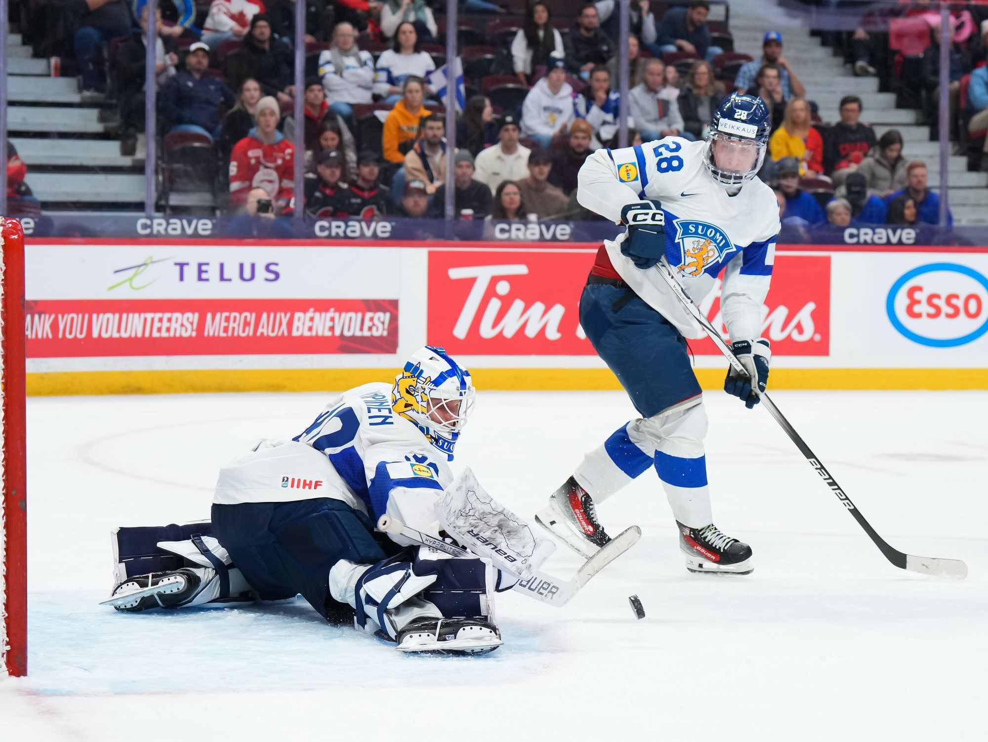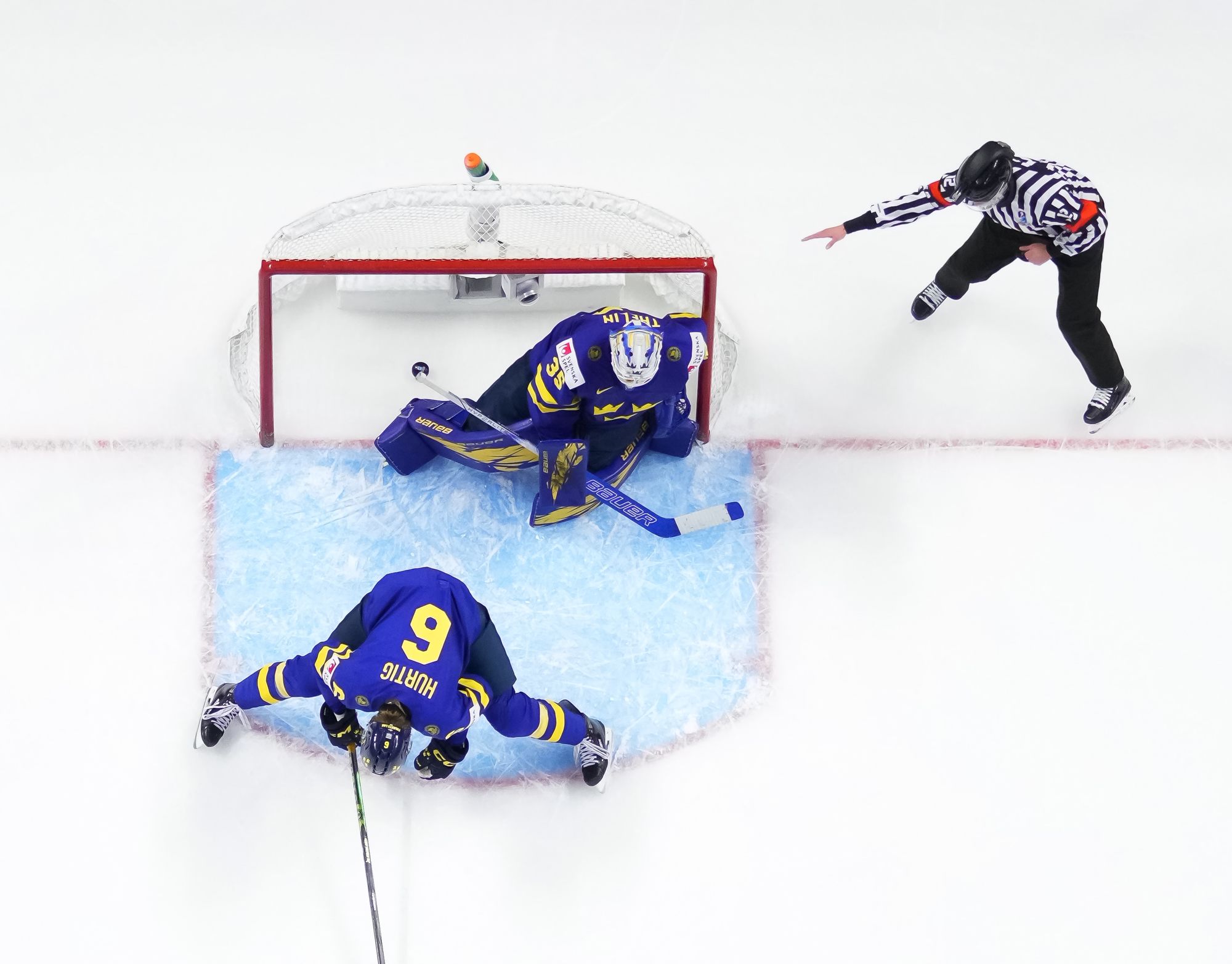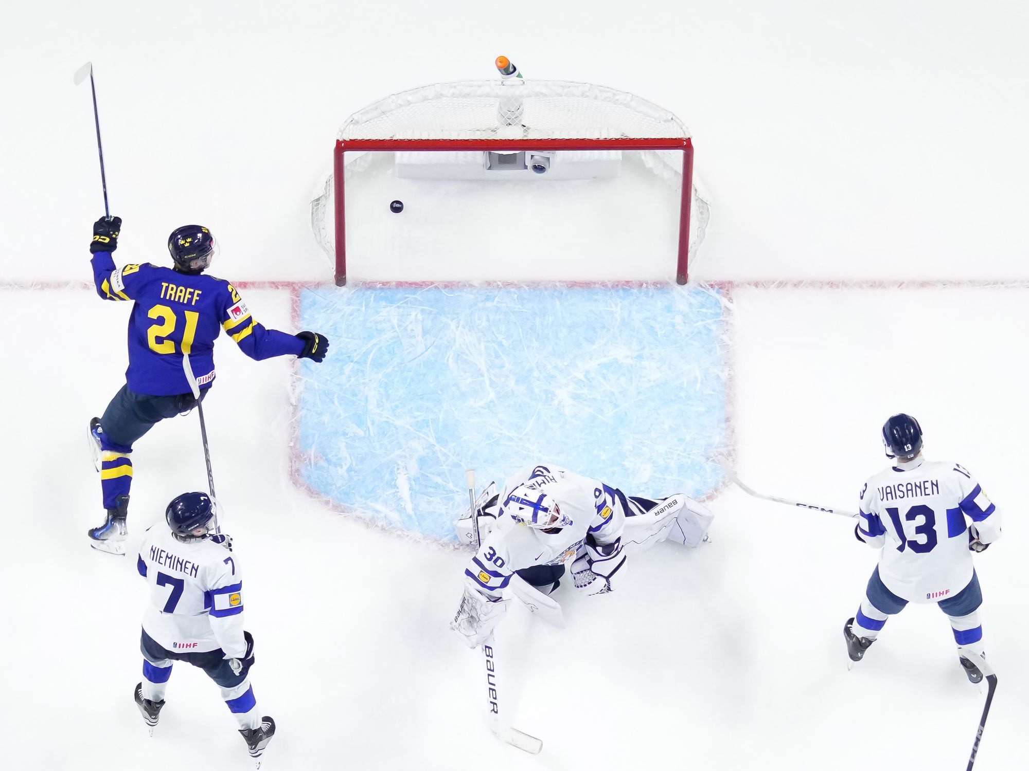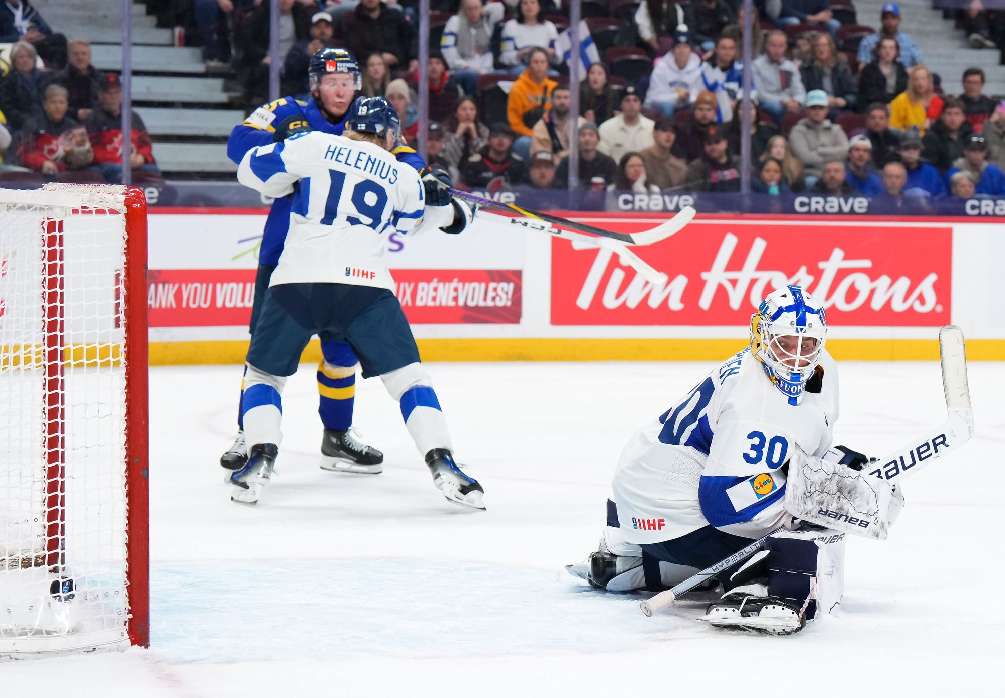 Rautiainen surprised everyone, including Swedish goalie Melker Thelin, when the Tappara Tampere forward fired a bad-angle shot along the ice. It was a power play goal with blueliner Tom Willander serving a holding minor.