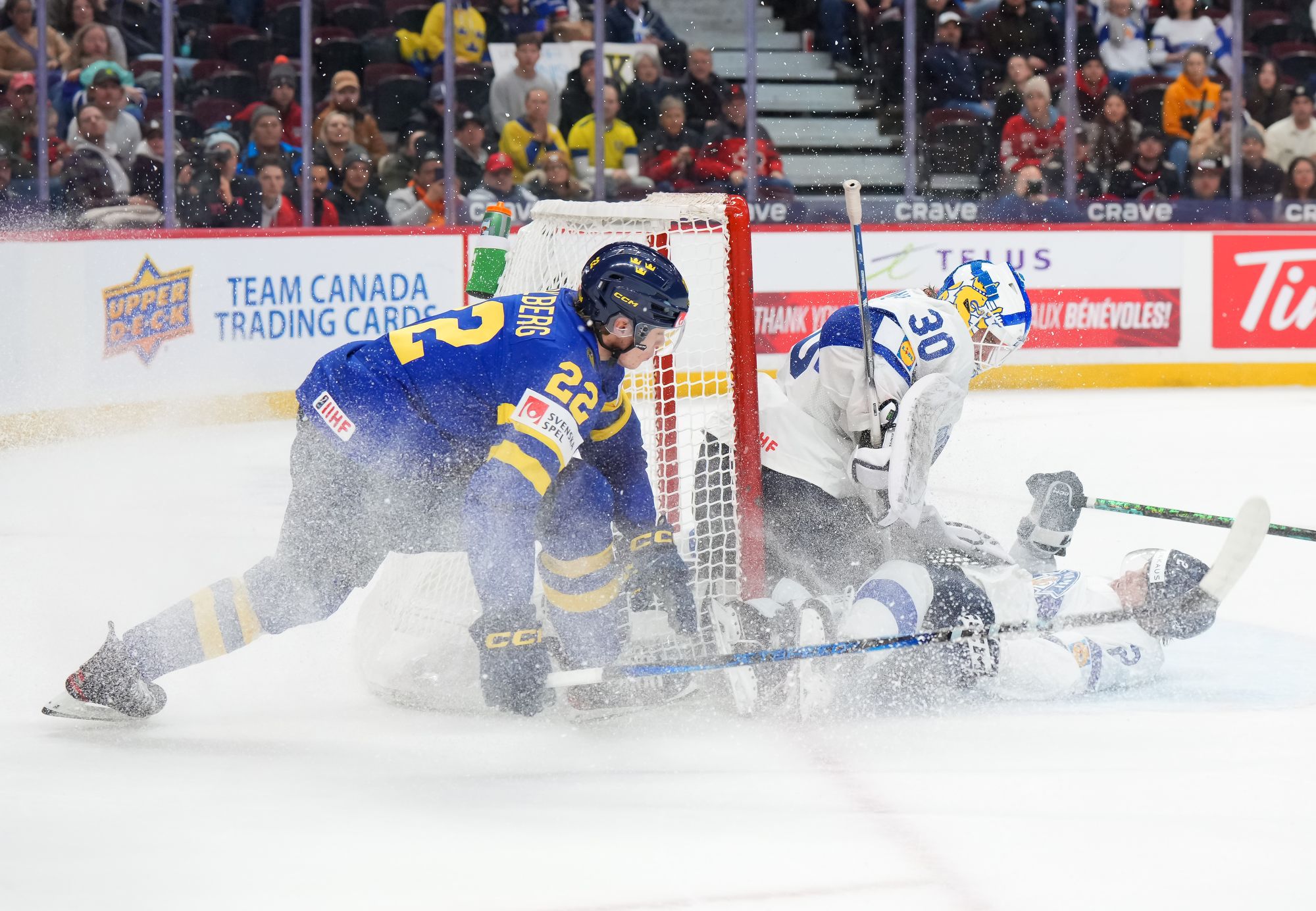 Heading into this showdown, the Finnish penalty kill had allowed just one goal. But Sweden made it 2-2 with its top-ranked power play at 18:07. Stenberg's one-timer from the right faceoff circle deflected off Veeti Vaisanen past Rimpinen.