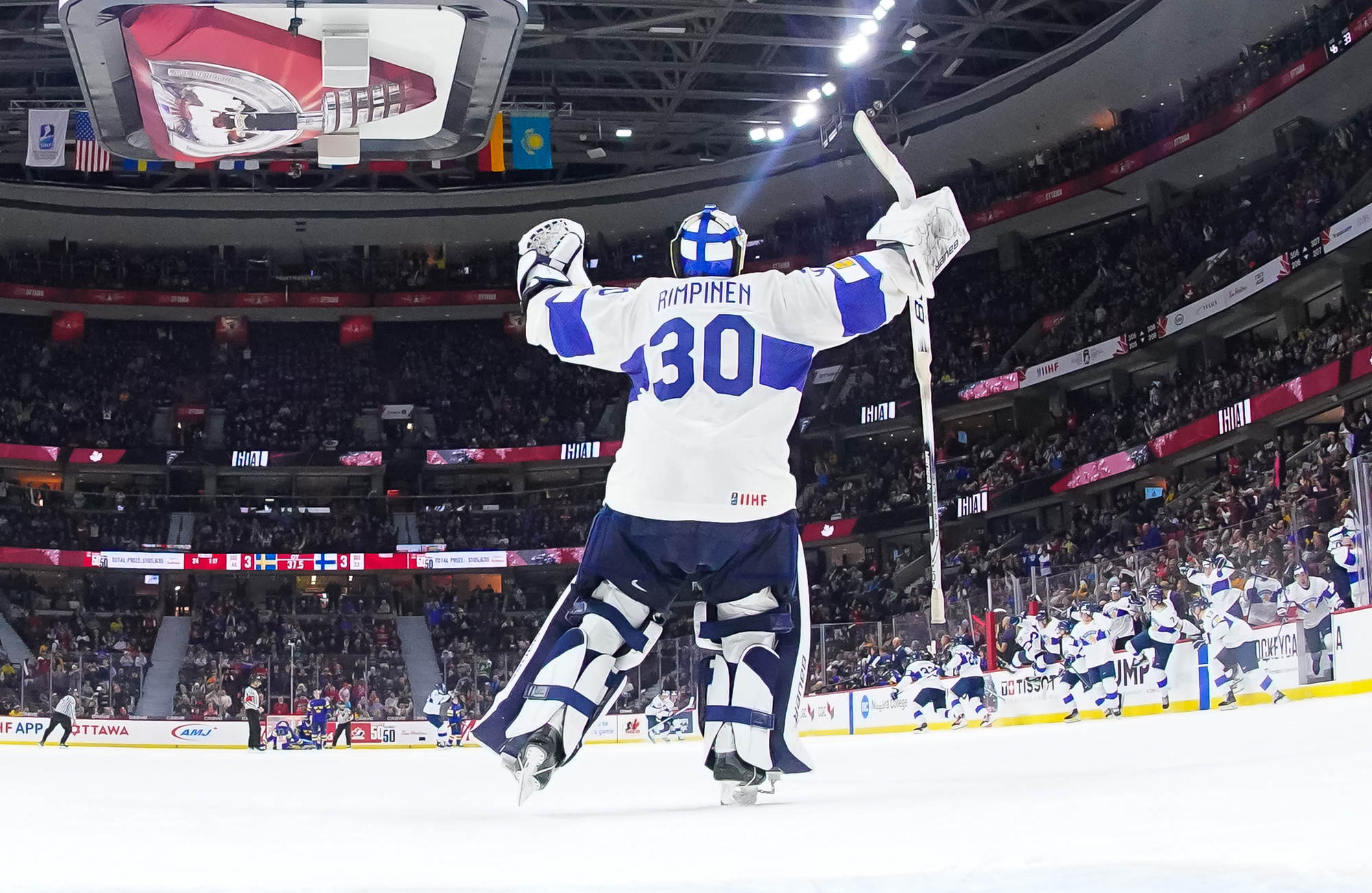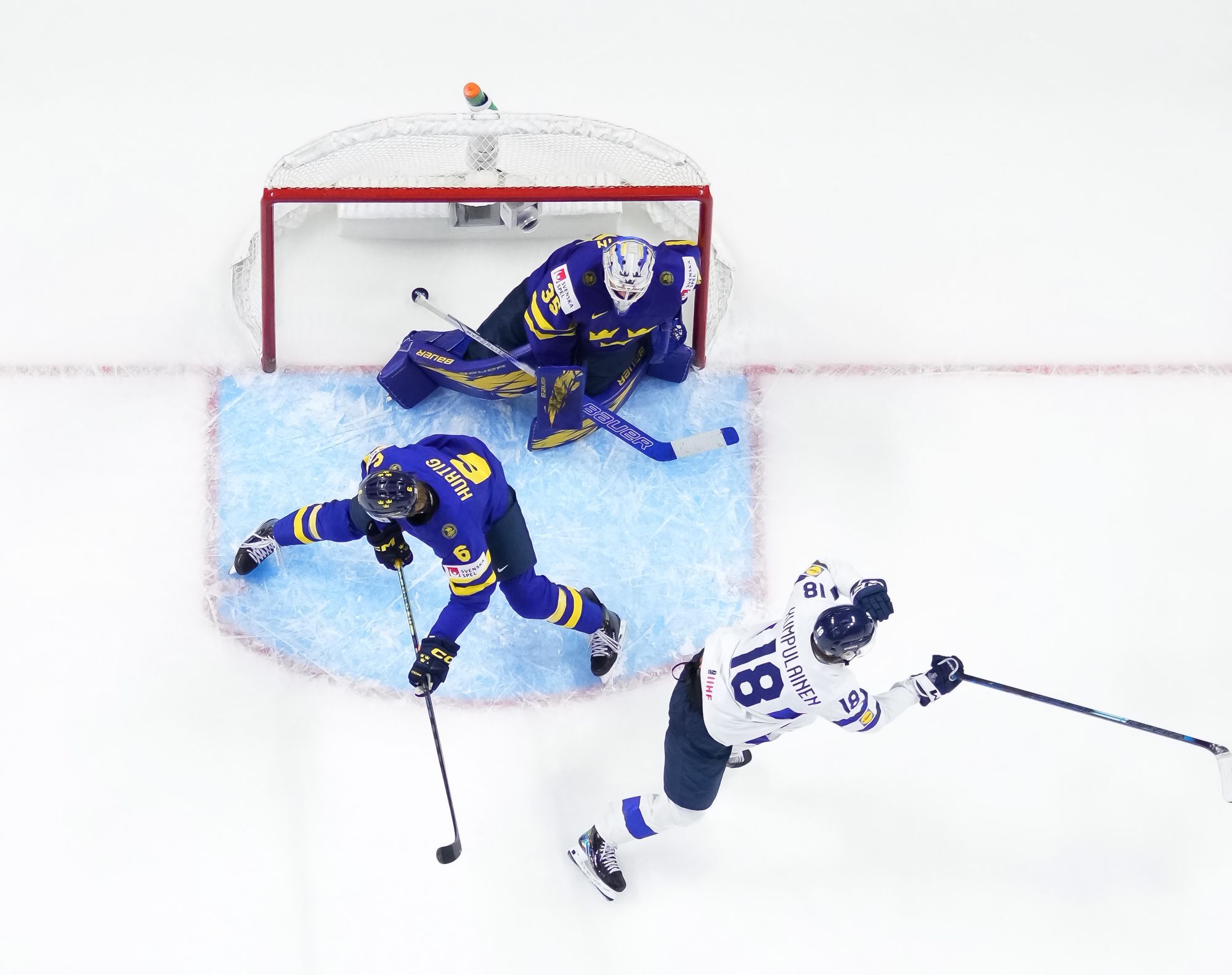 Sweden's power play got a glorious chance in sudden death after Nurmi clipped Felix Unger Sorum with a high-stick. Unger Sorum tested Rimpinen twice during the man advantage, but the Finnish goalie denied him with his glove.
