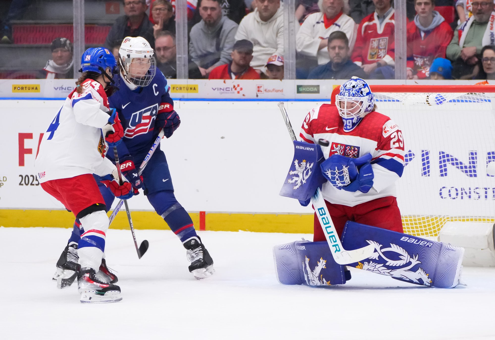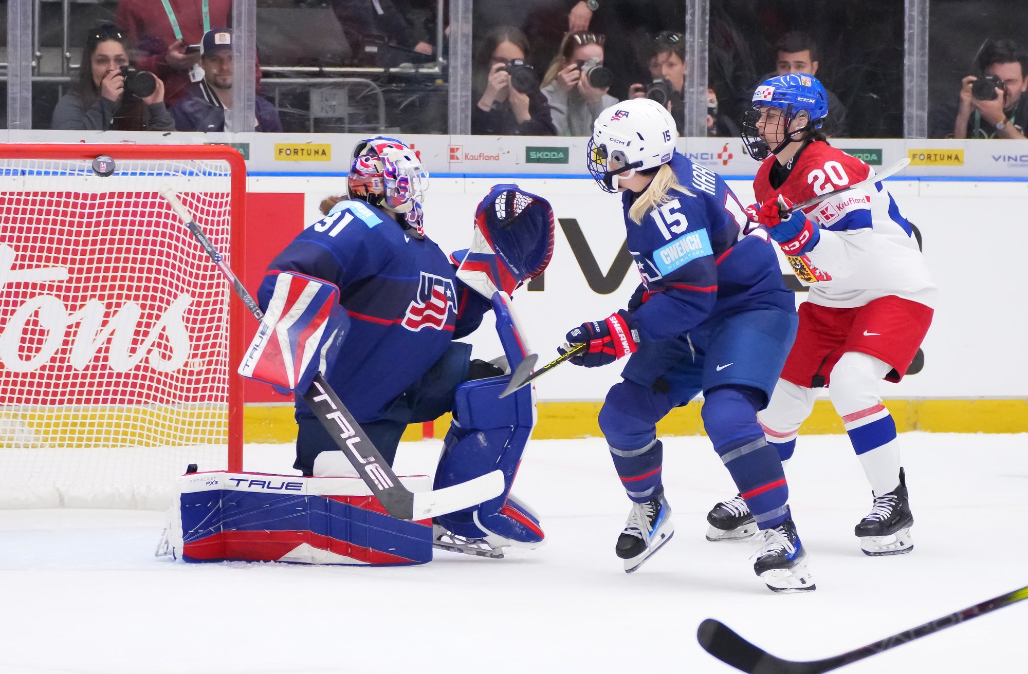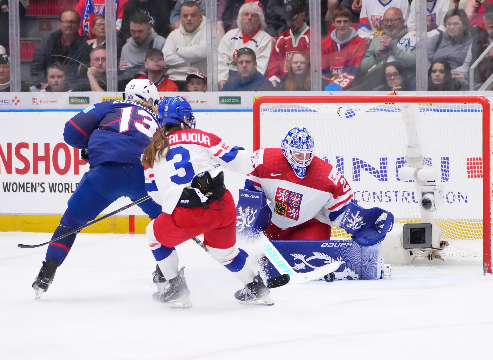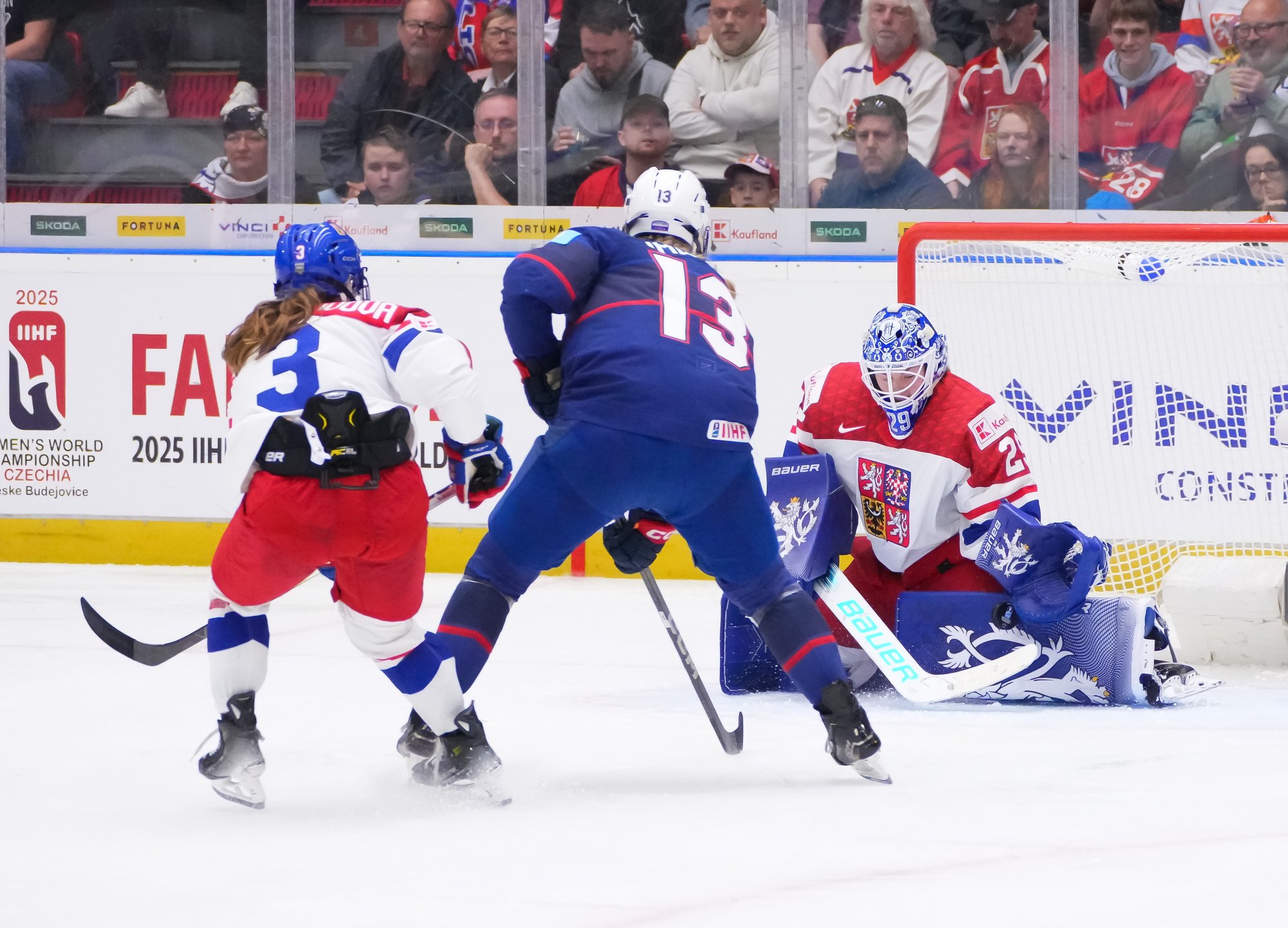 The goal would have deflated many teams, but the Czechs came through that test of character. A huge stick save from Peslarova denied Eden the go-ahead goal and reinvigorated the crowd. And there was more encouragement for the host when a three-on-two rush saw Tereza Vanisova get it to the slot where Frankel stayed big to thwart Denisa Krizova from close range.