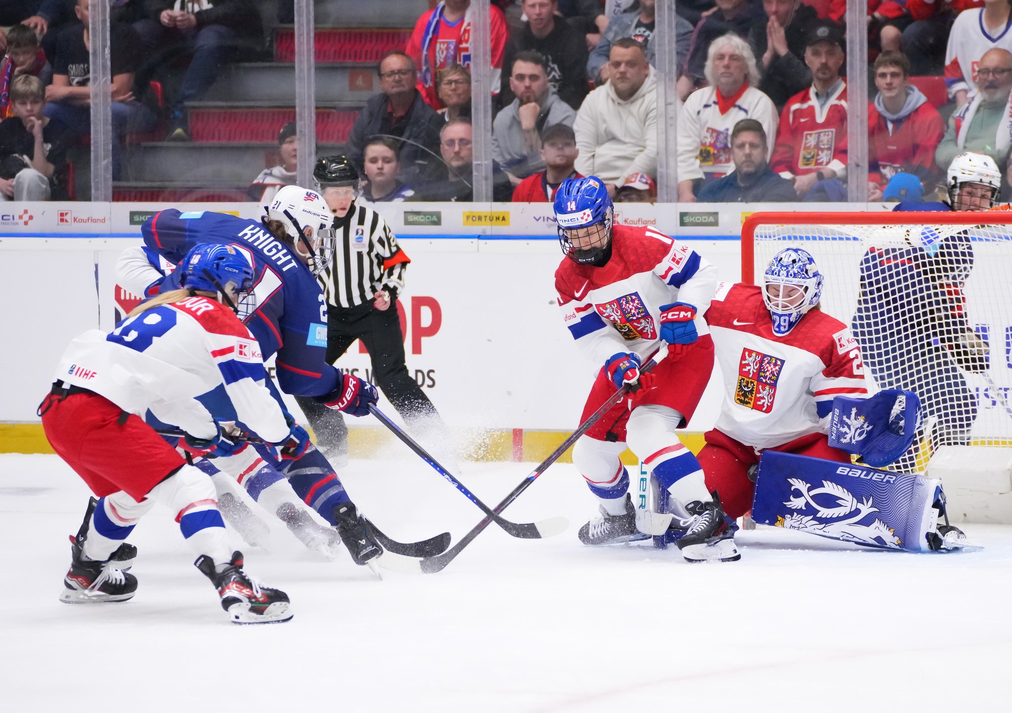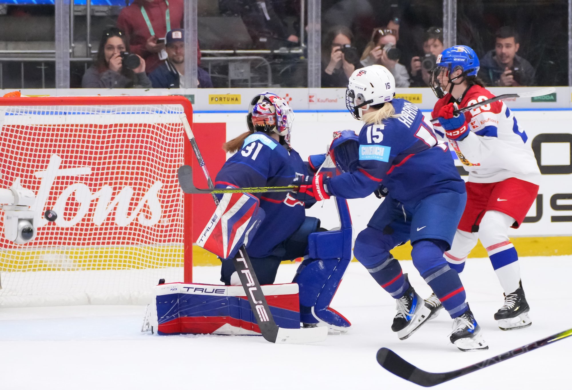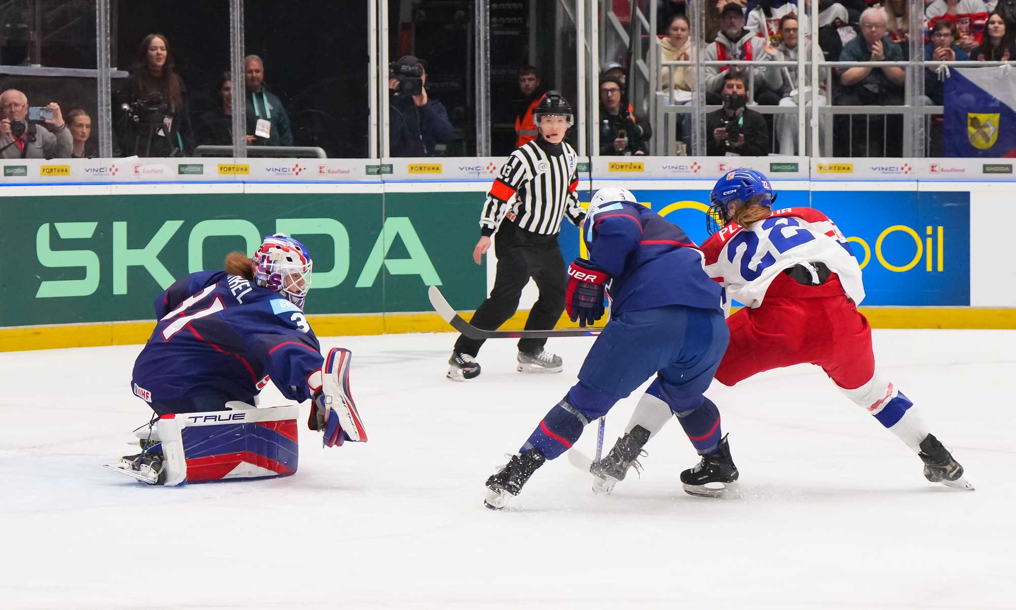 The goal would have deflated many teams, but the Czechs came through that test of character. A huge stick save from Peslarova denied Eden the go-ahead goal and reinvigorated the crowd. And there was more encouragement for the host when a three-on-two rush saw Tereza Vanisova get it to the slot where Frankel stayed big to thwart Denisa Krizova from close range.