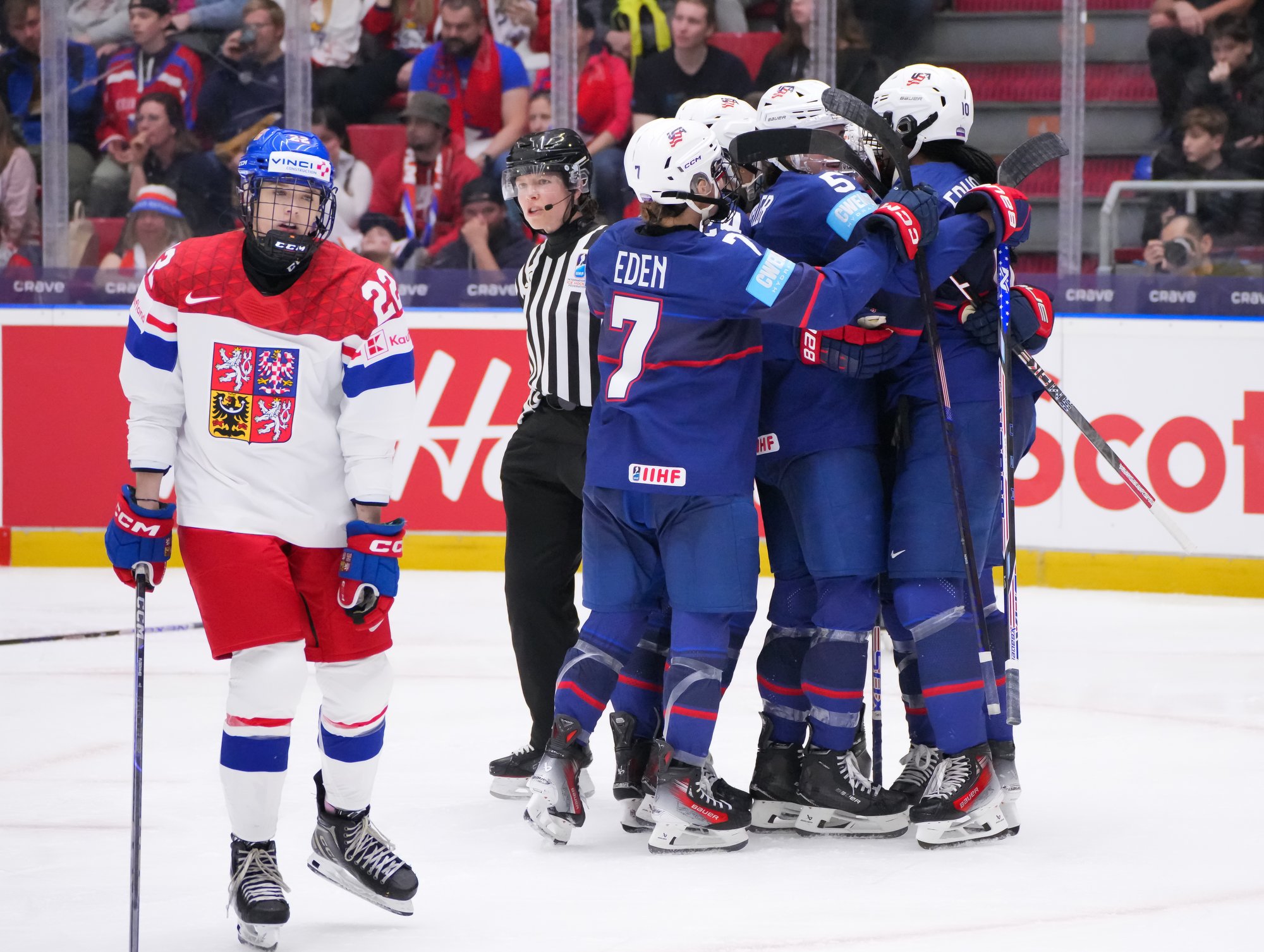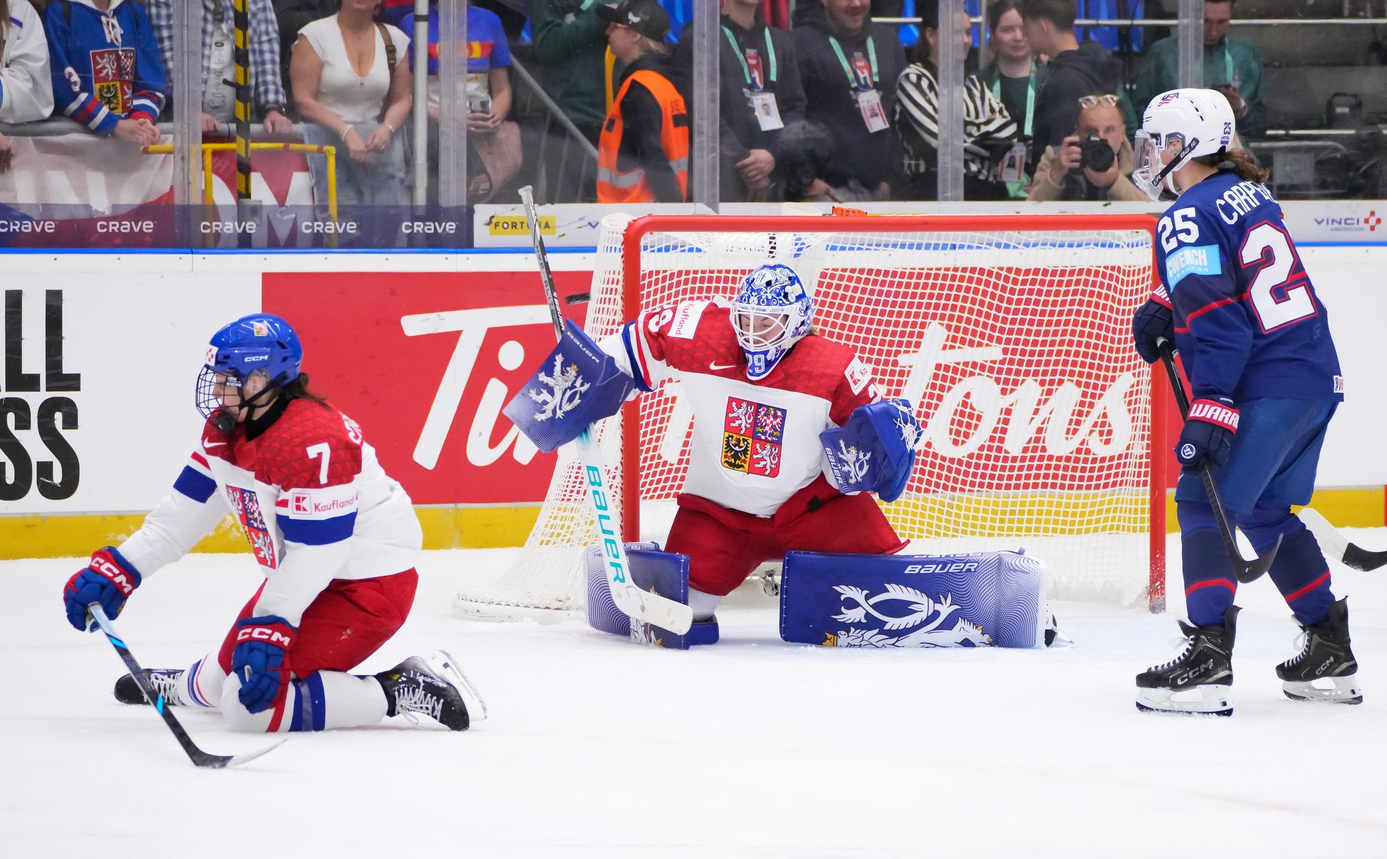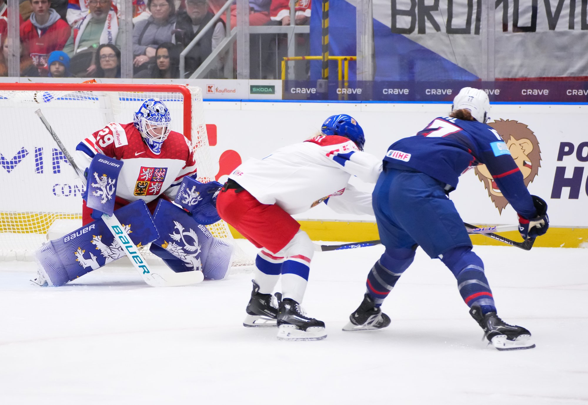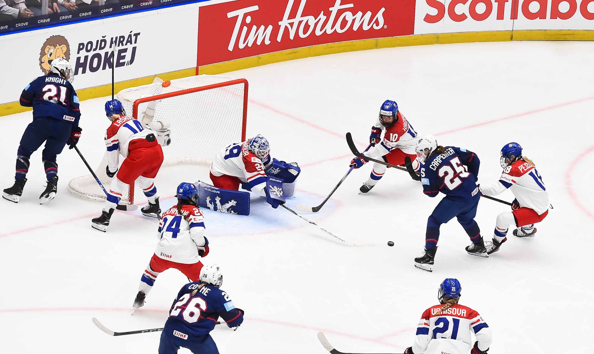 The goal would have deflated many teams, but the Czechs came through that test of character. A huge stick save from Peslarova denied Eden the go-ahead goal and reinvigorated the crowd. And there was more encouragement for the host when a three-on-two rush saw Tereza Vanisova get it to the slot where Frankel stayed big to thwart Denisa Krizova from close range.