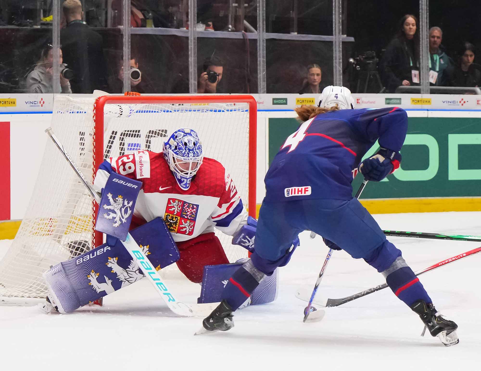 Another capacity crowd in Arena Ceske Budejovice greeted the teams with a cauldron of noise at the start of Czechia’s semi-final against the USA. They travelled from right across the nation – from Opava on the Polish border to Pardubice in the heart of the country. All eyes were on South Bohemia.