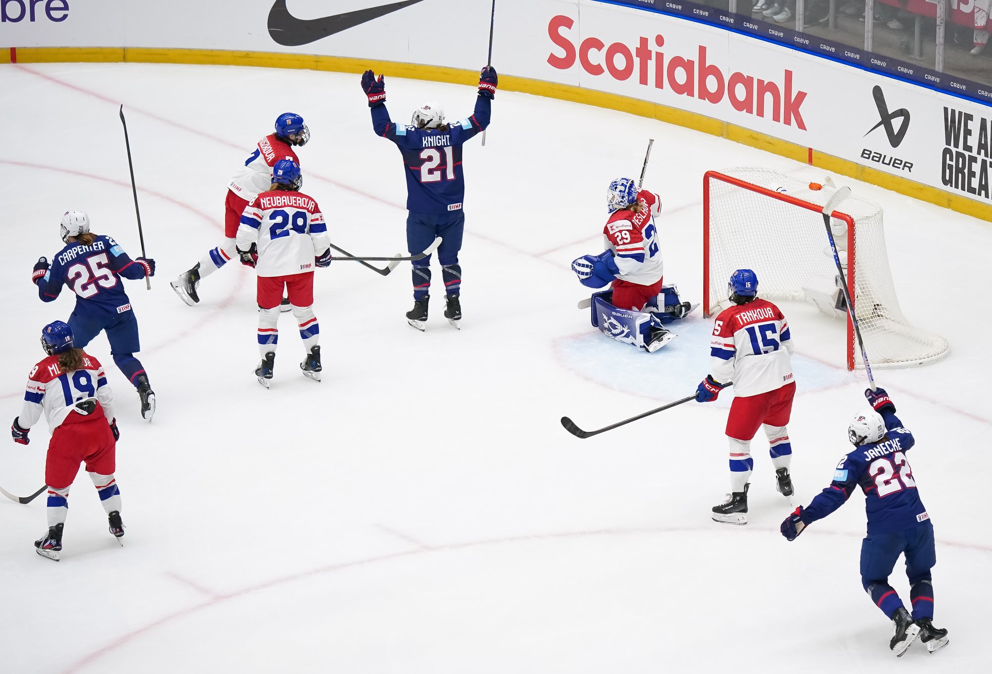 Czechia still wasn’t quite done. Katerina Mrazova generated another scare when she evaded Haley Winn’s lunging poke check to test Frankel once more.