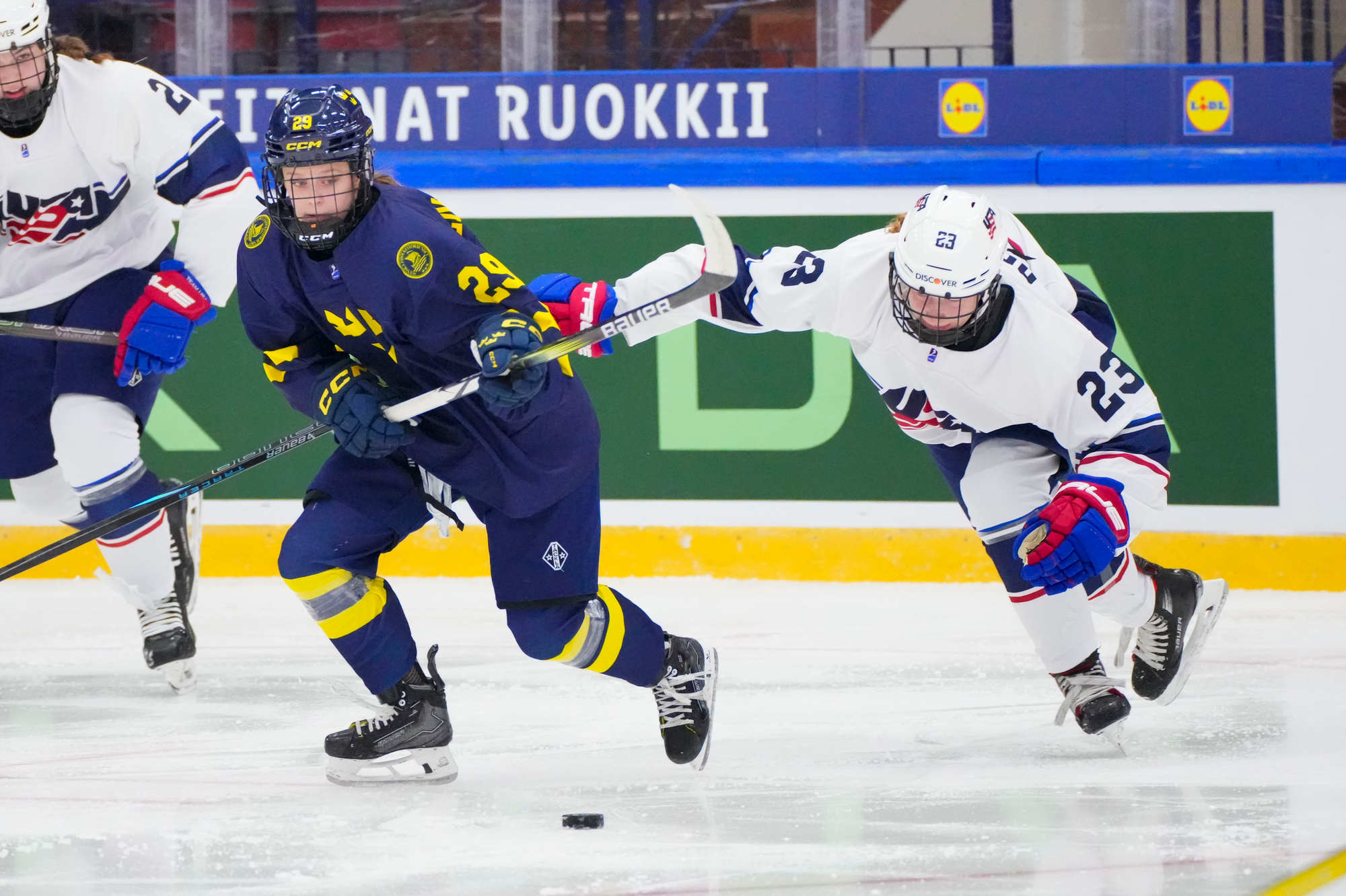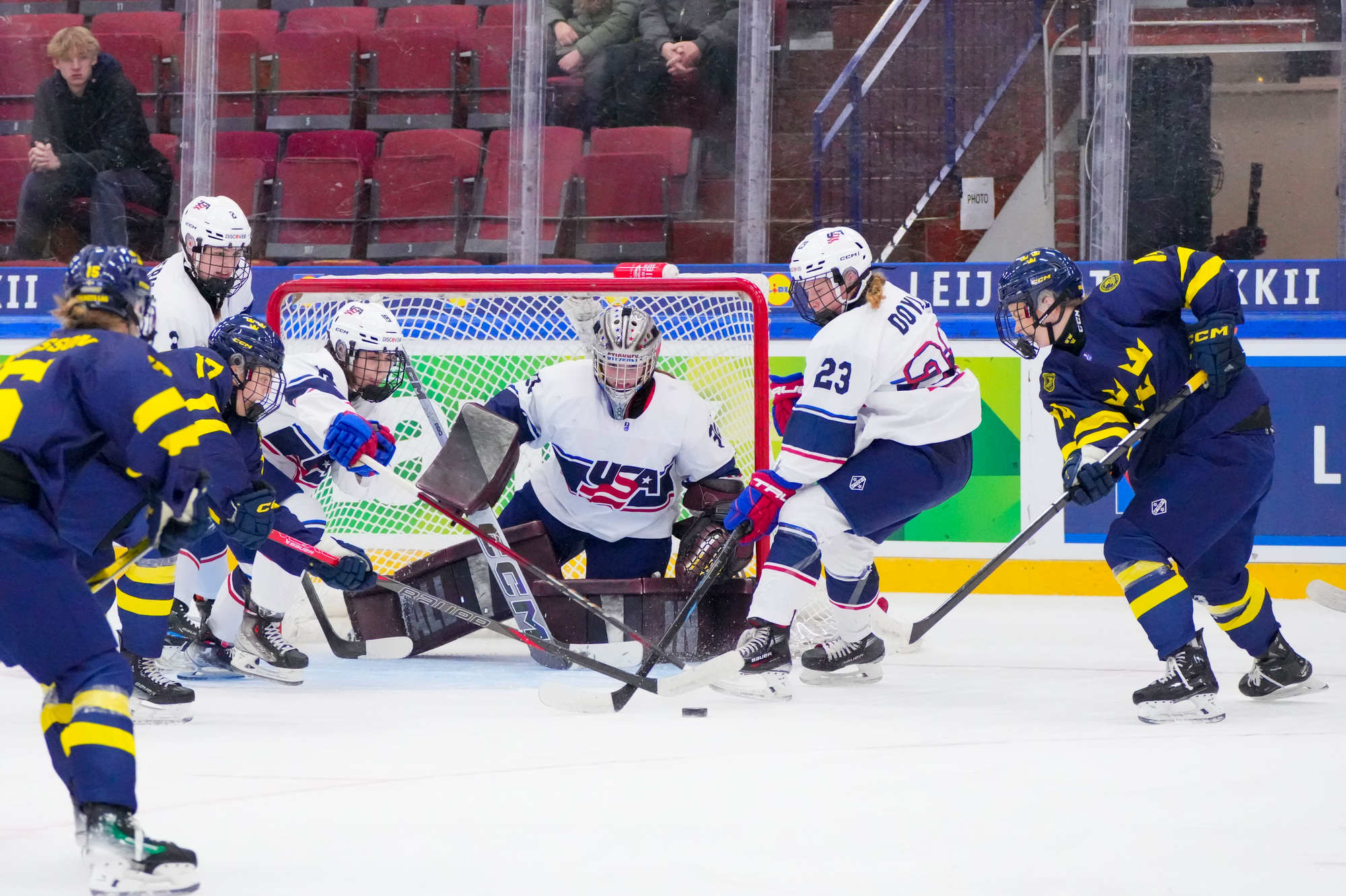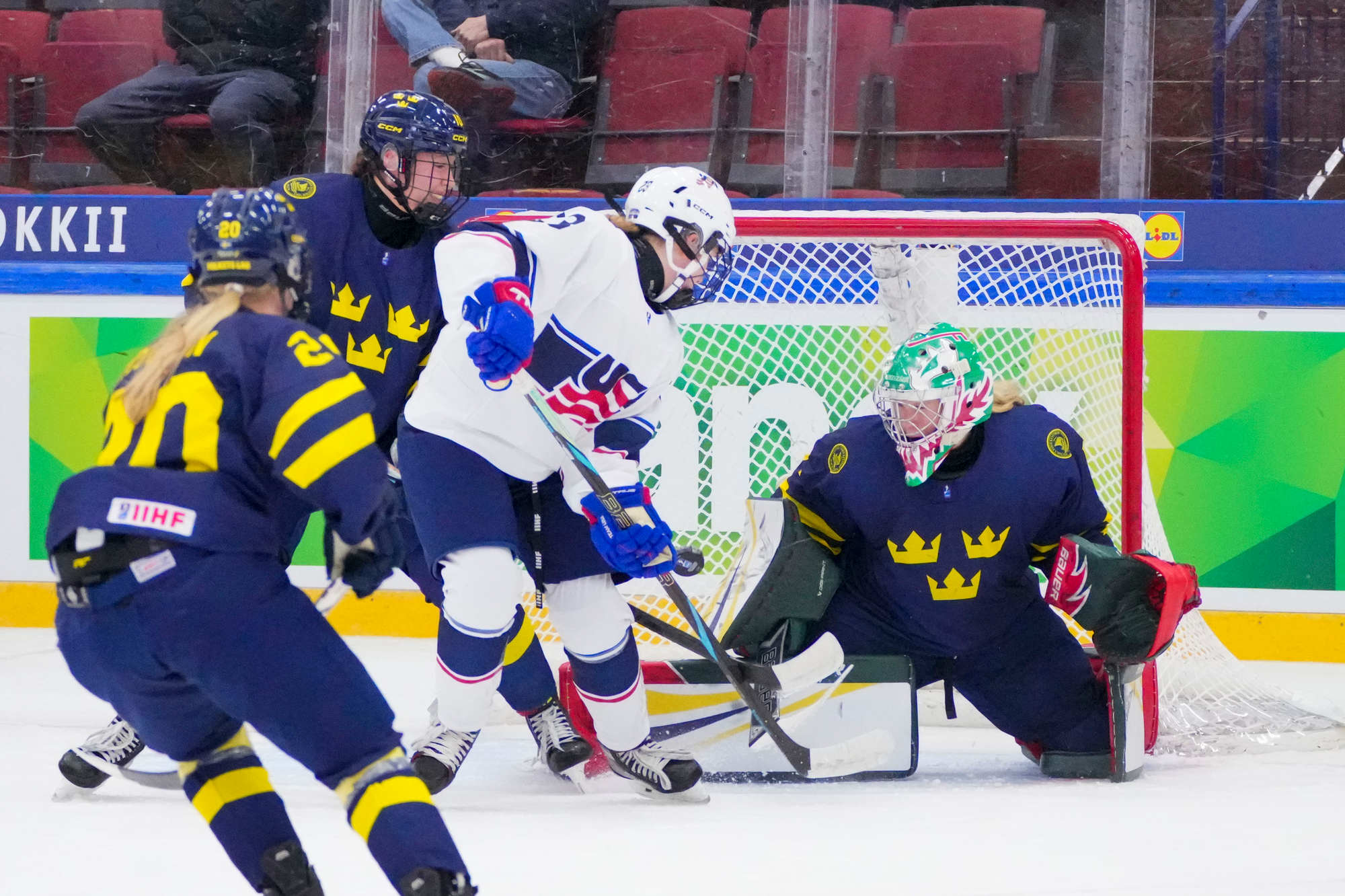 The game between Sweden and the US was also a battle between a strong Swedish defense and relentless American forwards, between a physical Sweden and an explosive Team USA, and between goaltenders Maja Helge and Morgan Stickney.